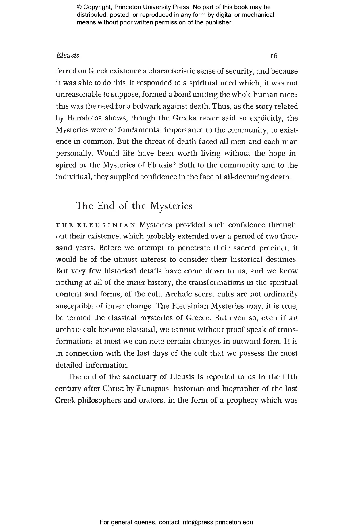 The Sanctuary of Eleusis near Athens was the center of a religious cult that endured for nearly two thousand years and whose initiates came from all parts of the civilized world. In this classic work, Carl Ker茅nyi examines the Mysteries of Eleusis from the standpoint not only of Greek myth but also of human nature. He reveals how the yearly autumnal mysteries were based on the ancient myth of Demeter鈥檚 search for her ravished daughter Persephone, a search that he equates not only with woman鈥檚 quest for completion but with every person鈥檚 pursuit of identity. Drawing on archaeology, objects of art, and religious history, Ker茅nyi explores what the mysteries may have been like for those who experienced them and suggests rich parallels with other mythologies.