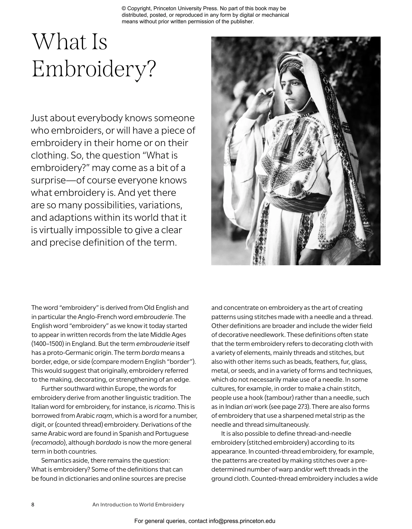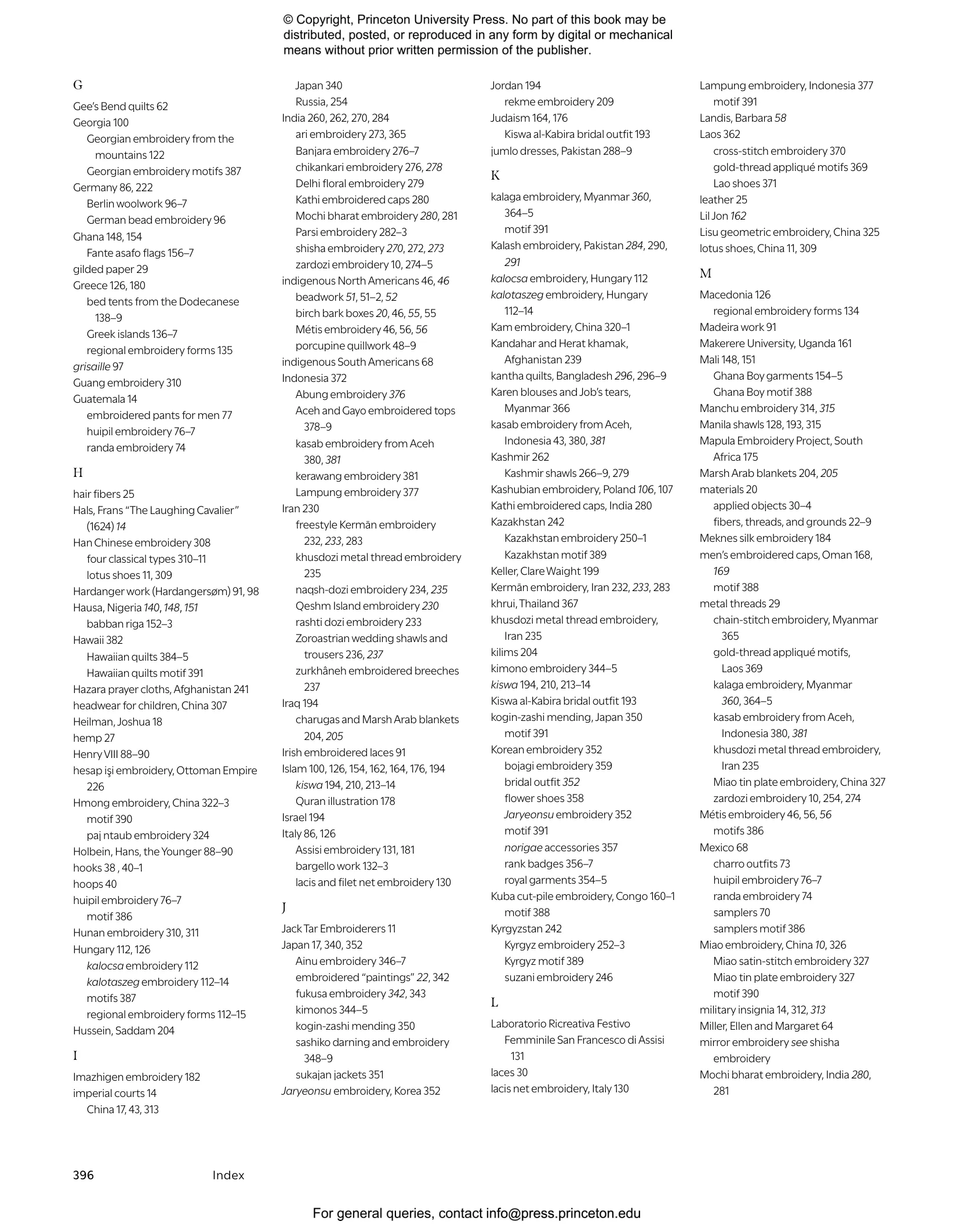 - Includes sections on the Americas; Europe; Sub-Saharan Africa; the Arabic World; Turkey, the Iranian Plateau, and Central Asia; the Indian Subcontinent; East Asia; and Southeast Asia and Australasia—with subsections on individual countries, cultures, and kinds of embroidery
