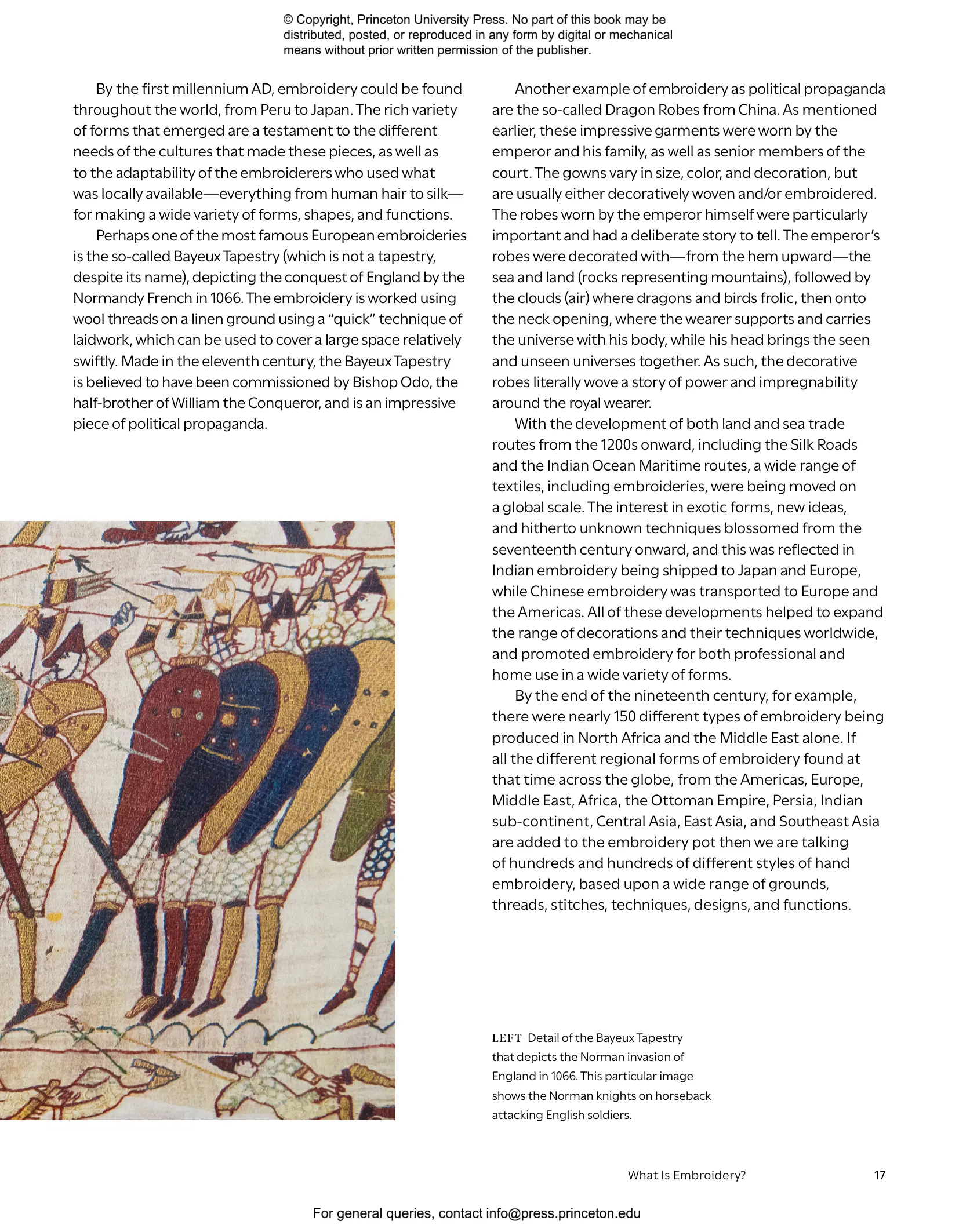 - Features full and close-up images of embroidered fabrics, including household items and clothing, along with insightful analysis