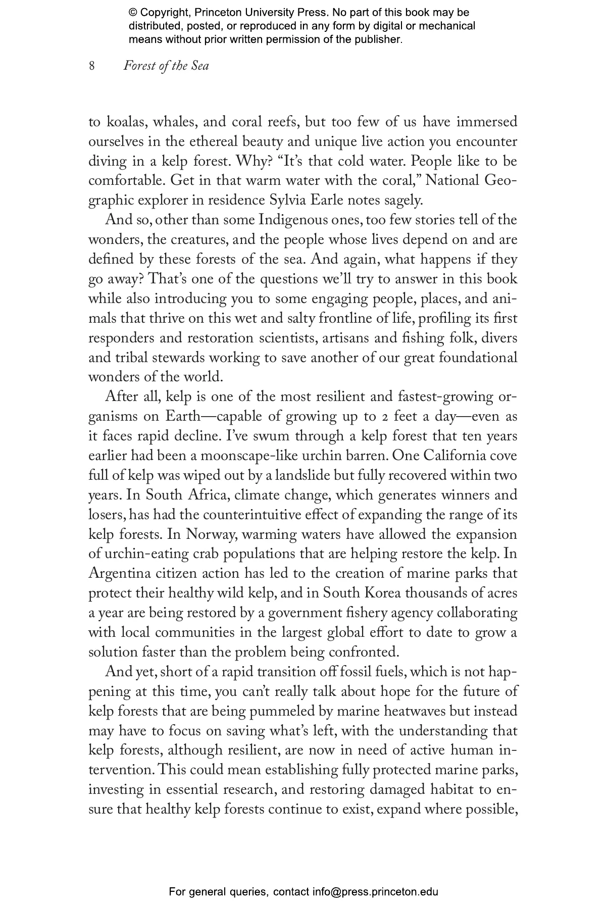 “David has dedicated his life to the protection of our precious Blue Planet. His deep dive into the fabulous world of kelp lays out not only the peril of these dynamic ecosystems but also a way forward that benefits the ocean and people.”—Ashlan and Philippe Cousteau, ocean restorationists and founders of the Voyacy Group