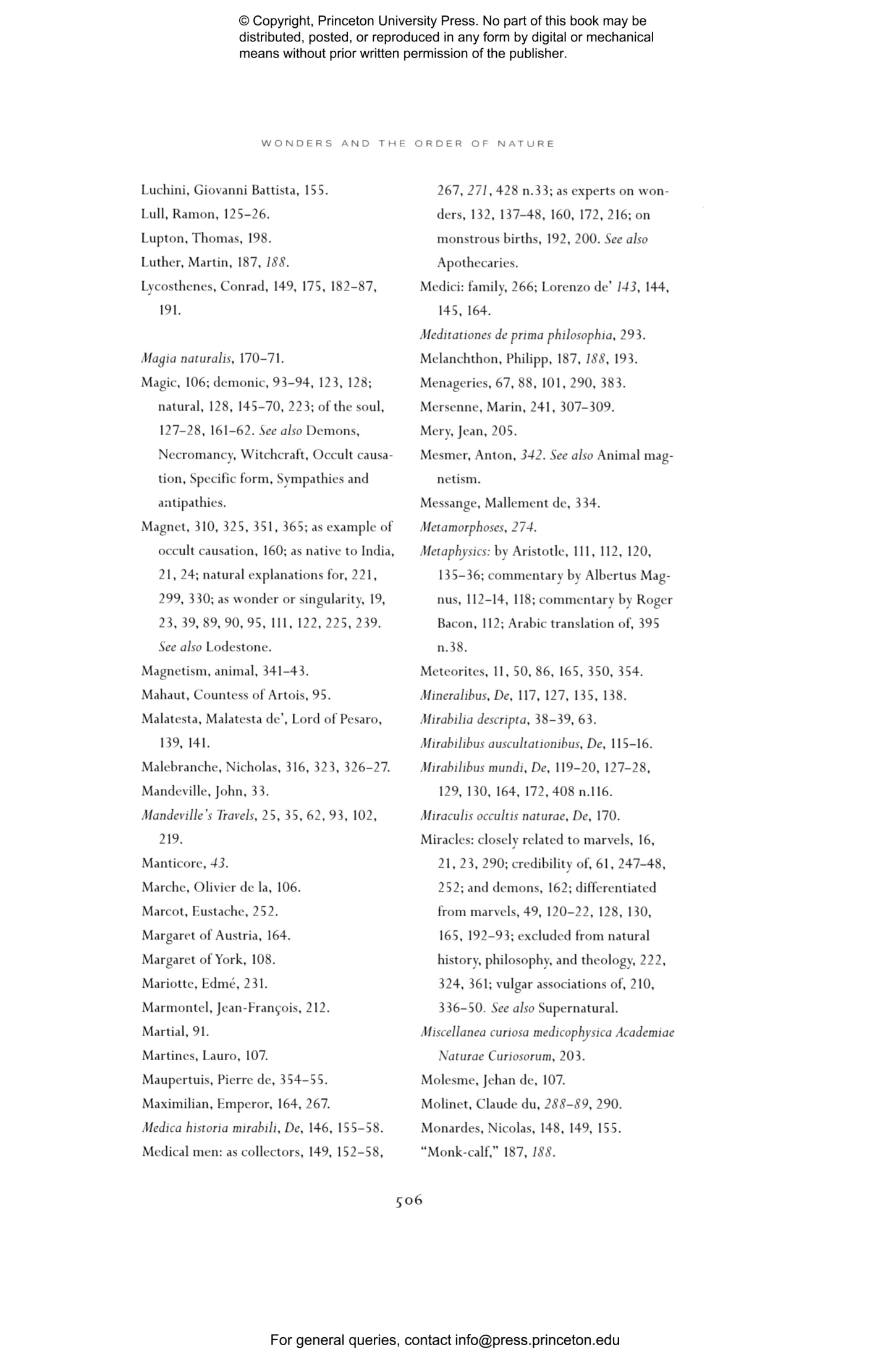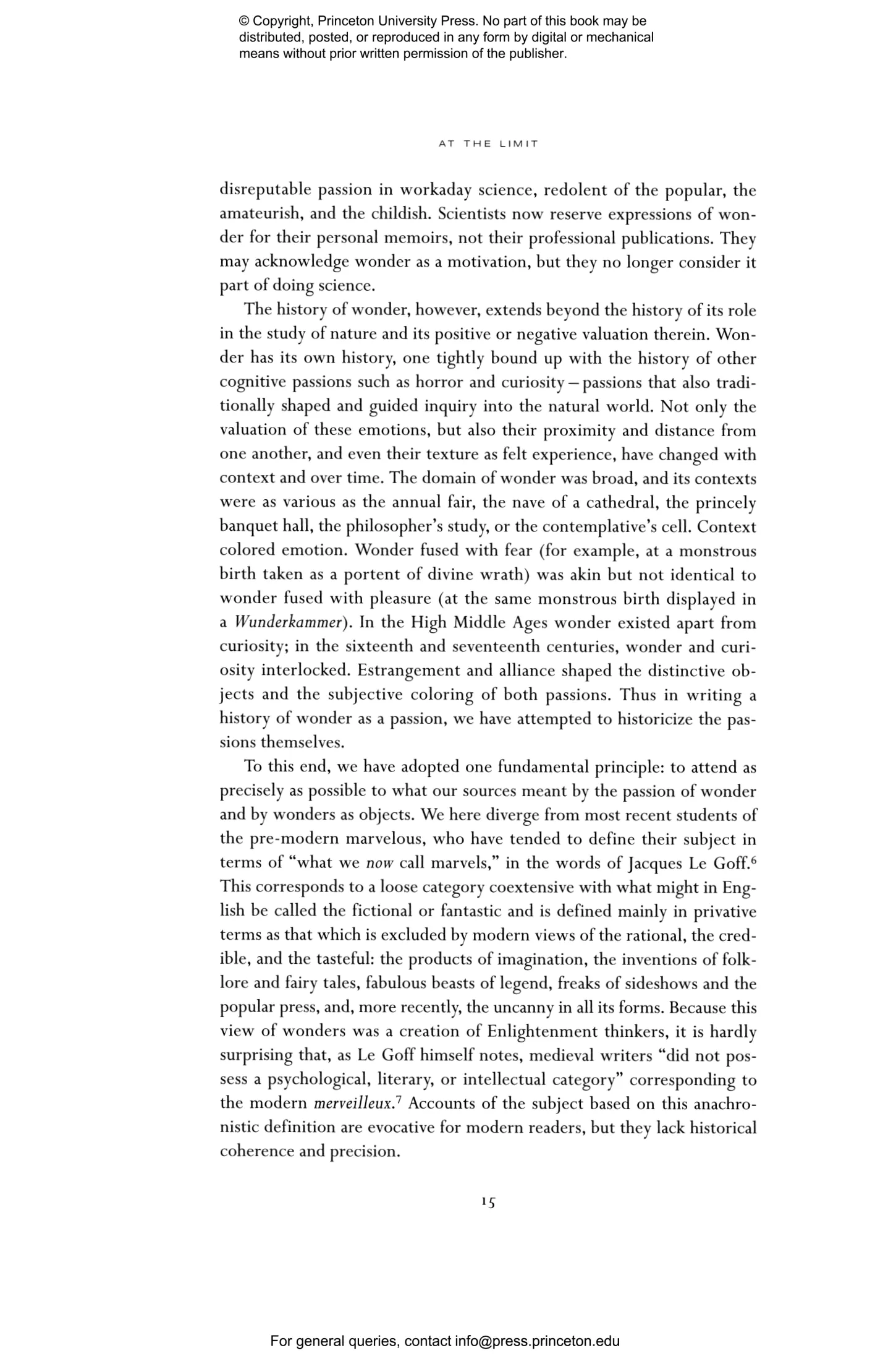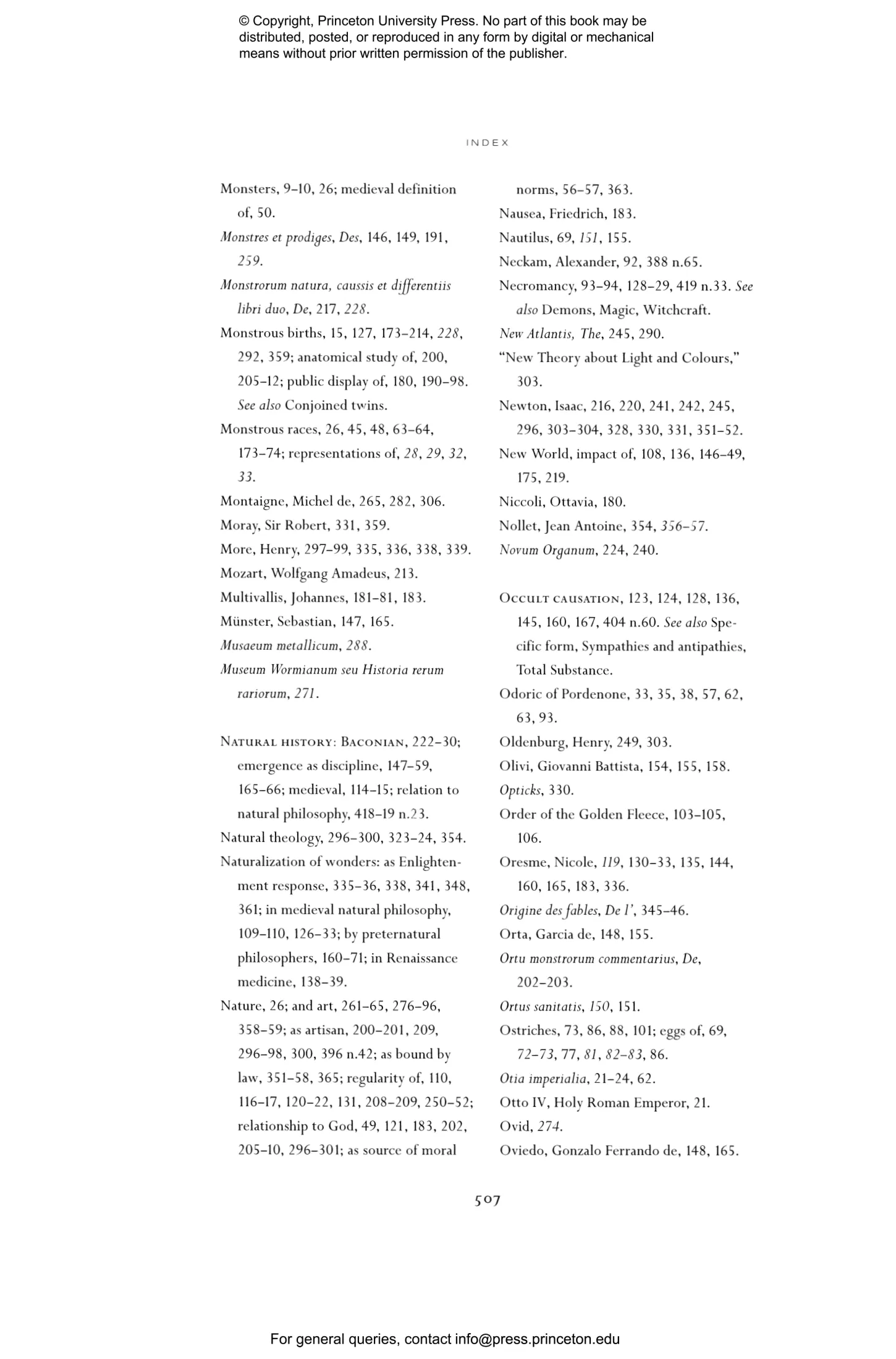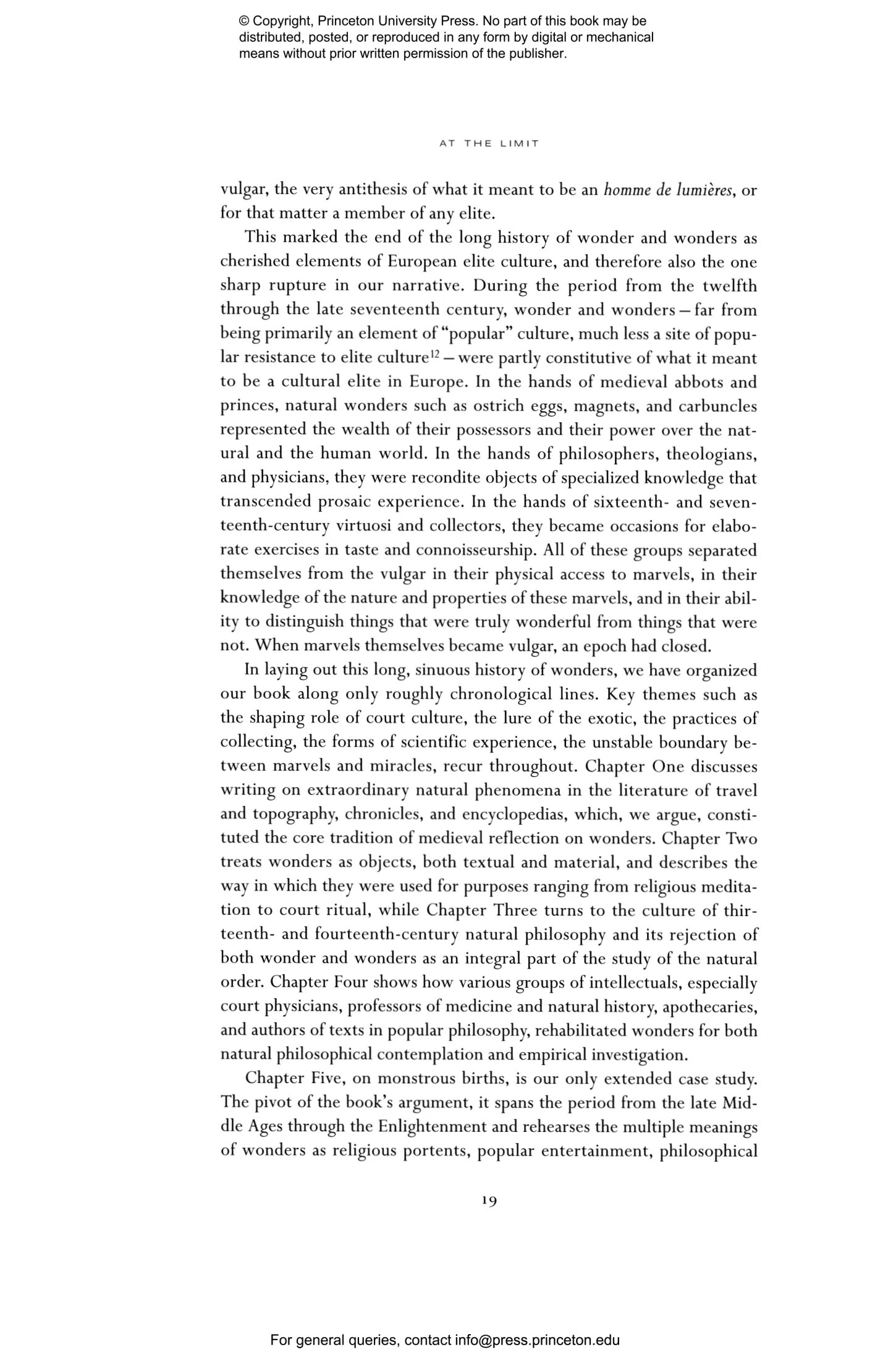 Wonders and the Order of Nature is about the ways in which European naturalists from the High Middle Ages through the Enlightenment used wonder and wonders, the passion and its objects, to envision themselves and the natural world. Monsters, gems that shone in the dark, petrifying springs, celestial apparitions — these were the marvels that adorned romances, puzzled philosophers, lured collectors, and frightened the devout.