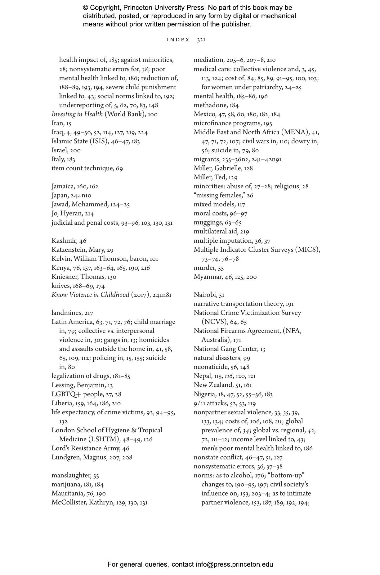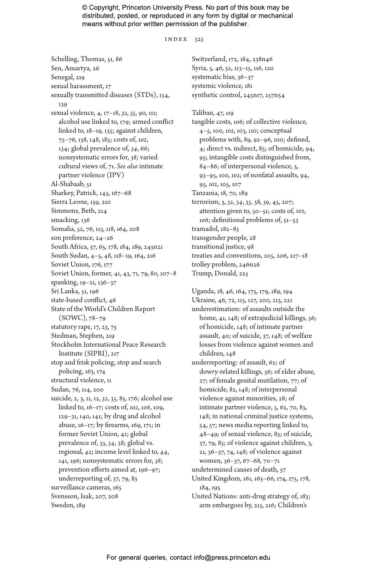 Civil wars, interstate wars, and terrorism receive a great deal of media and policy attention, for good reasons. By contrast, the major forms of interpersonal violence鈥攈omicide, intimate partner violence, and severe physical punishment of children鈥攇enerally have a much lower profile.