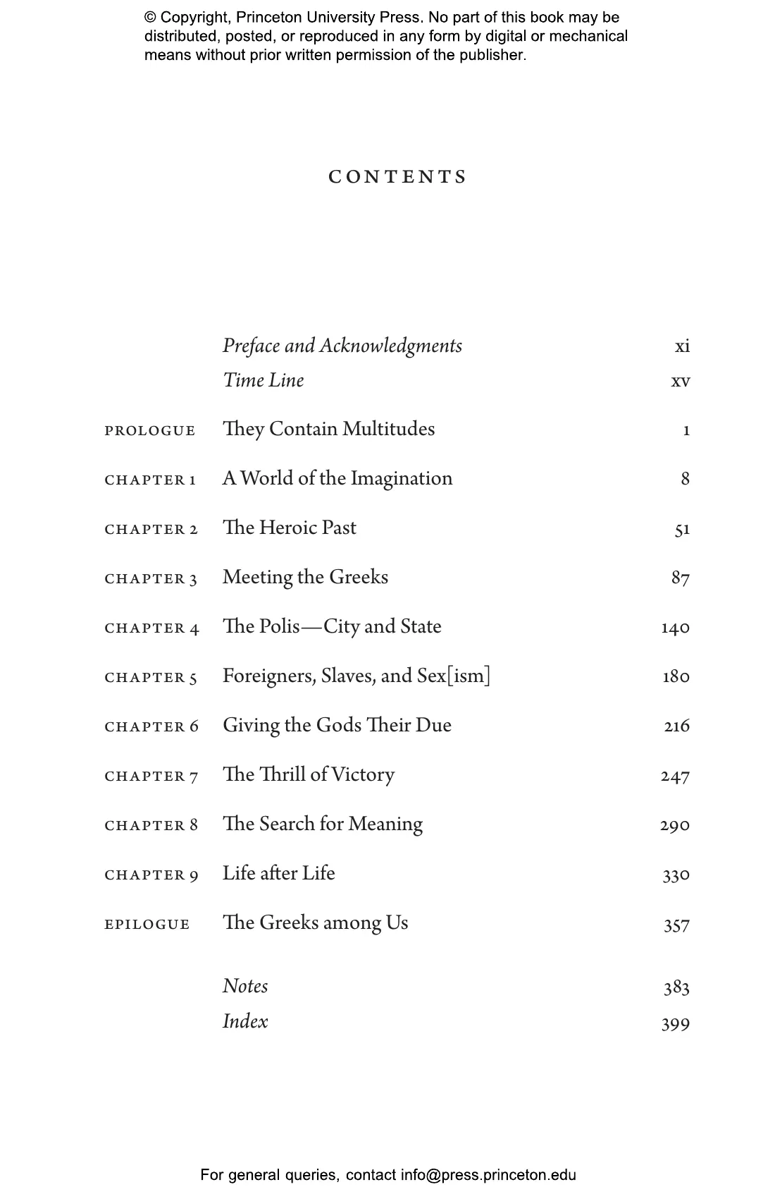 Examining the huge importance to the Greeks of religion, mythology, the Homeric epics, tragic and comic drama, philosophy, and the city-state, the book offers shifting perspectives on an extraordinary and astonishingly creative people. Century after century, in one medium after another, the Greeks addressed big questions, many of which are still very much with us, from whether gods exist and what happens after we die to what political system is best and how we can know what is real. Yet for all their virtues, Greek men set themselves apart from women and foreigners and profited from the unpaid labor of enslaved workers, and the book also looks at the mixed legacy of the ancient Greeks today.