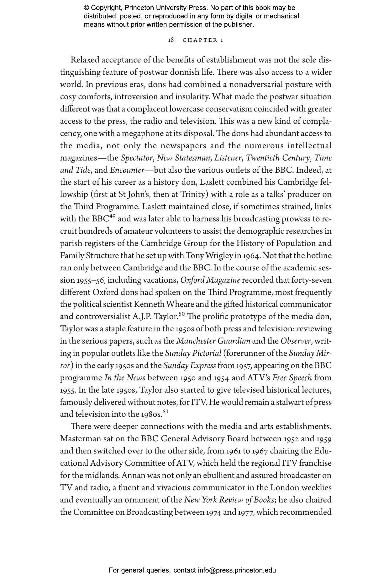 Kidd describes the multiple important roles played by dons in World War II, the countercultural force of convert Catholicism and the strange phenomenon of Tory Marxism. He examines the dons鈥 attitudes towards America and France鈥攁s seen in their engagement in the debates over the Kennedy assassination and the awkward reception of L茅vi-Strauss鈥檚 anthropology. When Oxbridge came under assault, it was first by a modernising, technocratic Left in the early 1960s, then by student radicals in the late 1960s and finally by the Thatcherite Right鈥攊n whose rise, Kidd shows, some dons were complicit. As deference to Oxbridge intelligentsia declined, a reassessment of the place of dons in British public life began.