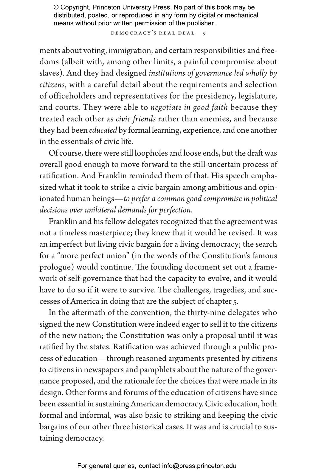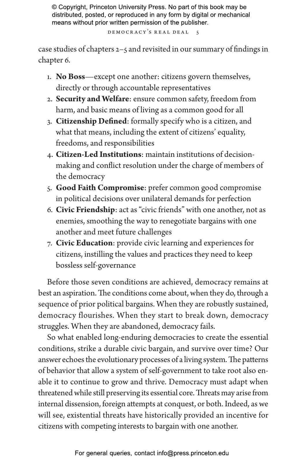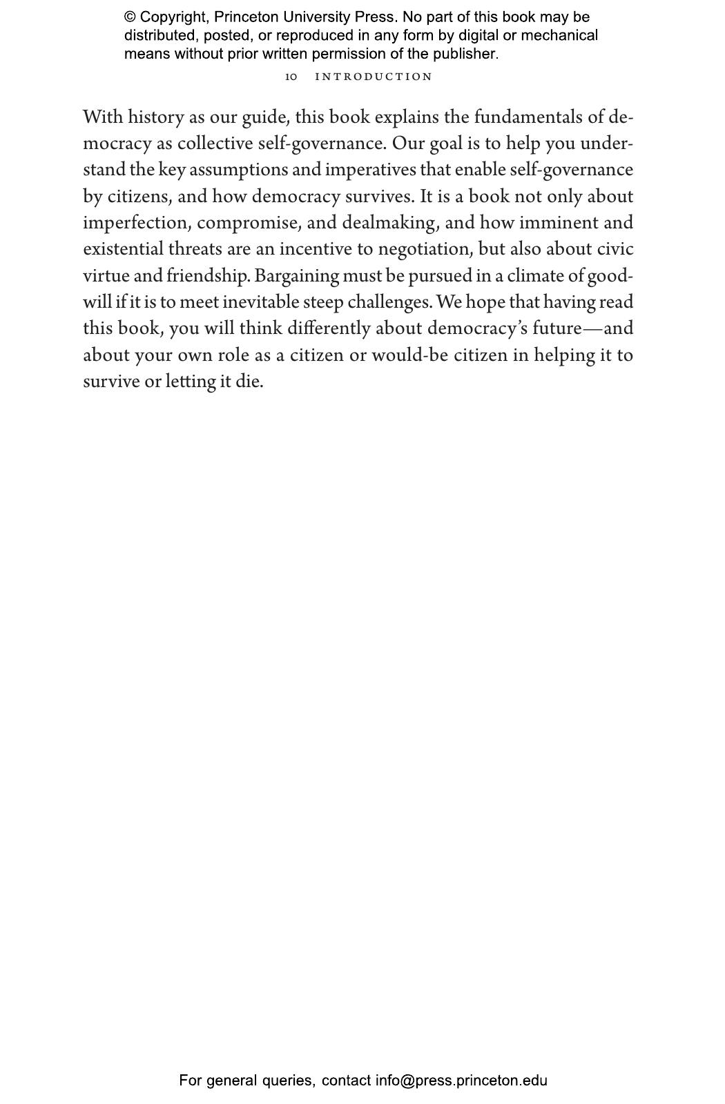Manville and Ober trace the long progression toward self-government through four key moments in democracy鈥檚 history: Classical Athens, Republican Rome, Great Britain鈥檚 constitutional monarchy, and America鈥檚 founding. Comparing what worked and what failed in each case, they draw out lessons for how modern democracies can survive and thrive. Manville and Ober show that democracy isn鈥檛 about getting everything we want; it鈥檚 about agreeing on a shared framework for pursuing our often conflicting aims. Crucially, citizens need to be able to compromise, and must not treat one another as political enemies. And we must accept imperfection; democracy is never finished but evolves and renews itself continually. As long as the civic bargain is maintained鈥攖hrough deliberation, bargaining, and compromise鈥攄emocracy will live.