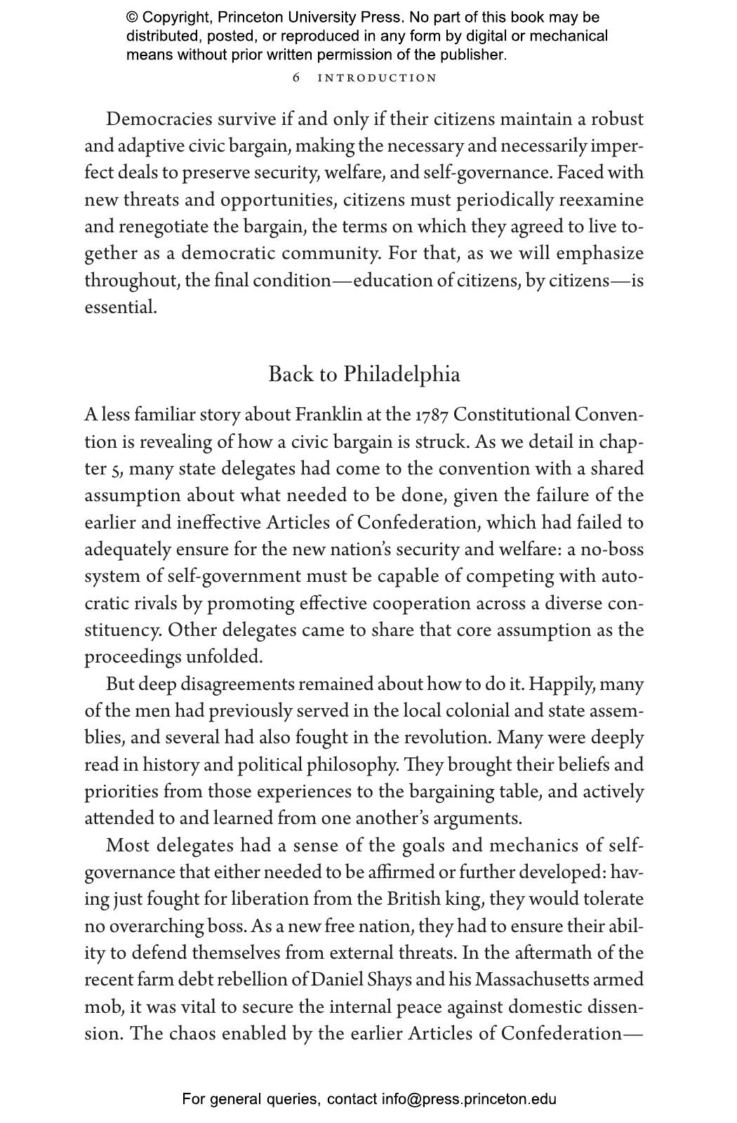 Is democracy in trouble, perhaps even dying? Pundits say so, and polls show that most Americans believe that their country鈥檚 system of governance is being 鈥渢ested鈥 or is 鈥渦nder attack.鈥 But is the future of democracy necessarily so dire? In The Civic Bargain, Brook Manville and Josiah Ober push back against the prevailing pessimism about the fate of democracy around the world. Instead of an epitaph for democracy, they offer a guide for democratic renewal, calling on citizens to recommit to a 鈥渃ivic bargain鈥 with one another to guarantee civic rights of freedom, equality, and dignity. That bargain also requires them to fulfill the duties of democratic citizenship: governing themselves with no 鈥渂oss鈥 except one another, embracing compromise, treating each other as civic friends, and investing in civic education for each rising generation.