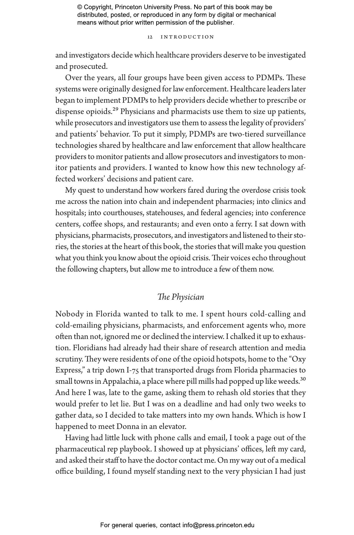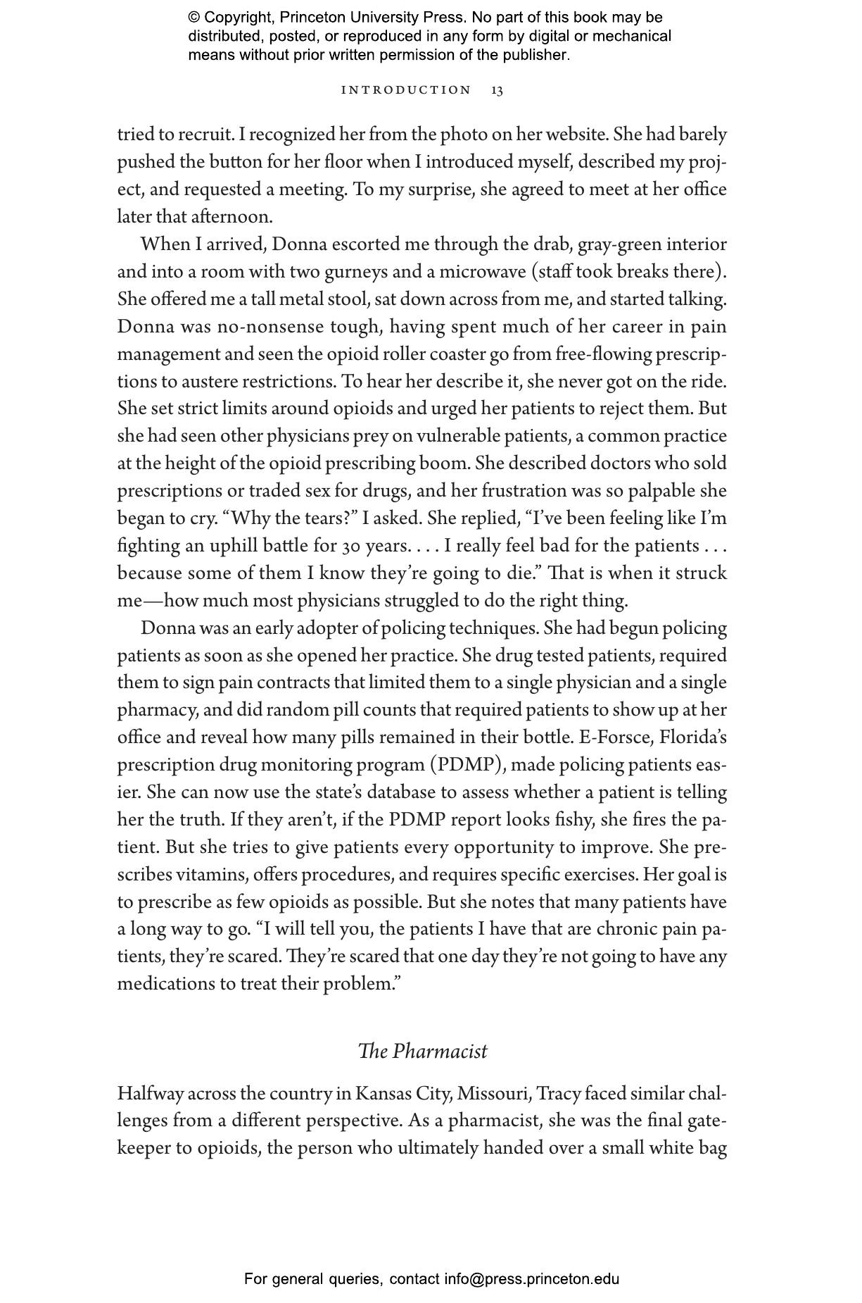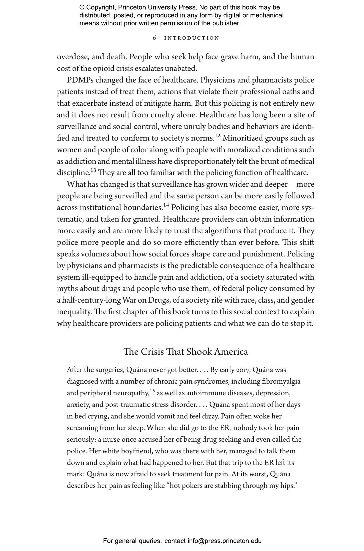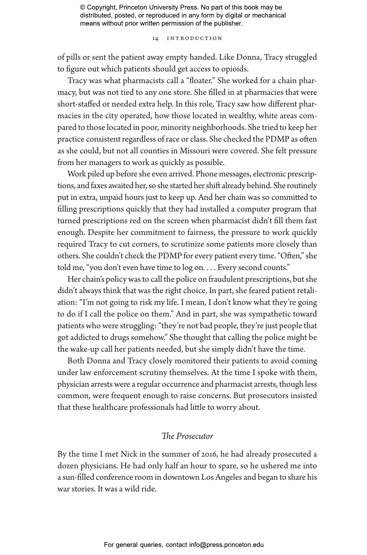 Elizabeth Chiarello draws on hundreds of in-depth interviews with physicians, pharmacists, and enforcement agents across the United States to take readers to the frontlines of the opioid crisis, where medical providers must make difficult choices between treating and punishing the people in their care. States now employ prescription drug monitoring programs capable of tracking all controlled substances within a state and across state lines. Chiarello describes how the reliance on these databases blurs the line between medicine and criminal justice and pits pain sufferers against people with substance-use disorders in a zero-sum game.