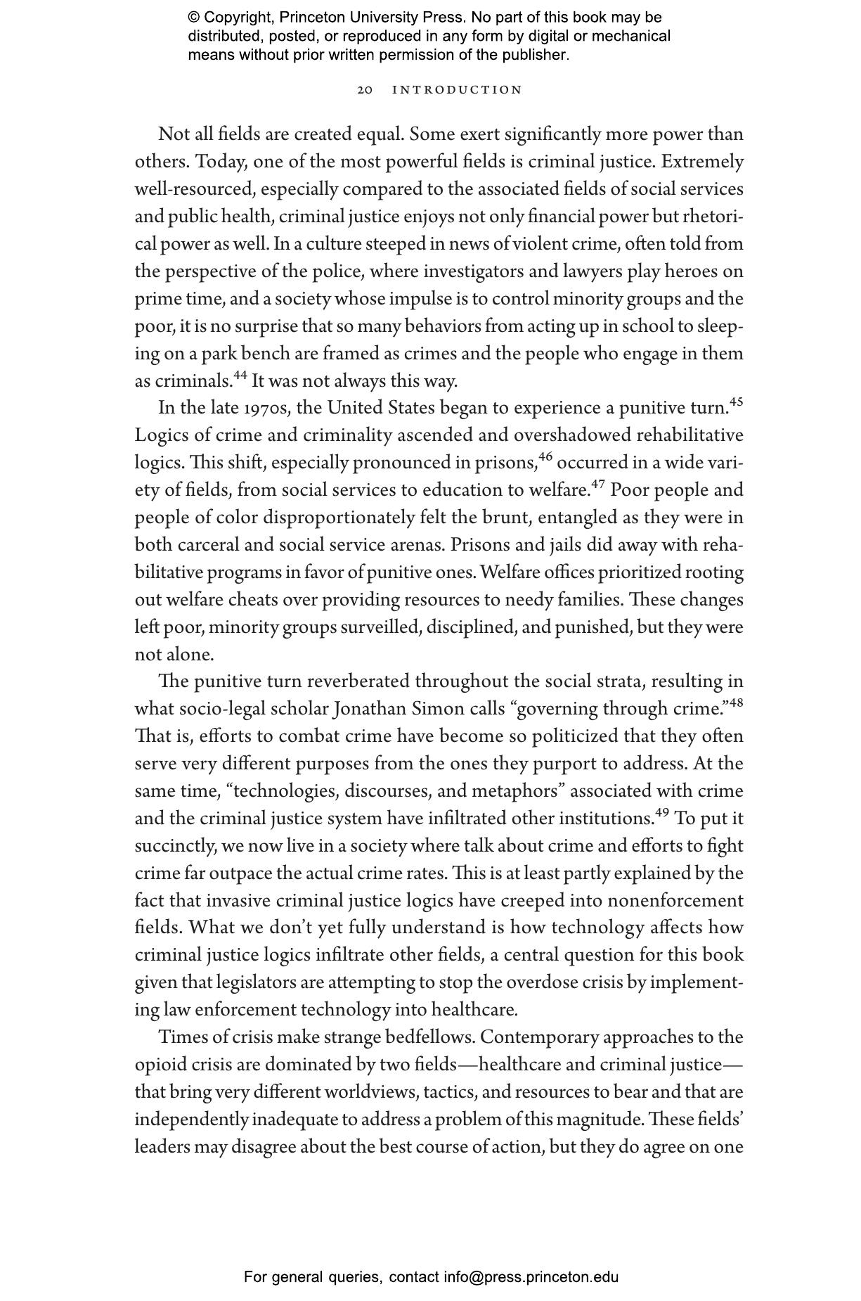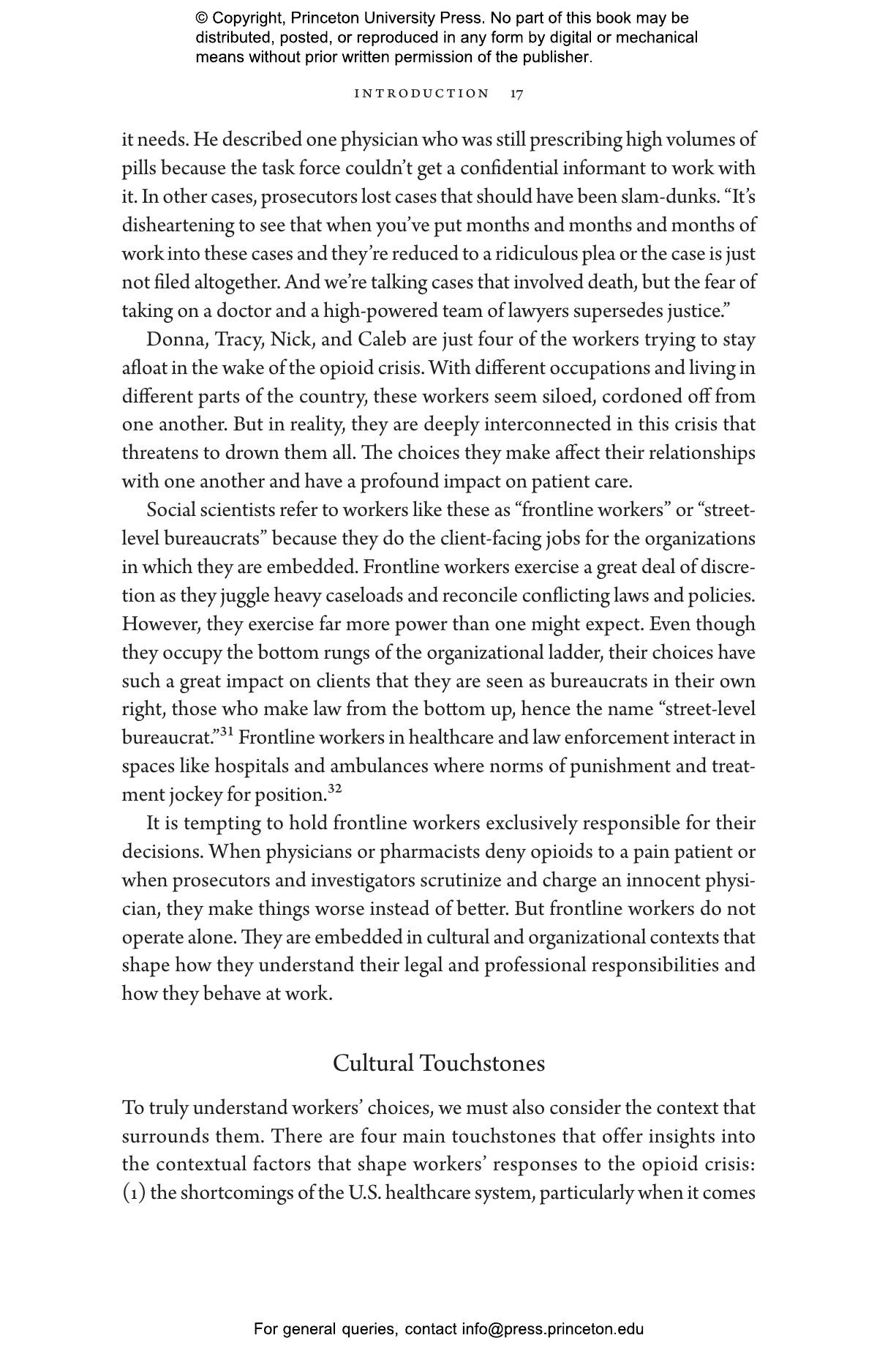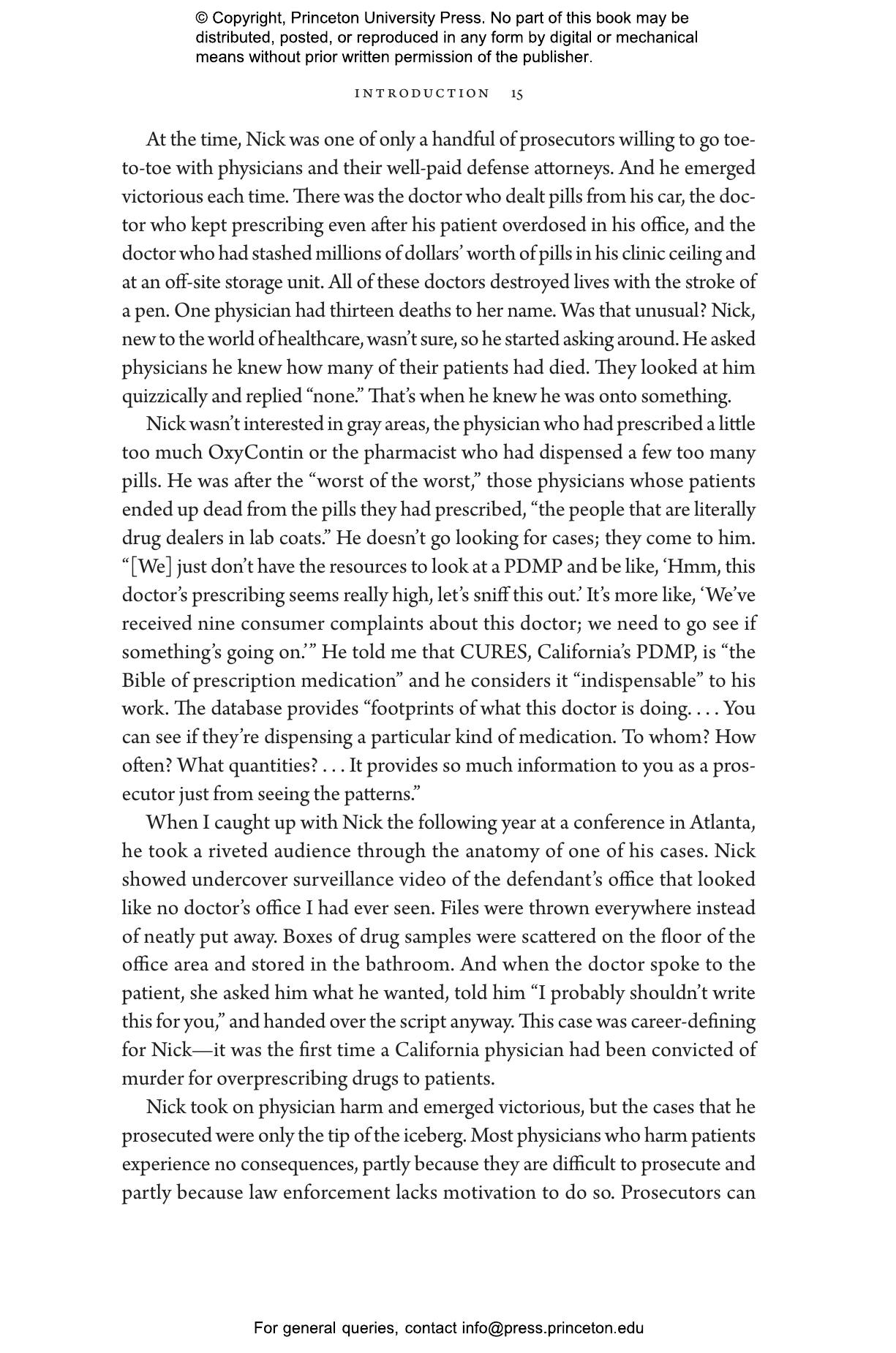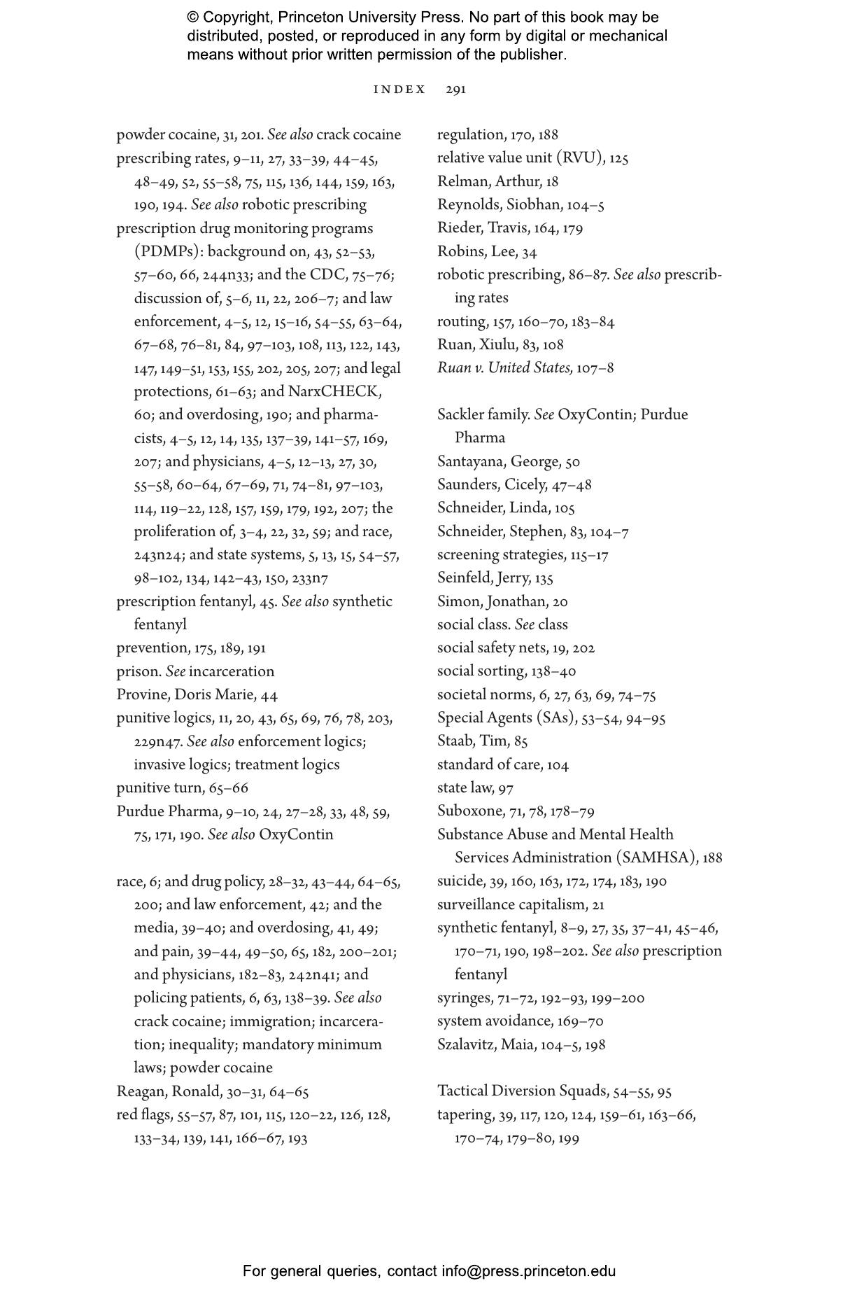 Elizabeth Chiarello draws on hundreds of in-depth interviews with physicians, pharmacists, and enforcement agents across the United States to take readers to the frontlines of the opioid crisis, where medical providers must make difficult choices between treating and punishing the people in their care. States now employ prescription drug monitoring programs capable of tracking all controlled substances within a state and across state lines. Chiarello describes how the reliance on these databases blurs the line between medicine and criminal justice and pits pain sufferers against people with substance-use disorders in a zero-sum game.