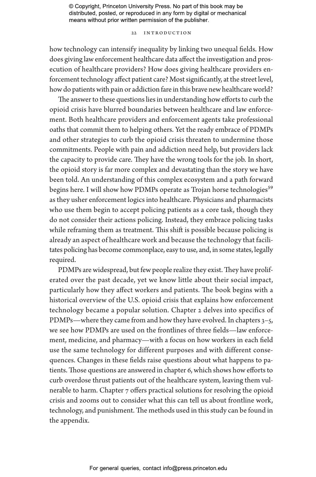 Doctors and pharmacists make critical decisions every day about whether to dispense opioids that alleviate pain but fuel addiction. Faced with a drug crisis that has already claimed more than a million lives, legislatures, courts, and policymakers have enlisted the help of technology in the hopes of curtailing prescriptions and preventing deaths. This book reveals how this 鈥淭rojan horse鈥 technology embeds the logics of surveillance in the practice of medicine, forcing care providers to police their patients while undermining public trust and doing untold damage to those at risk.