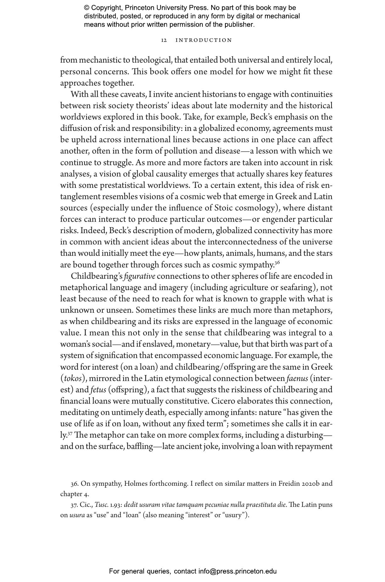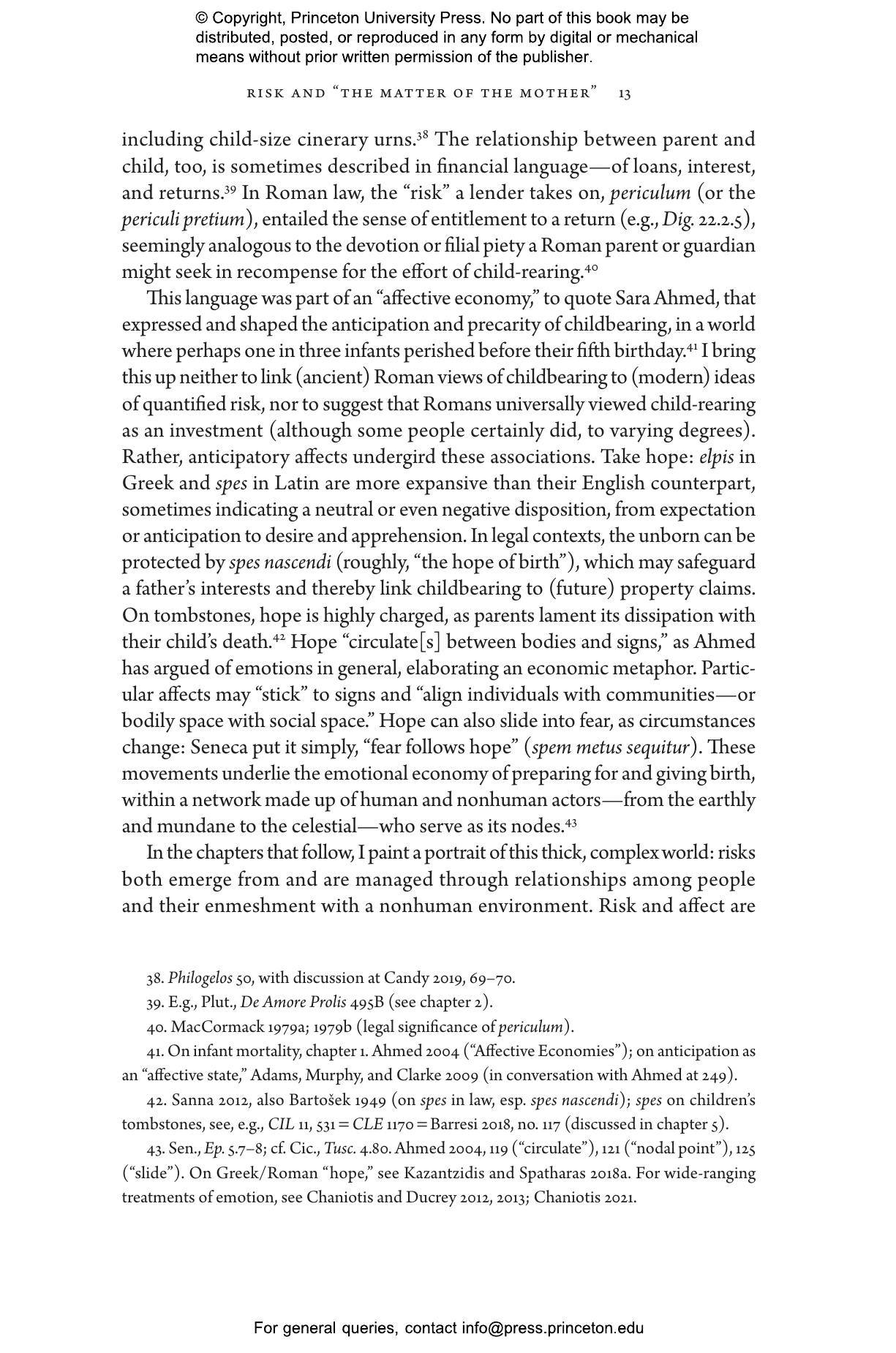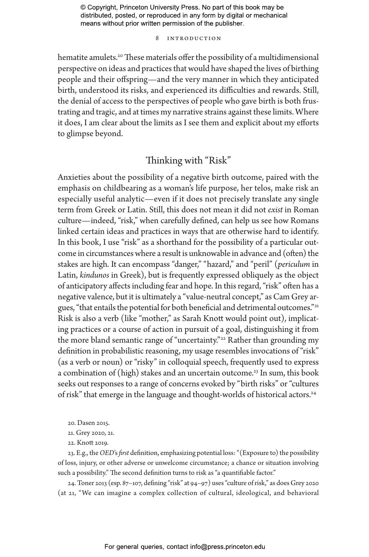 In this beautifully written book, Anna Bonnell Freidin asks how inhabitants of the Roman Empire—especially women and girls—understood their bodies and constructed communities of care to mitigate and make sense of the risks of pregnancy and childbirth. Drawing on medical texts, legal documents, poetry, amulets, funerary art, and more, she shows how these communities were deeply human yet never just human. Freidin demonstrates how patients and caregivers took their place alongside divine and material agencies to guard against the risks inherent to childbearing. She vividly illustrates how these efforts and vital networks offer a new window onto Romans’ anxieties about order, hierarchy, and the individual’s place in the empire and cosmos.