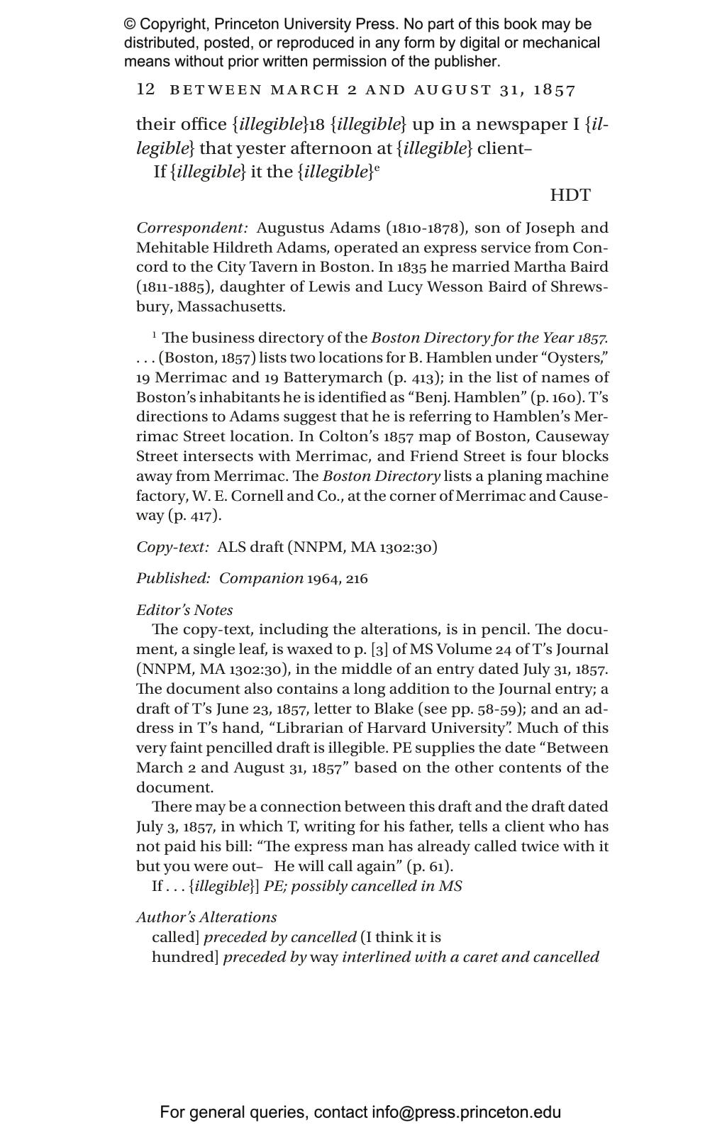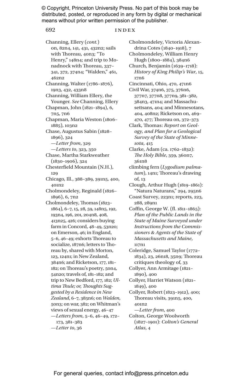 Following every letter, annotations identify correspondents, individuals mentioned, and books quoted, and describe events to which the letter refers. A historical introduction sets the letters in the context of Thoreau鈥檚 life and times, a textual introduction lays out the editorial principles and procedures followed, and a general introduction discusses the history of the publication of Thoreau鈥檚 correspondence. Proper names, publications, events, and ideas found in both the letters and the annotations are included in a comprehensive index.