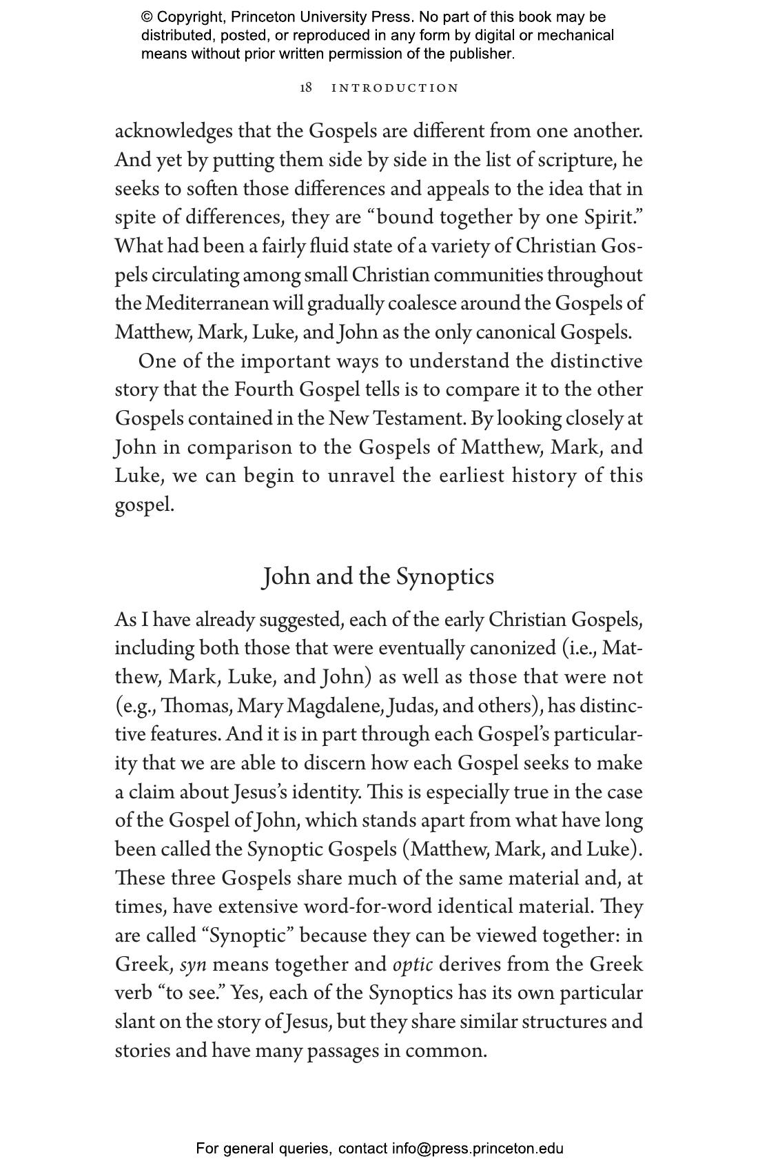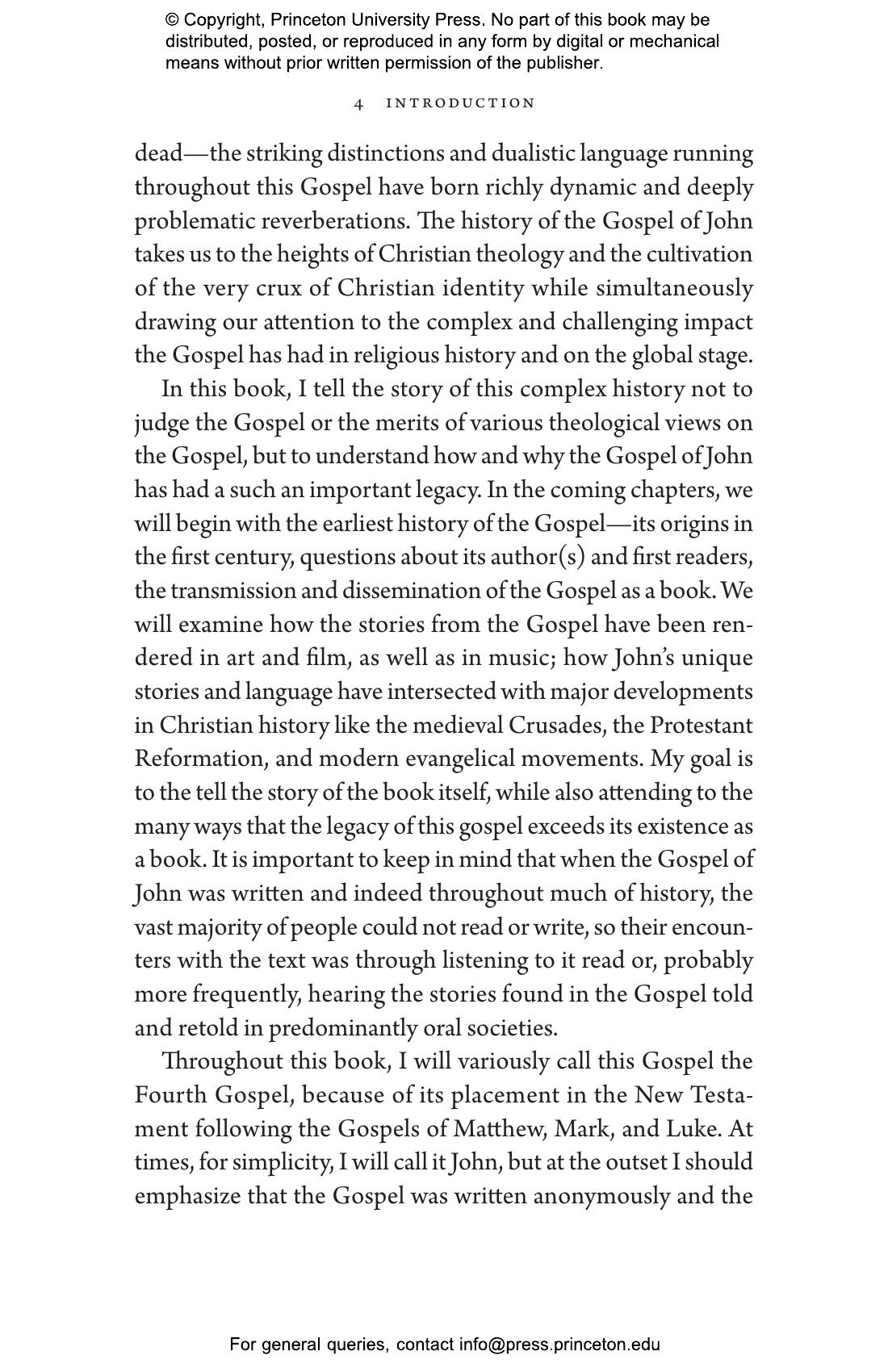 Haines-Eitzen sheds light on the book’s reception by early Christian gnostic and patristic commentators, its use in the Crusades and Reformation, its revered status among American evangelicals, and the many ways it has inspired novels, films, music, and art. The earliest papyrus fragment of an identifiably Christian Gospel is a fragment of John, and John is the only canonical Gospel that depicts Jesus as a savior who teaches openly about his divinity. Haines-Eitzen shows how John simultaneously carries a message of inclusion and intolerance, and how its story teaches us about the nature and enormous influence of scriptural religions.