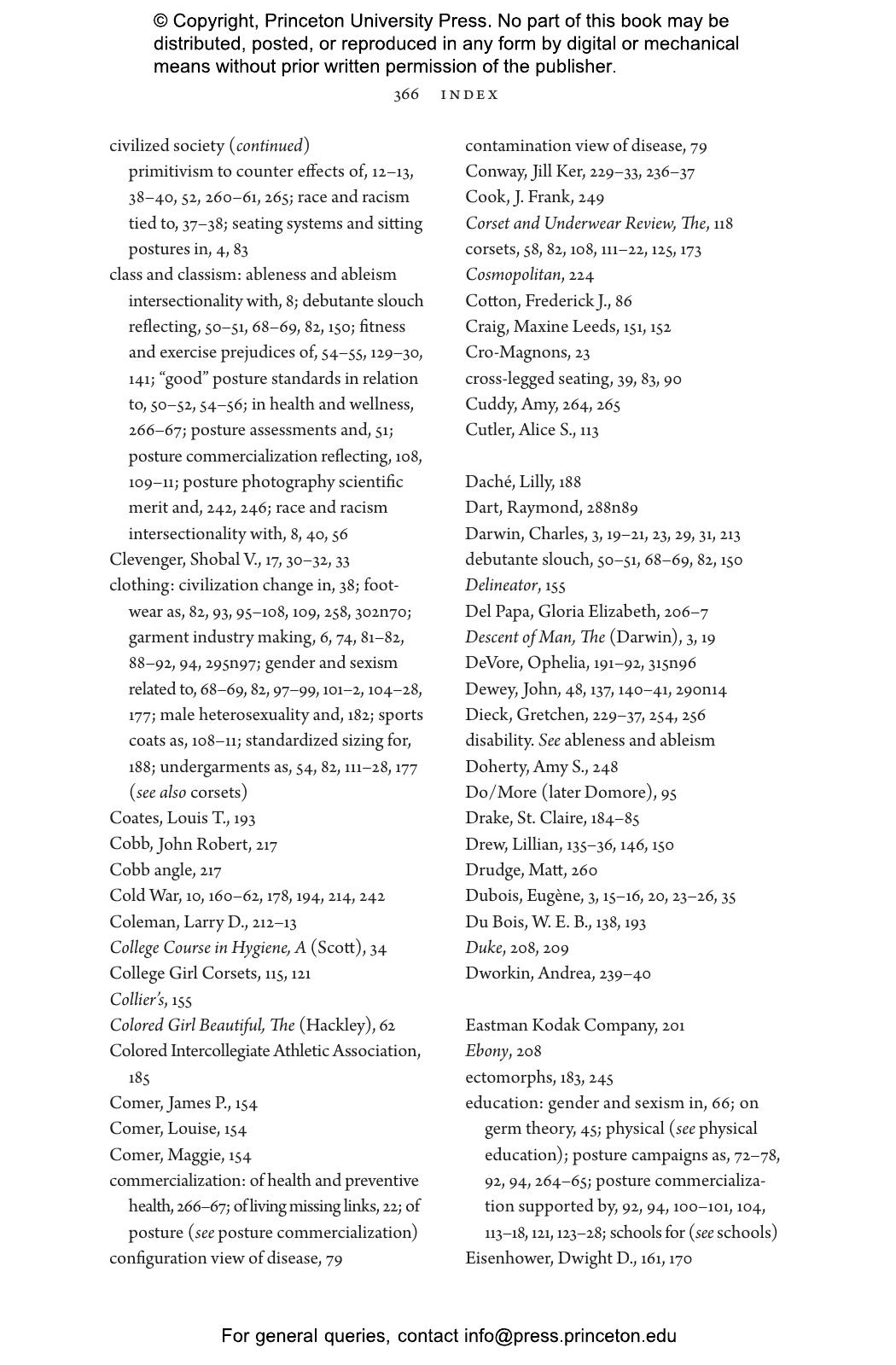 “Slouch is a gripping read that made me sit up a little straighter in my chair—and taught me how that very impulse, while no longer imposed by campus medical inspectors or stiff ‘posture fashion,’ has come to be so ingrained in the American psyche. Our attitudes about health, beauty, ability, race, and more are vividly, and often surprisingly, revealed through how we have surveilled the shape of our spines. Beth Linker’s rigorous and accessible history illuminates our culture, politics, and society.”—Natalia Mehlman Petrzela, author of Fit Nation: The Gains and Pains of America’s Exercise Obsession