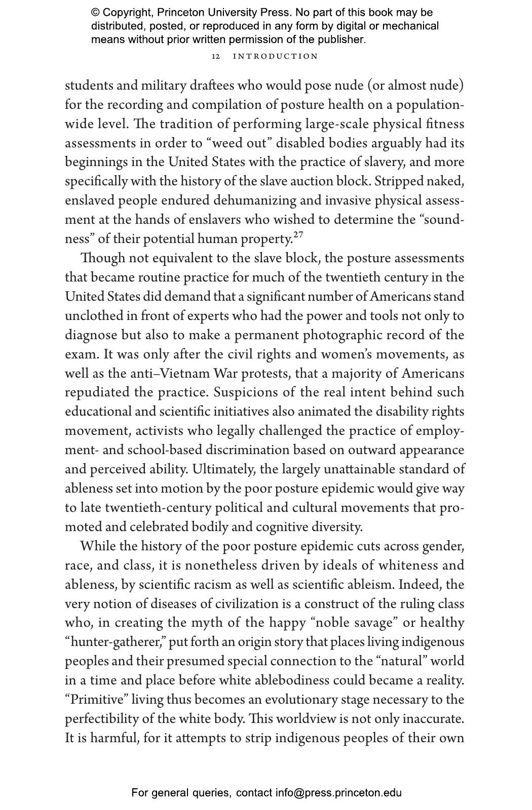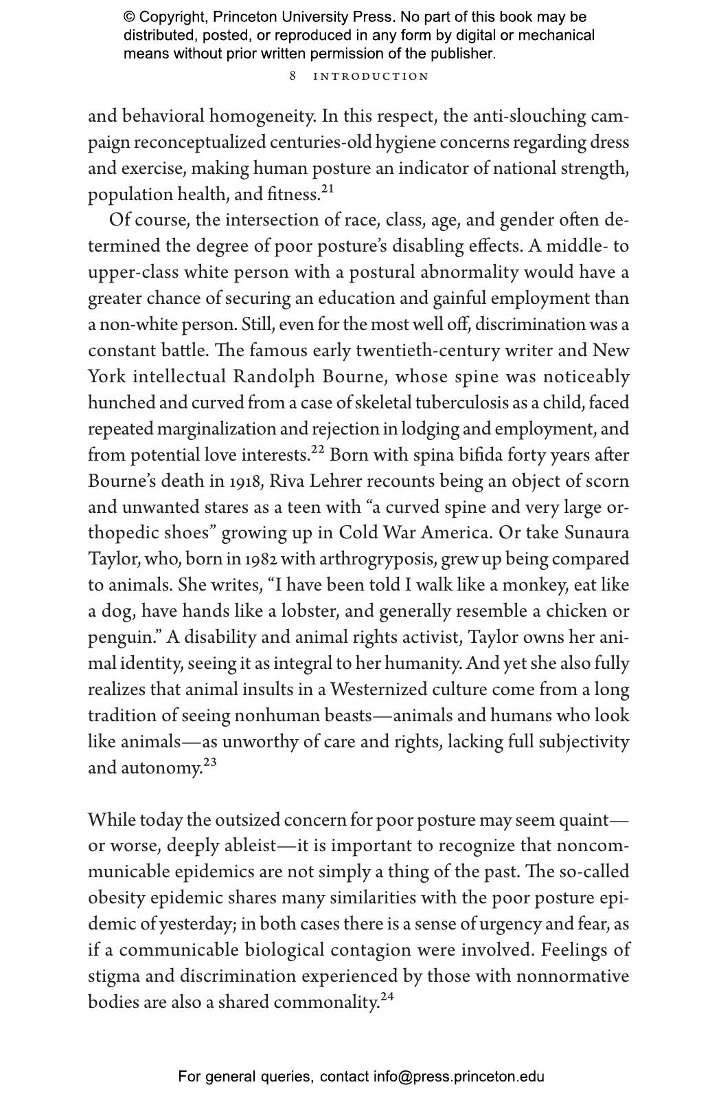 “Slouch persuasively shows that the Ivy League nude posture photo scandal was just a small part of the story of a twentieth-century public health program—one based on the false idea that there is a single optimal posture for everyone. Beth Linker does a wonderful job of straightening out the story of bent backs!”—Jonathan Marks, author of Is Science Racist?
