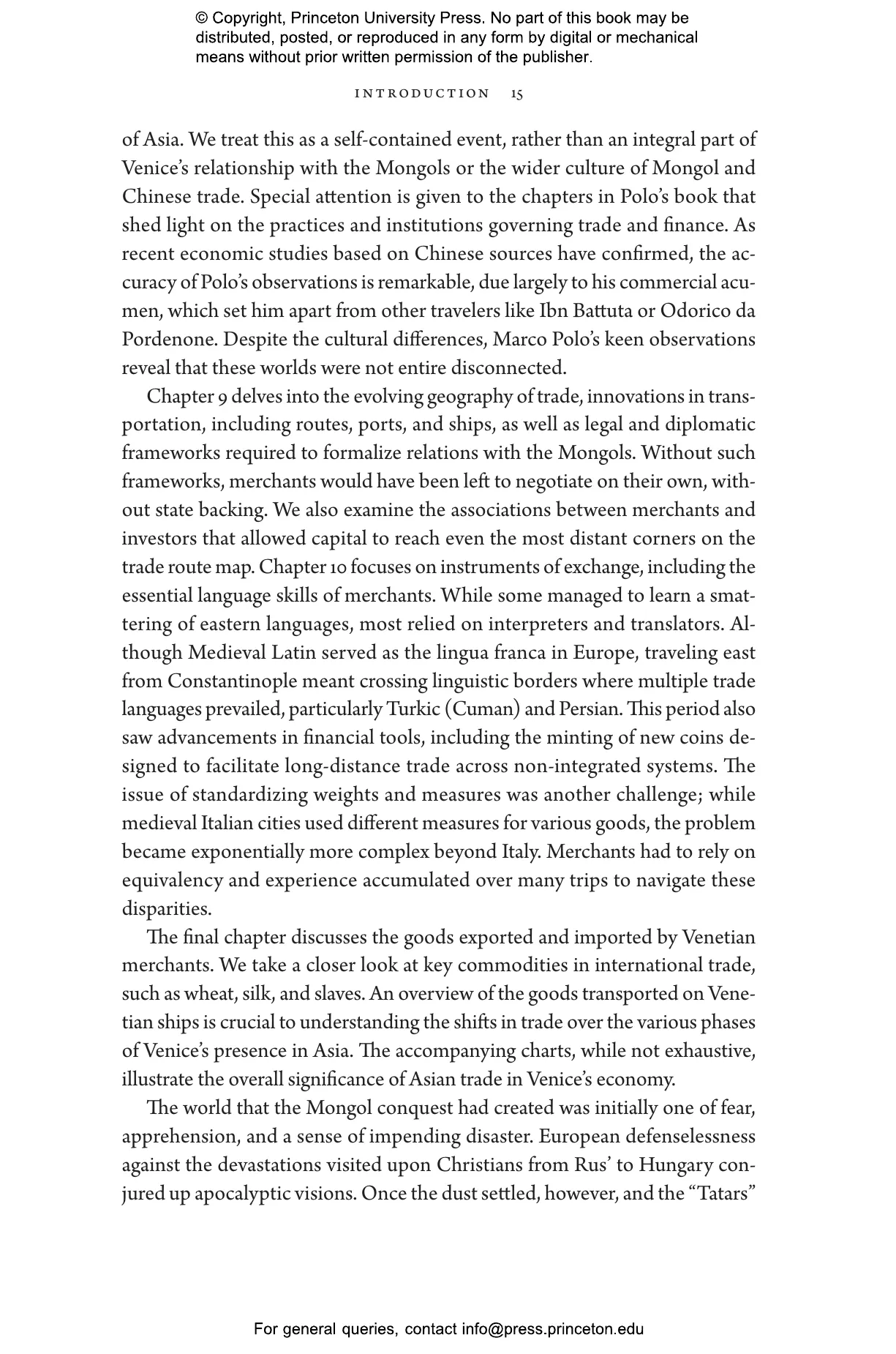 In the mid-thirteenth century, Europe was shaken by the Mongol invasions. Realizing the immense potential for accessing remote markets in the East, Venetian merchants, diplomats, and seafarers established far-flung commercial networks with the Mongol Empire. Venice and the Mongols tells the story of this dynamic new era in world history, one that saw one of the most advanced maritime powers of the age bridge East and West in a new global marketplace created by the Mongol conquests.