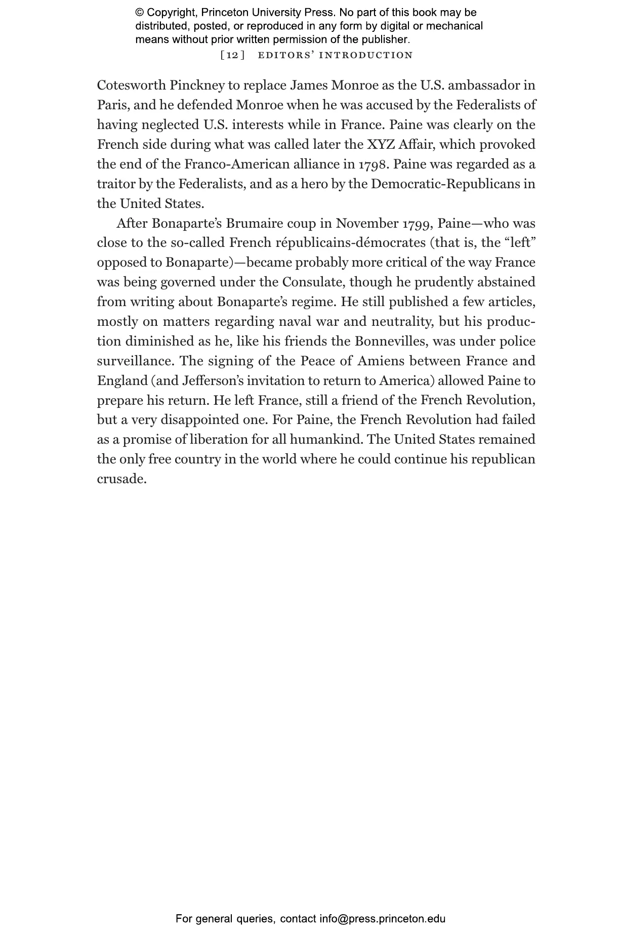 Thomas Paine: Collected Writings is the first major new edition of Paine’s works, bringing together all his writings in six breathtaking volumes that dramatically revise our previous understanding of his activities as a writer and his importance as a democratic theorist in the age of revolutions. It includes about 180 new letters and some two hundred works newly attributed to Paine, with twenty-nine works previously regarded as Paine’s being deattributed. Drawing on pioneering computerized text analysis that makes possible for the first time attributions of anonymous and pseudonymous texts, this collection includes in volumes 5–6 newly identified pamphlets and newspaper and journal contributions, and suggests that Paine was extremely active as a Grub Street oppositional Whig writer in the decade prior to the American Revolution. Many writings from the period of his residence in France (1792–1802) and his subsequent return to the United States are also restored to his published output. Paine emerges as a much more consistent and serious democratic theorist than is often assumed, whose contributions to revolutionary debates in America, Britain, and France were unparalleled in their time.
