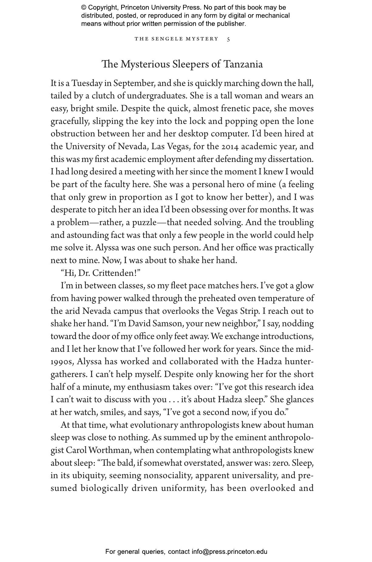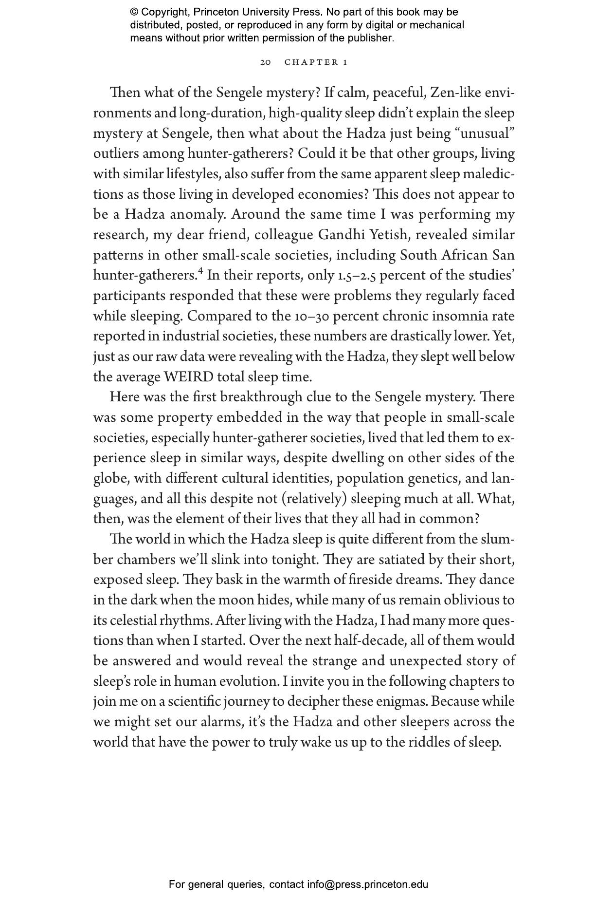 In this groundbreaking book, David Samson draws on his extensive fieldwork to explain how these sleep patterns contributed to our cognitive and social evolution. He delves into how the human brain adapted to achieve deeper, more restorative sleep, enabling advanced memory consolidation, fostering creativity, and contributing to our success as a species. Samson also addresses modern sleep challenges, demonstrating how an understanding of our evolutionary sleep heritage can help us to address sleep disorders and improve overall health and well-being. He tackles contentious issues such as co-sleeping, whether we should embrace paleo sleep or optimal sleep, and whether we are in fact suffering from an epidemic of too little sleep.