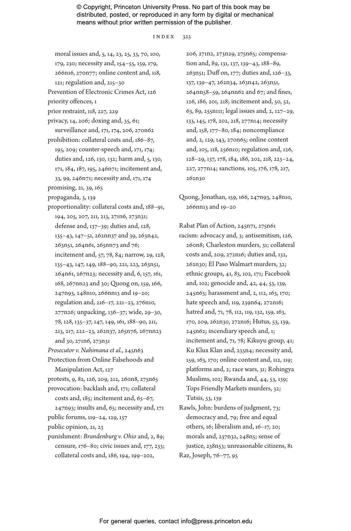 “A timely and ambitious investigation into the ethics of free speech, defending a distinctive liberal ideal, while confronting the challenge of harmful speech that ’sets fire to reason’ through inciting violence. Howarddevelops a nuanced argument about the interplay of moral and legal obligations, with important consequences for the responsibilities of speakers, hearers and platforms.”—Rae Langton, University of Cambridge, author of Sexual Solipsism: Philosophical Essays on Pornography and Objectification