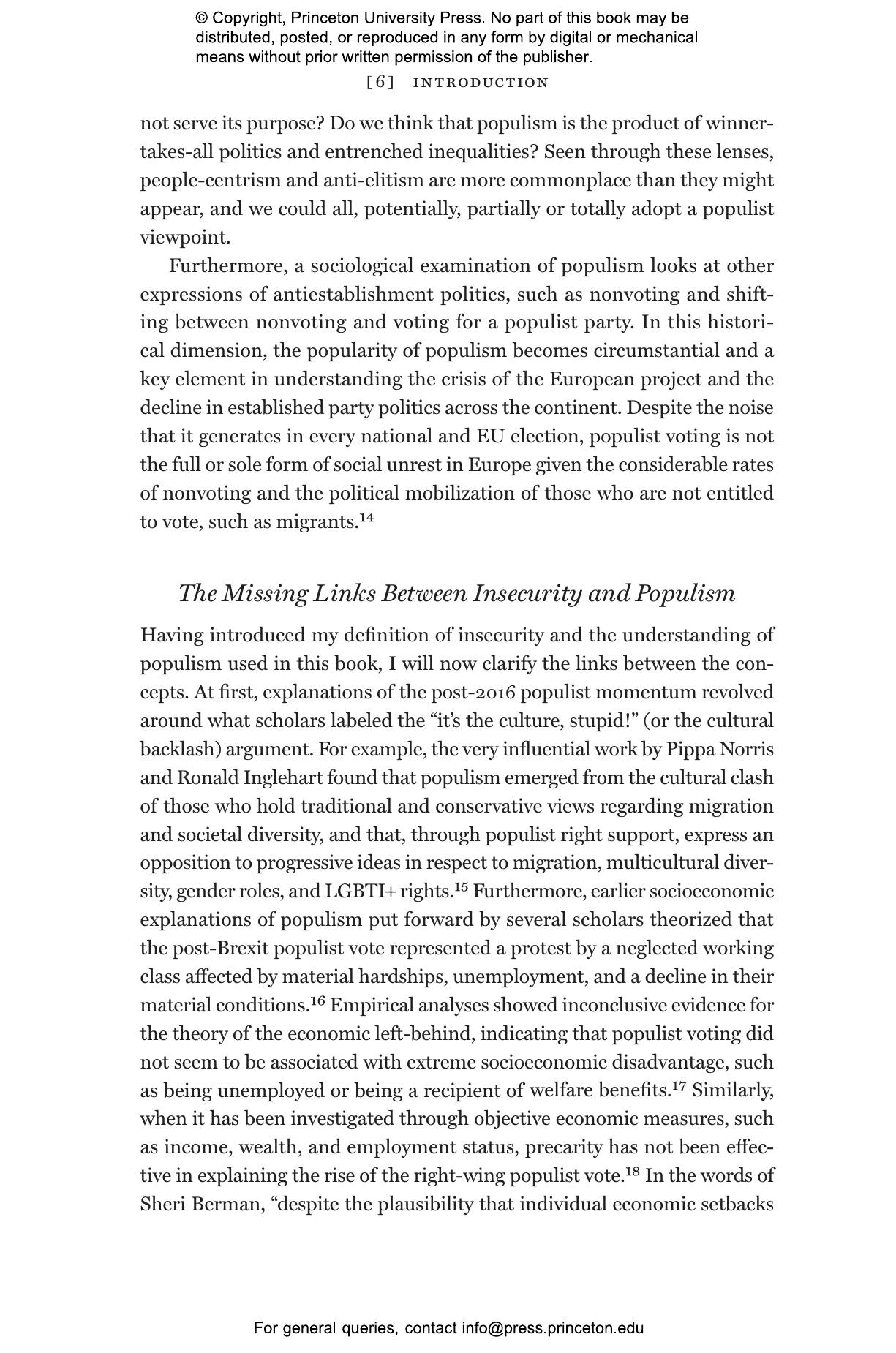 “Insecurity Politics is a much-needed addition to the literature on populism and the contemporary challenges facing democracies. Antonucci’s book provides an empirically grounded and theoretically sophisticated understanding of insecurity, showing that it is a fundamentally socioeconomic phenomenon: grounded in changing economic conditions but encompassing destabilizing social changes as well. By so doing, Insecurity Politics helps us better understand how economic, social, and cultural factors have interacted to create a breeding ground for a politics of discontent and division over the past decades.”—Sheri Berman, Barnard College