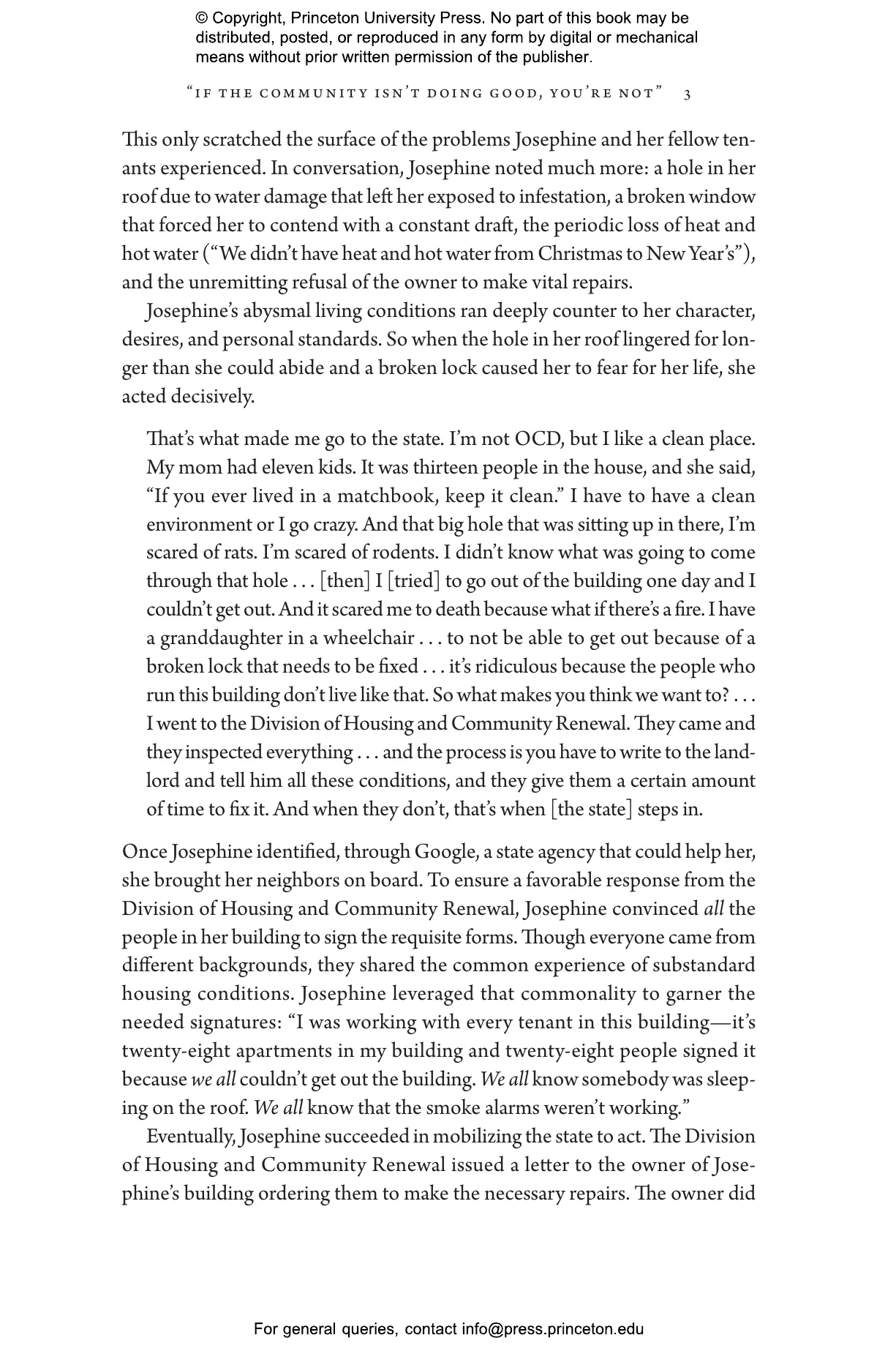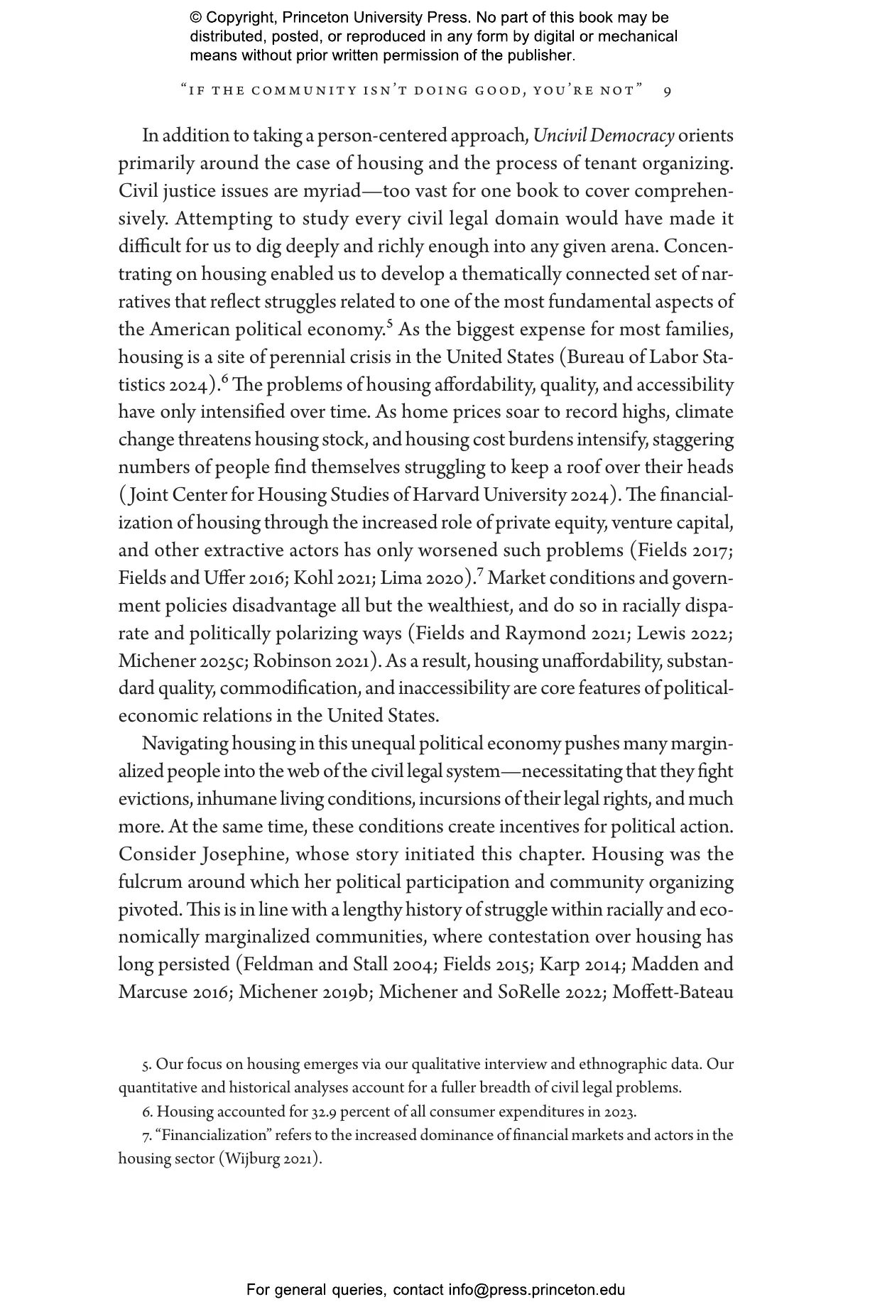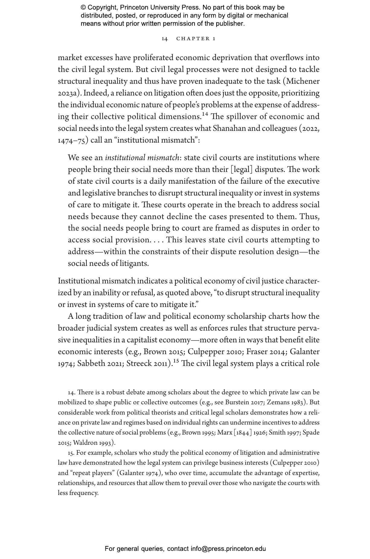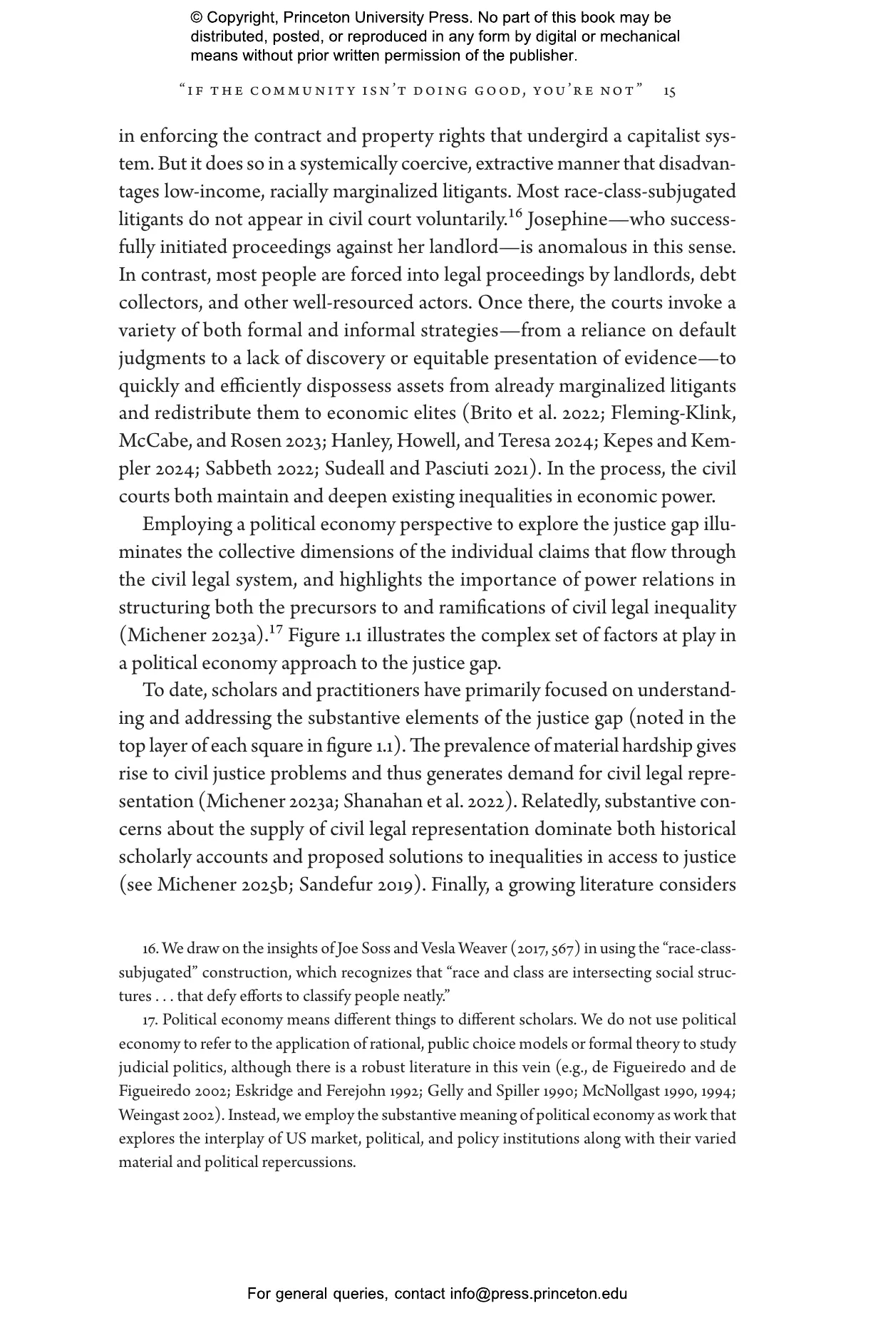 Jamila Michener and Mallory SoRelle show how civil legal problems, and the institutions meant to address them, greatly erode trust in the legal system among marginalized communities, undermining their broader sense of democratic citizenship and political standing. While legal representation offers vital protections, increased access to justice through an ever-growing supply of lawyers does not address the structural problems that generate demand for lawyers in the first place. Looking at cases involving unfair evictions and substandard housing, Michener and SoRelle demonstrate how community groups such as tenants’ unions can fill this justice gap and provide the means to build political power that transforms the conditions that create precarity.