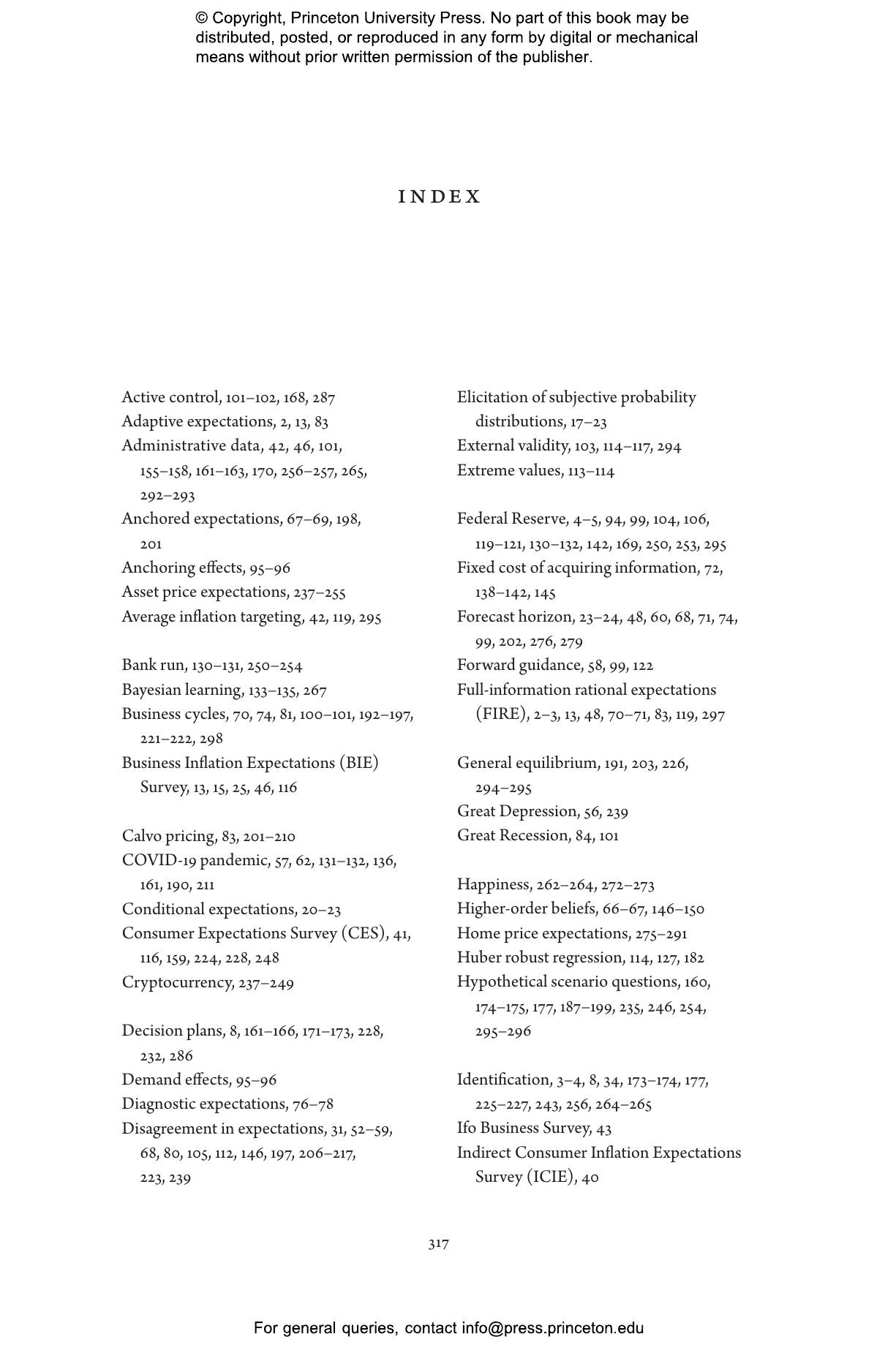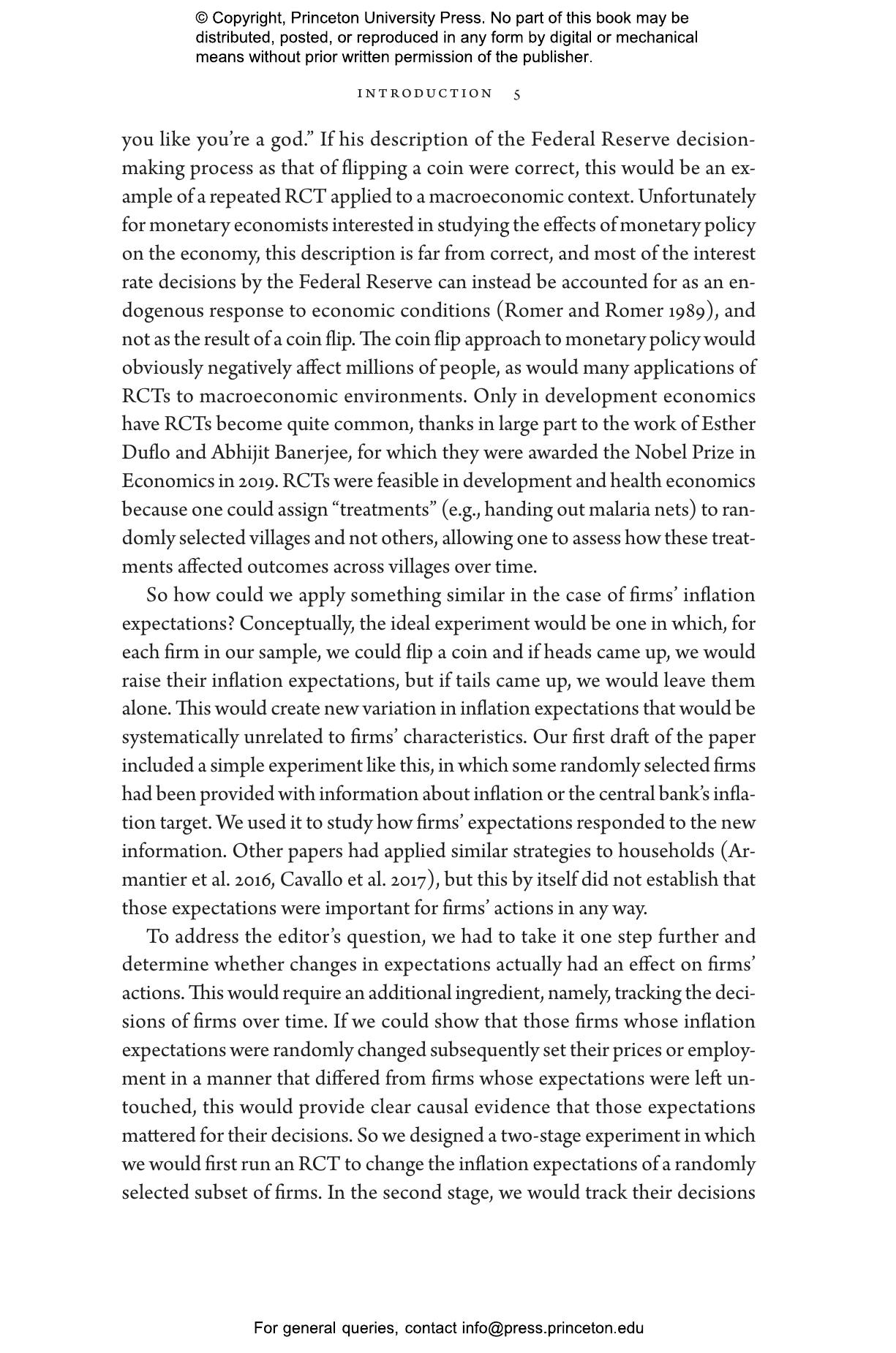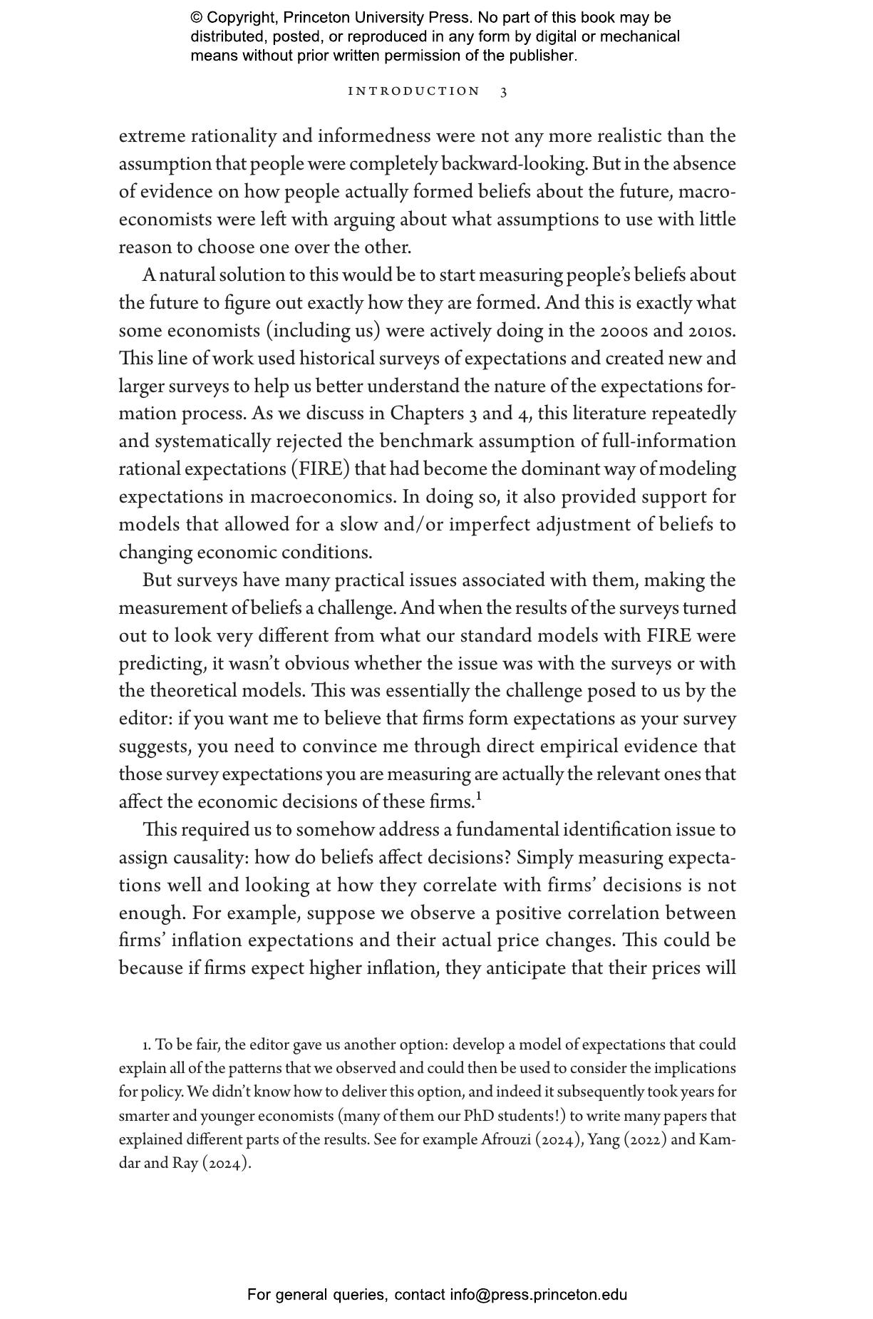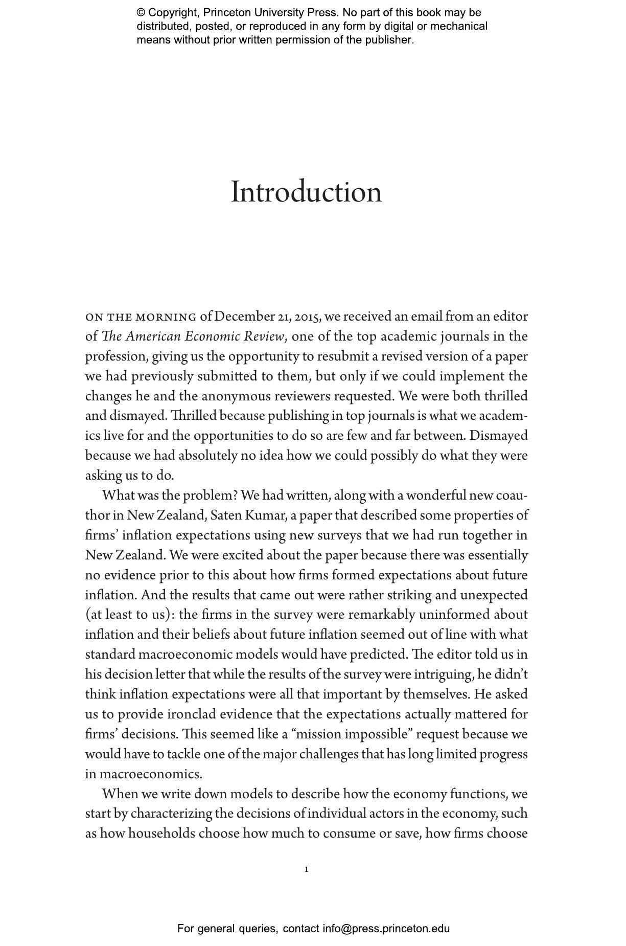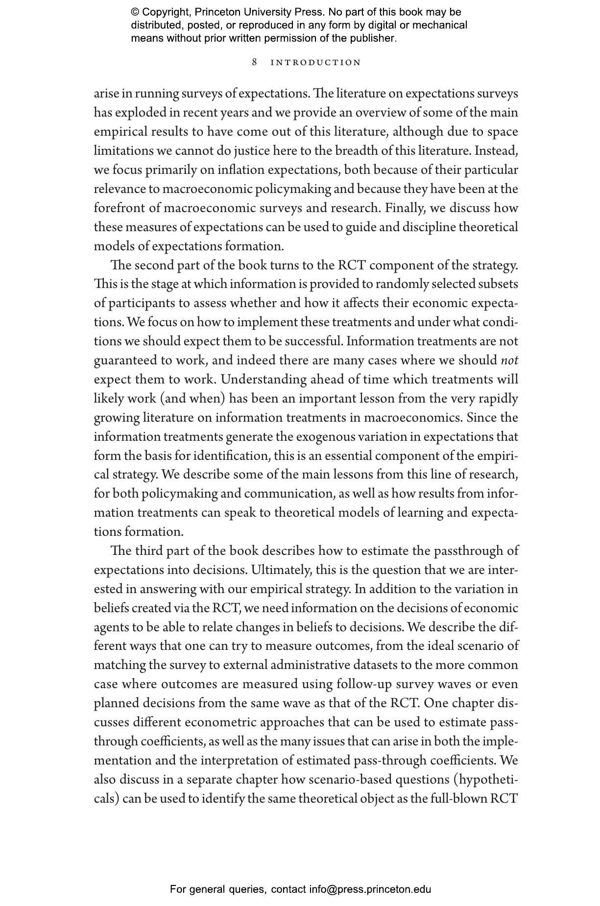 In this book, Olivier Coibion and Yuriy Gorodnichenko present a fresh empirical approach: using randomized controlled trials (RCTs) to study the causal impact of expectations. Drawing on more than a decade of their research, they show how targeted information treatments can generate experimental variation in beliefs鈥攎aking it possible to measure how those beliefs influence real-world decisions. Along the way, they reassess the limits of the traditional rational expectations framework and offer a richer, evidence-based picture of how people form and act on their views about the economy.