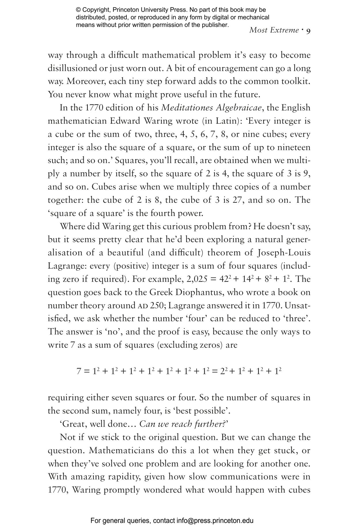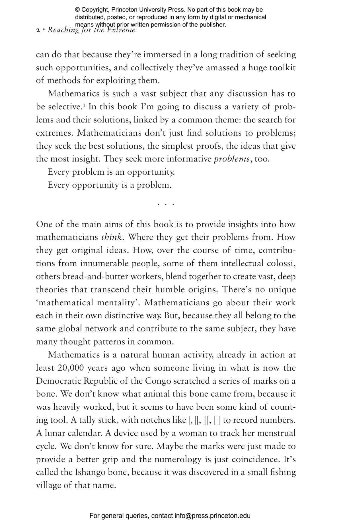 Stewart tells the stories of sixteen superlative problems鈥攖heir history, the struggles to solve them, and the uses of some of the results. From the biggest number to the smallest, the fastest fall to the weirdest symmetry, and the best fold to the shortest proof, these questions are either pure thought experiments or are motivated by real-world challenges. The Plateau problem, about the geometry of soap bubbles, led to the notion of a minimal surface鈥攏ow used in cosmology, biology, and other fields. Meanwhile, the 2023 discovery of a single tile shape that covers the infinite plane without repeating the same pattern has no application鈥攜et.