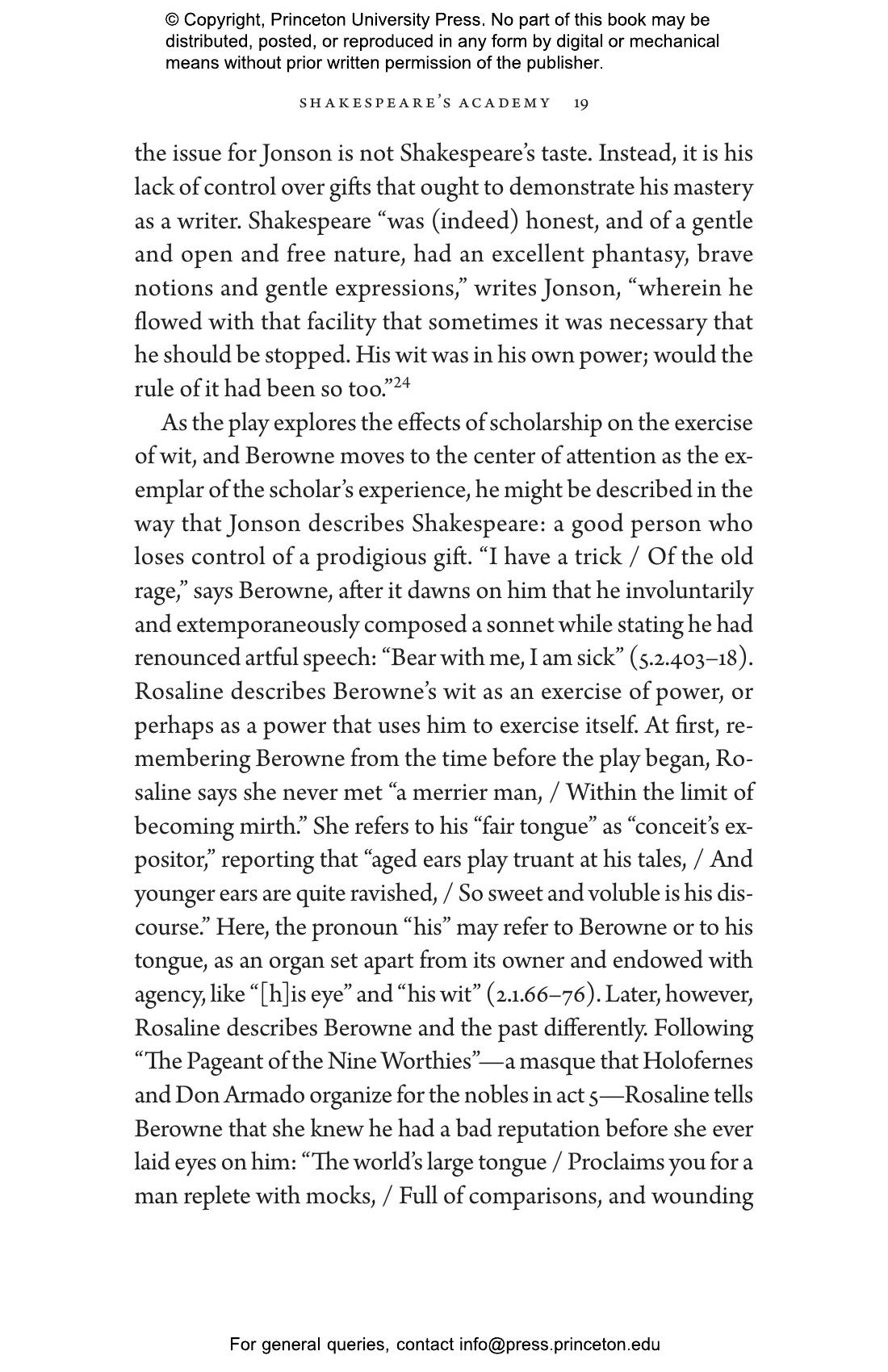 “This perfectly marvelous little book combines two of my favorite genres. It is at once a humanist manifesto—a very moving reflection on the humanities and how we might shepherd them into the future—and a series of remarkable readings of Shakespeare, the kind that renew and reorient one's connection to the plays. Who knew Shakespeare had such timely things to say about the uses and abuses of education? Shakespeare’s Scholars invites us to reflect on the wisdom and folly of academies, then and now—to reflect, and perhaps to amend.”—Jennifer Bryan, author of Looking Inward: Devotional Reading and the Private Self in Late Medieval England
