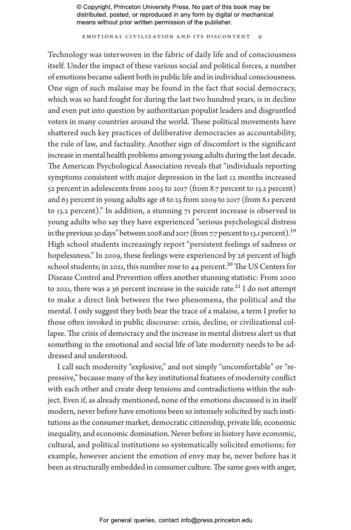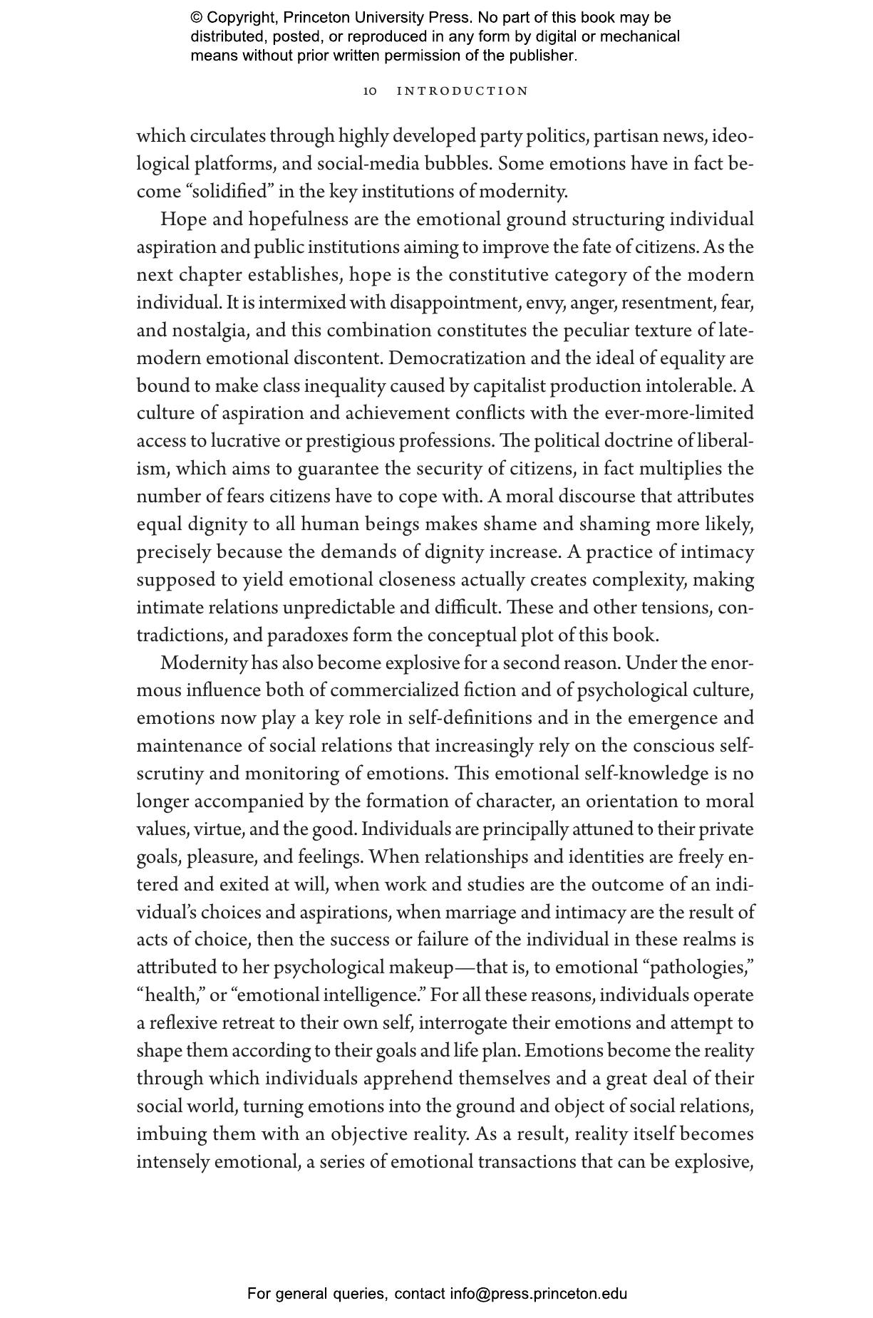 “In this compelling and revealing work, Eva Illouz draws on social science and literature to diagnose our present discontents. Compelling because it focuses on contemporary political developments and social movements and ranges from public life to the private and intimate. Revealing because it shows how our feelings are socially shaped and in ways we often fail to see.”—Steven Lukes, New York University