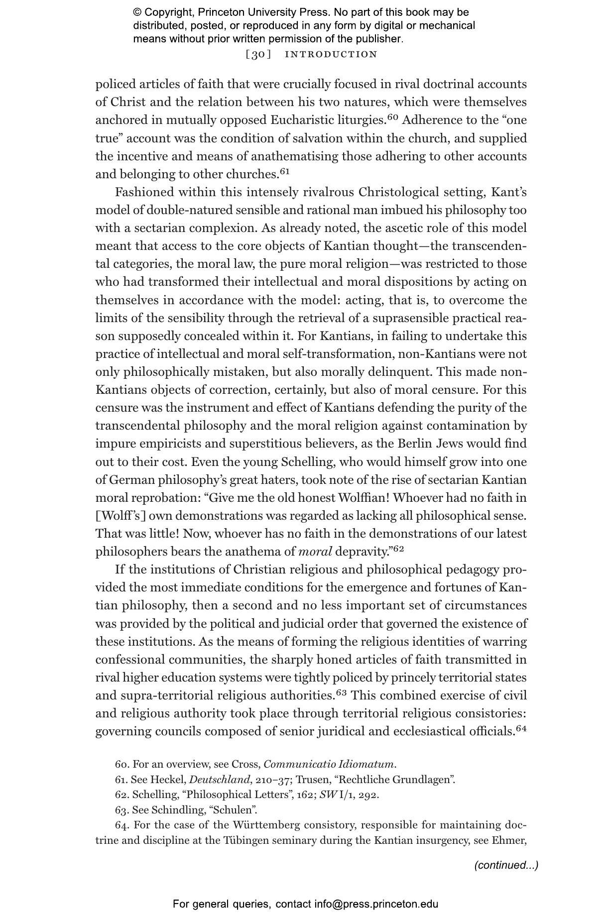 Hunter describes the ways that elite spiritual athletes performed a series of philosophically strenuous 鈥渁cts of the self on the self鈥 through Kant鈥檚 intellectual exercises. When Kantianism emerged as an insurgent cultural movement in the 1780s, it offered young academics training to be clergy and teachers a philosophy that was powerful enough to supplant Christian spirituality and to subordinate humanist scholarship and the natural sciences to philosophical self-reflection. For Kant and his followers, the religious disposition of Kantian philosophy came solely from the immanent practice of the philosophy itself. As a rival to conventional religion and as an academic interloper, Kantian philosophy unleashed a wave of conflicts in Germany鈥檚 ecclesiastical and scholarly cultures. Although recent Kant commentary typically views Kantianism as intrinsically secular and scientific, Hunter argues provocatively that Kant鈥檚 contemporaries viewed his philosophy as an extra-ecclesiastical path to spiritual refinement and moral regeneration.