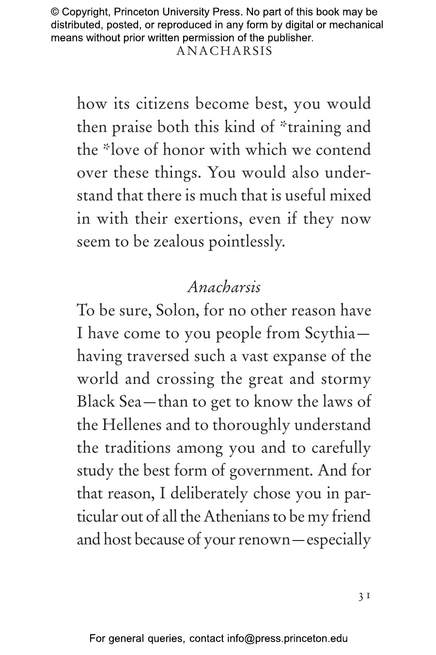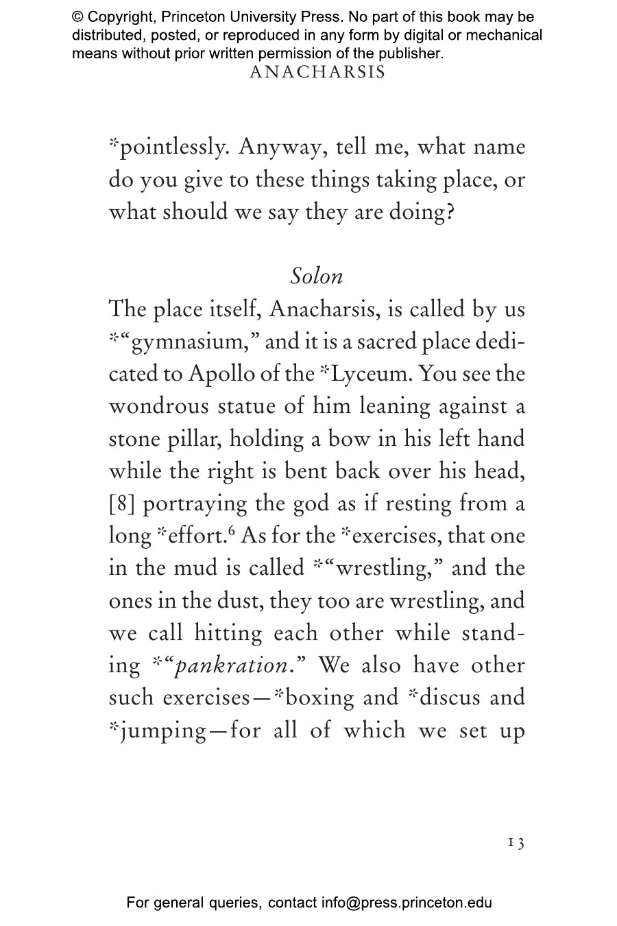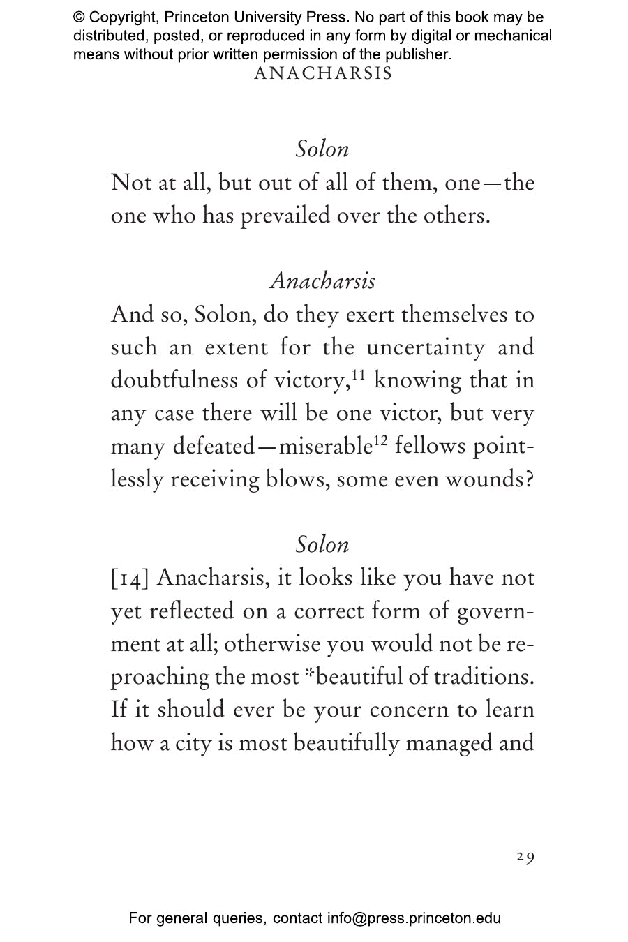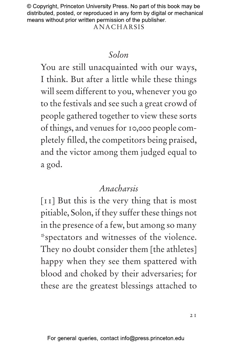 "[Reid and Mitsis's] translation is so immediate you can feel the athletes flinging sweat into your eyes. . . . Like boxers in the ring, Anacharsis and Solon take their best shots for and against the value of athletic competition. It’s a rousing, rhetorical battle that’s still playing out in college boardrooms, newspaper columns, and state legislatures — but never this wittily."鈥擱on Charles