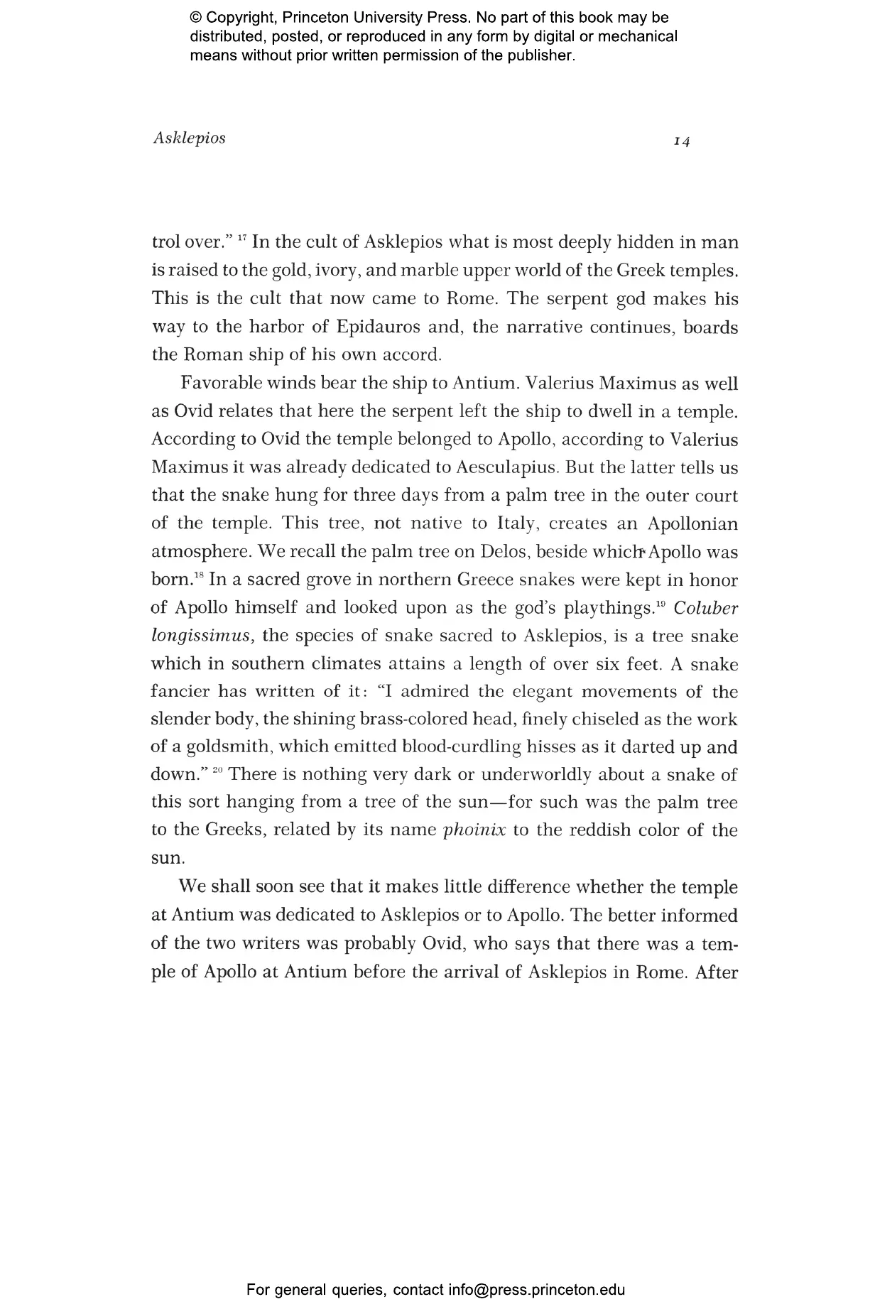 To the physicians of classical antiquity, Asklepios was the ideal of their existence as healers. In this book, acclaimed mythologist and historian of religion Carl Ker茅nyi takes readers on a tour of the sacred sites of the Greek god of medicine to investigate the origins and archetypal significance of Asklepios as the divine physician. Drawing on mythology to trace the obscure beginnings of the cult, Ker茅nyi argues that Asklepios was an aspect of his father, the god Apollo, closely associated with the light of rising sun and embodying the qualities of a healing deity. He shows how the Greeks revered Asklepios as the divine ancestor and prototype of mortal physicians and explores the role of the Asklepios archetype in modern psychology.