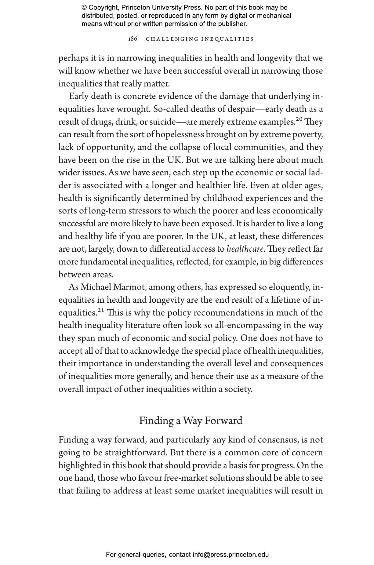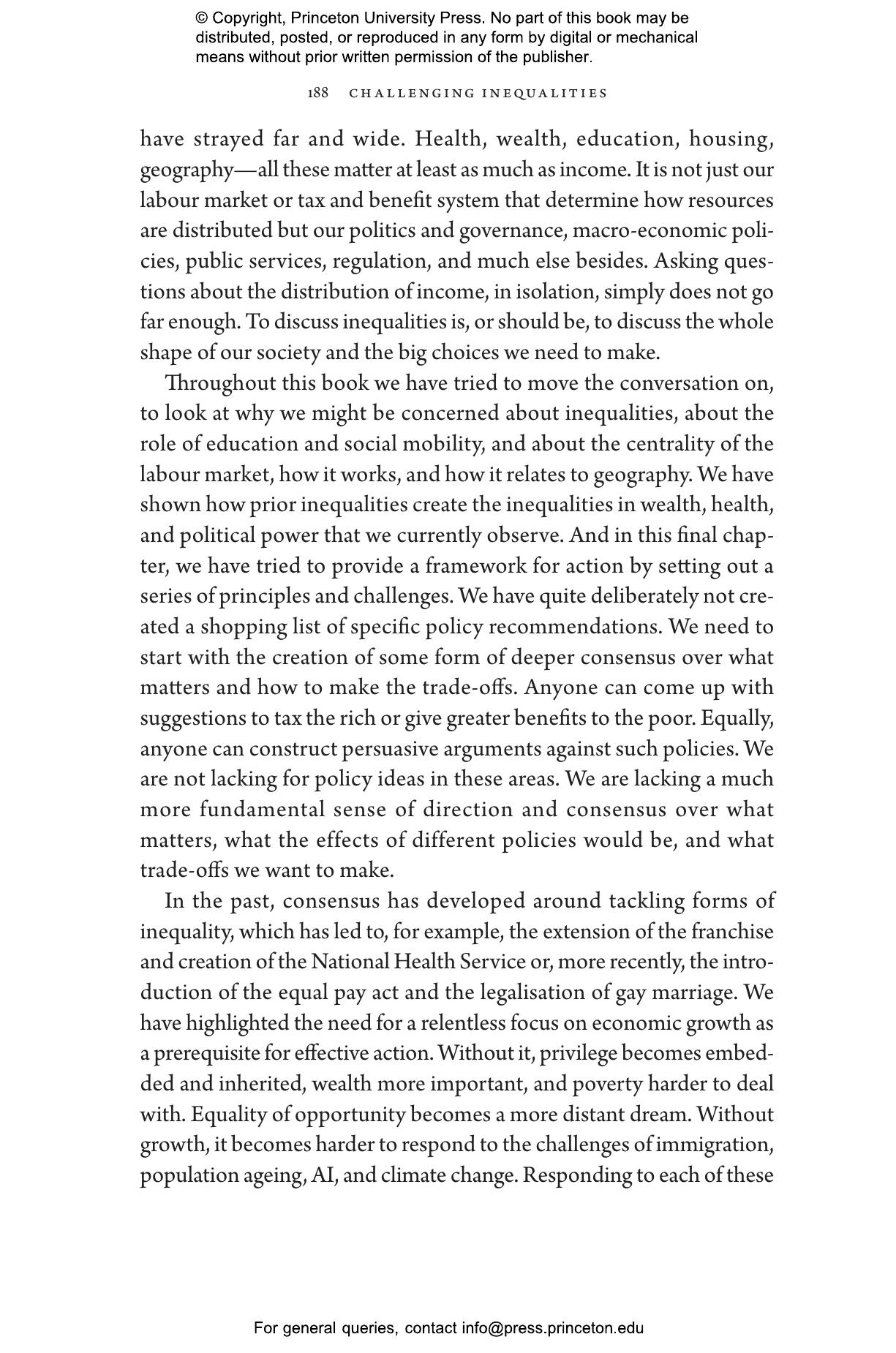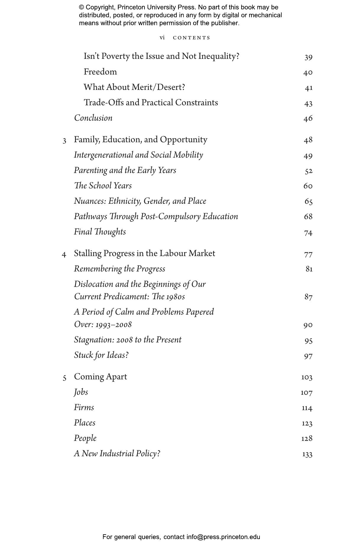 The book explains the enduring effects of early life experiences and education and examines the trends in employment and earnings over recent decades. It argues that economic stagnation since the financial crises of 2008–2009 has exposed inequalities originating in the 1980s. Not only have incomes stagnated, but so has progress towards reducing health inequalities and dealing with inequalities across gender, ethnicity, geography, age and educational level. The combination of earnings inequality and economic stagnation has led to the growing importance of wealth, the increasing concentration of economic power in an older generation and a decline in social mobility. Economic inequalities have also resulted directly in dangerous differences between regions and in political power across groups.