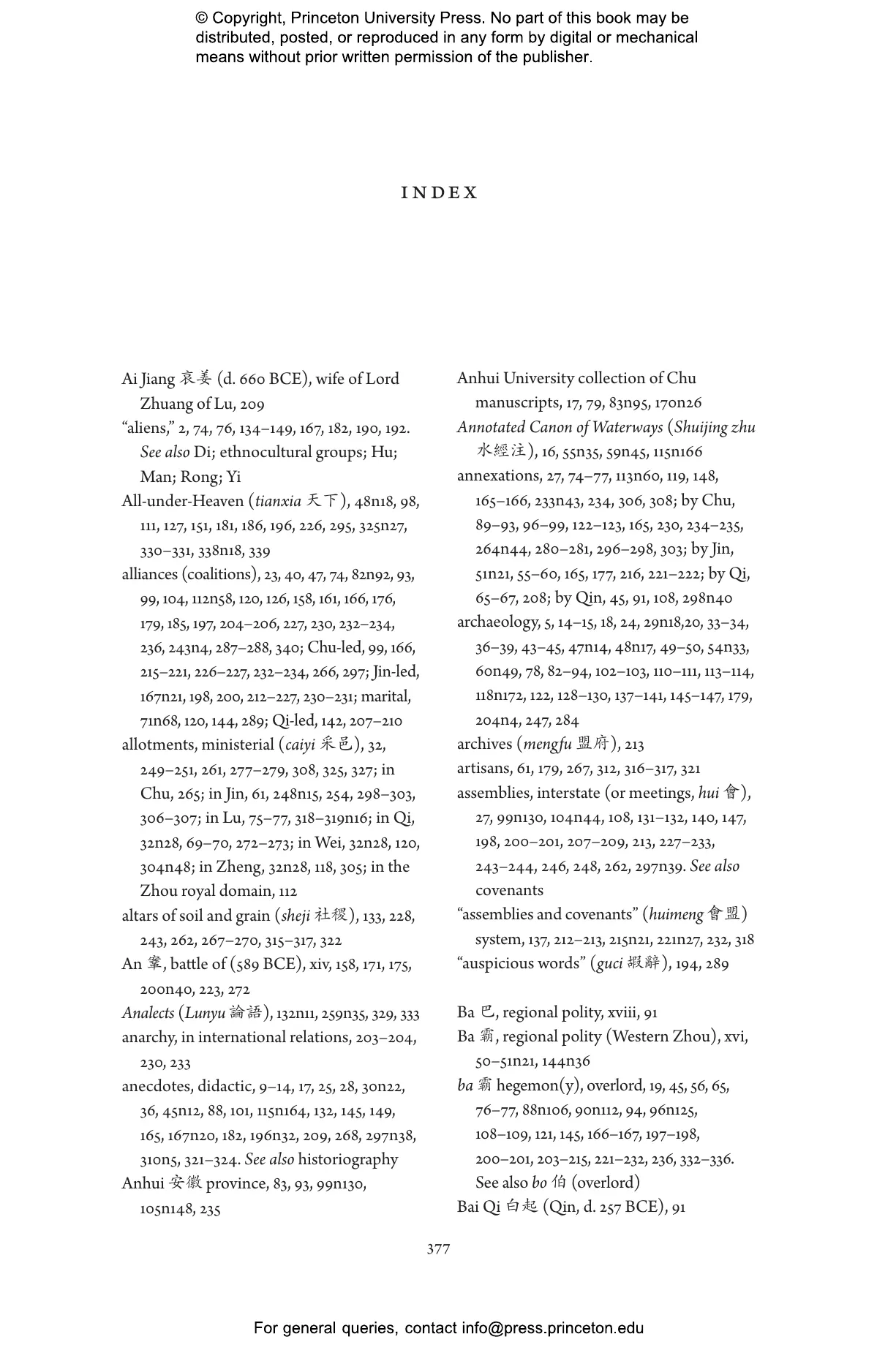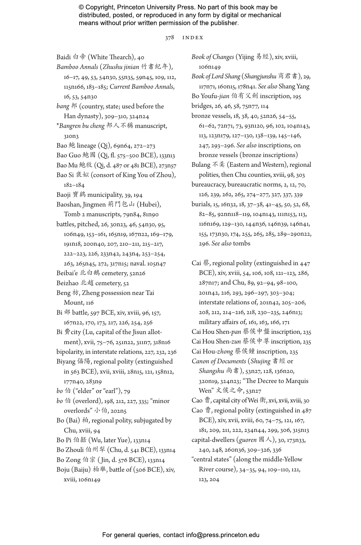 Pines draws on textual, archaeological, and paleographic sources, many of them newly discovered, to examine the political dynamics of the era, which he terms China’s longest experiment with a polycentric world and society. Efforts during this period to establish a viable multistate order, overcome the weaknesses of monarchial rule, and moderate coercive methods of governance have been largely regarded as unsuccessful. Pines explores the consequences of these perceived failures and analyzes the ways negative views of China’s polycentrism contributed to its later quest for political unity and centralization. Pines’s account sheds new light on the Springs-and-Autumns period both within its own contemporaneous context and within the long durée of Chinese history.
