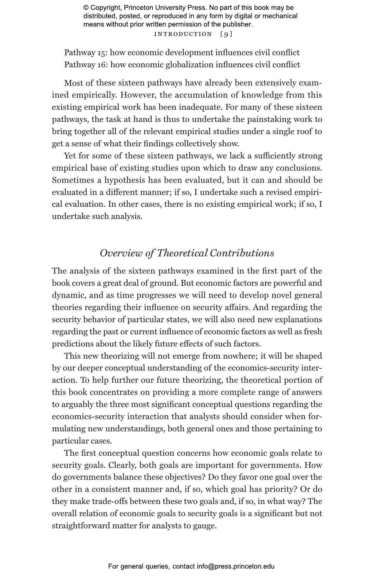 In this book, Stephen Brooks provides a systematic empirical and theoretical examination of how economic factors influence security affairs. Empirically, he analyzes how economic variables of all kinds affect interstate war, terrorism, and civil war; in total, sixteen pathways are examined. Brooks shows that the relationship between economic factors and conflict is complex and multifaceted; discrete economic factors鈥攕uch as international trade, economic development, and globalized manufacturing, to name a few鈥攁re sometimes helpful for promoting peace and stability, but at other times are detrimental. Brooks also develops a stronger theoretical foundation for guiding future research on the economics-security interaction. Drawing on Adam Smith, he provides a more complete range of answers to the three key conceptual questions analysts must consider: how economic goals relate to security goals; what economic factors to focus on; and how economic actors influence security policies.