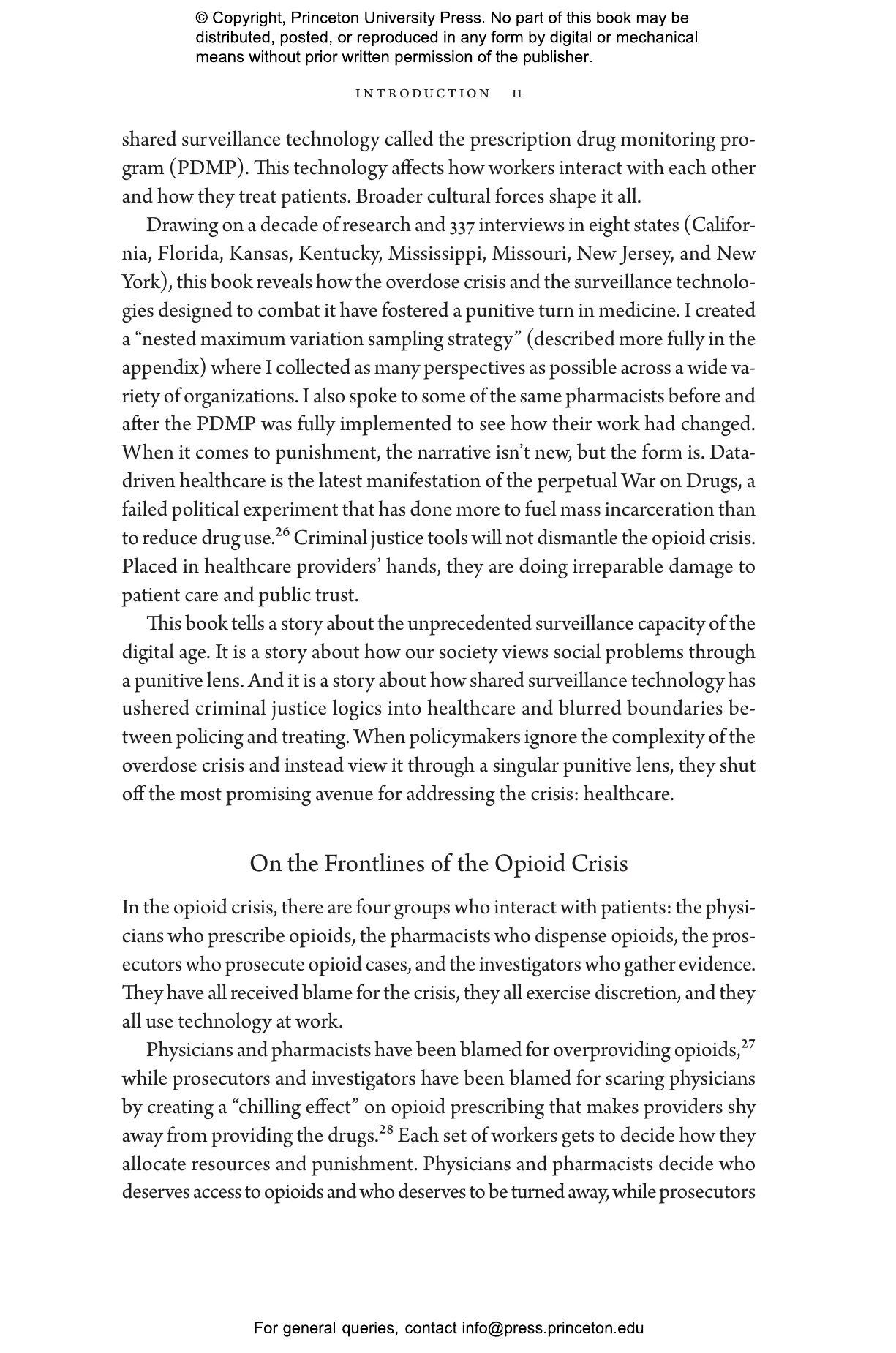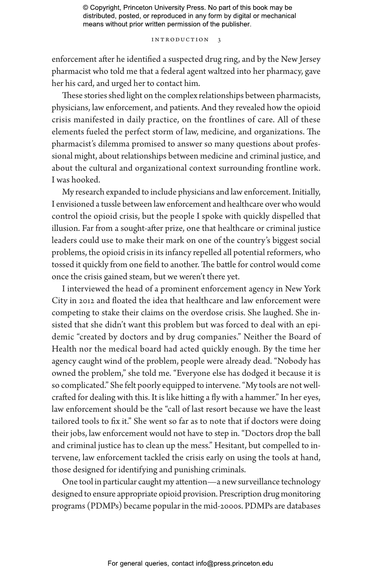 Elizabeth Chiarello draws on hundreds of in-depth interviews with physicians, pharmacists, and enforcement agents across the United States to take readers to the frontlines of the opioid crisis, where medical providers must make difficult choices between treating and punishing the people in their care. States now employ prescription drug monitoring programs capable of tracking all controlled substances within a state and across state lines. Chiarello describes how the reliance on these databases blurs the line between medicine and criminal justice and pits pain sufferers against people with substance-use disorders in a zero-sum game.