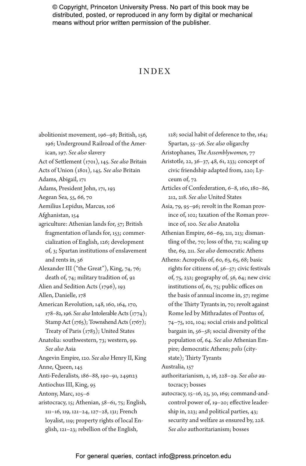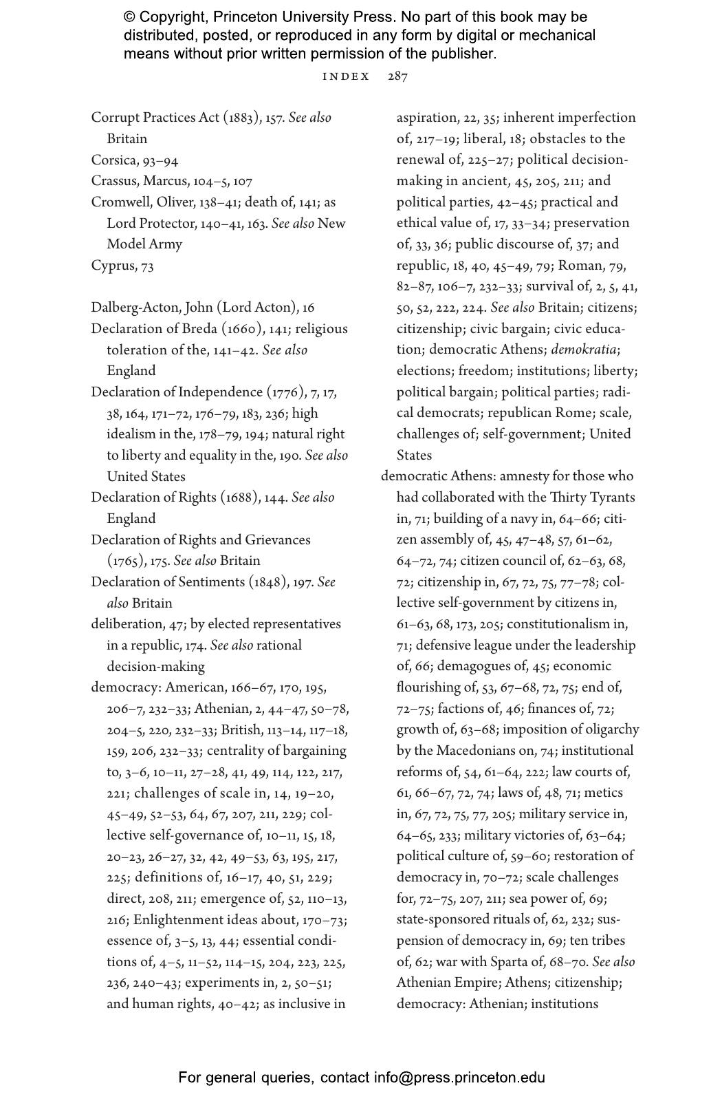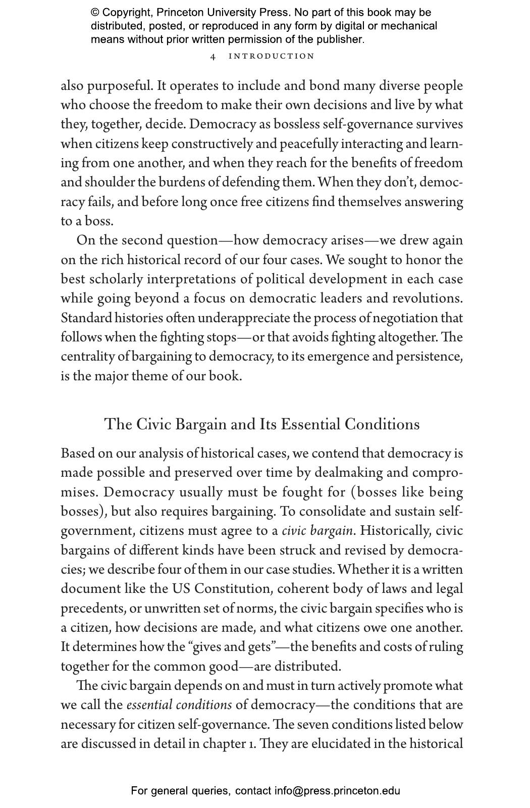 “The Civic Bargain is a very welcome and original addition for those who want to know something about future prospects for democracy. Brook Manville and Josiah Ober take a deep historical perspective, they establish essential conditions for democracy, and they tell us that it is a process that is never finished. Civic bargains must be struck repeatedly at critical junctures to keep democracy alive.”—David Stasavage, author of The Decline and Rise of Democracy: A Global History from Antiquity to Today