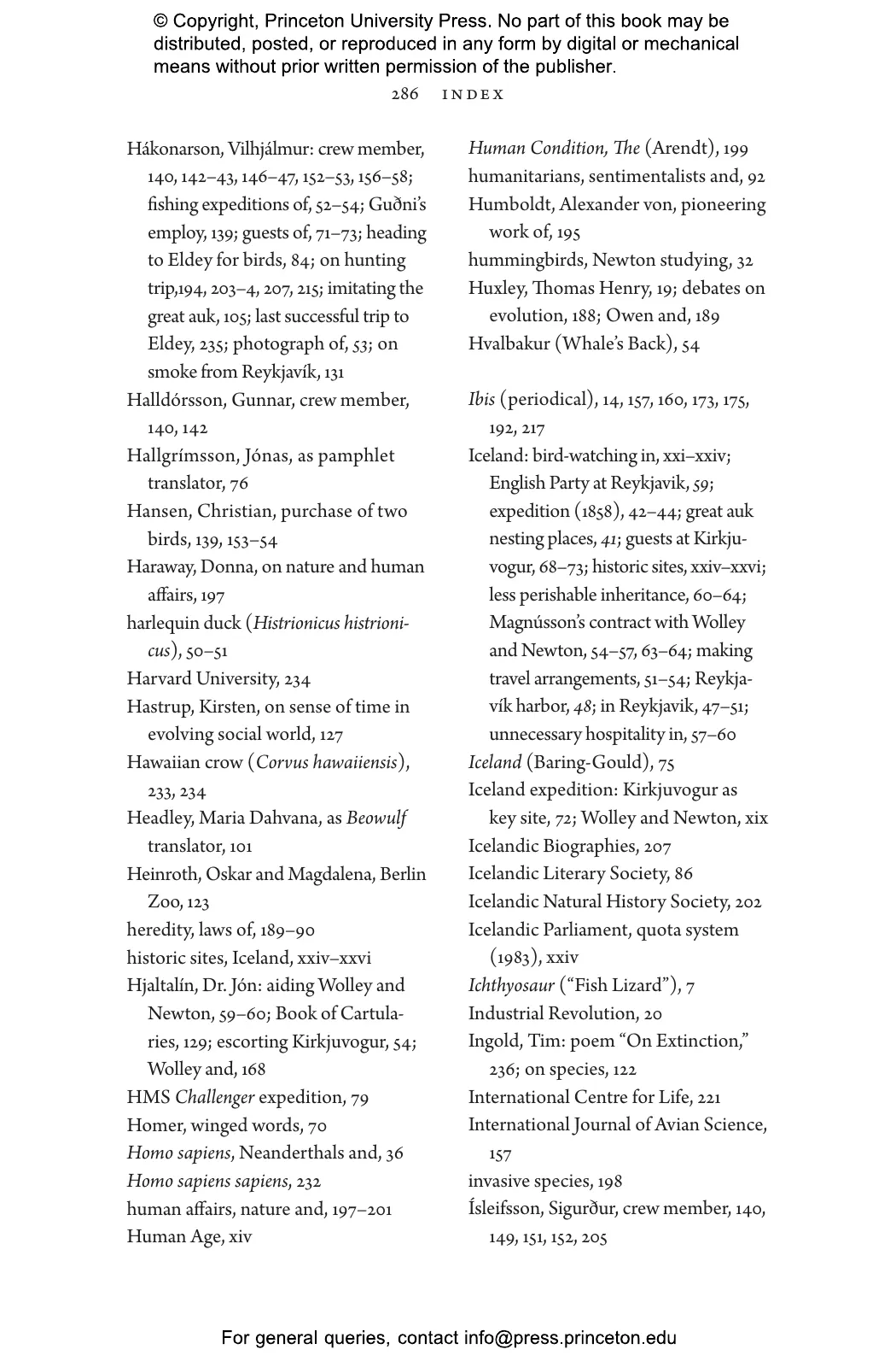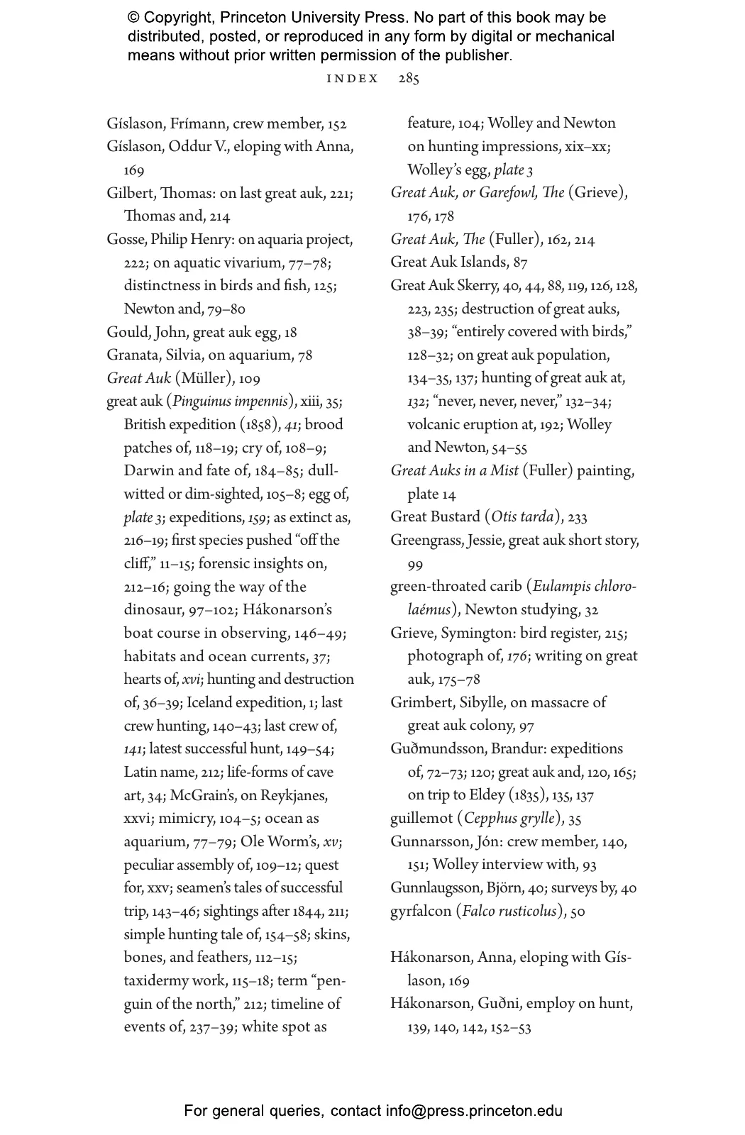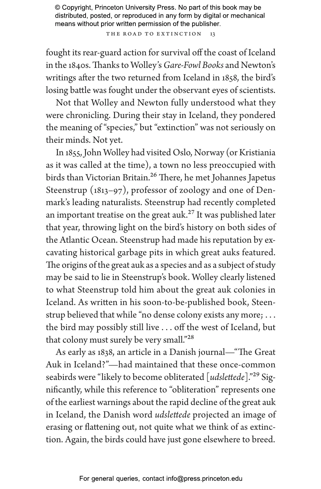 Pálsson vividly recounts how British ornithologists John Wolley and Alfred Newton set out for Iceland to collect specimens only to discover that the great auks were already gone. At the time, the Victorian world viewed extinction as an impossibility or trivialized it as a natural phenomenon. Pálsson chronicles how Wolley and Newton documented the fate of the last birds through interviews with the men who killed them, and how the naturalists’ Icelandic journey opened their eyes to the disappearance of species as a subject of scientific concern—and as something that could be caused by humans.