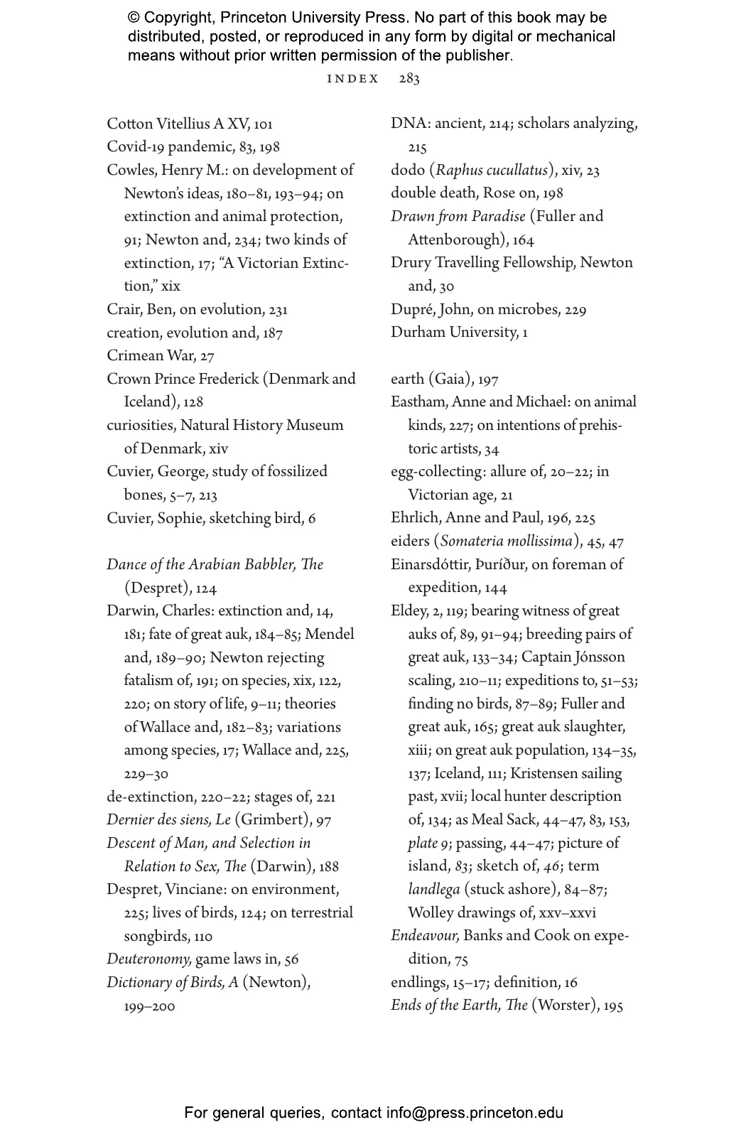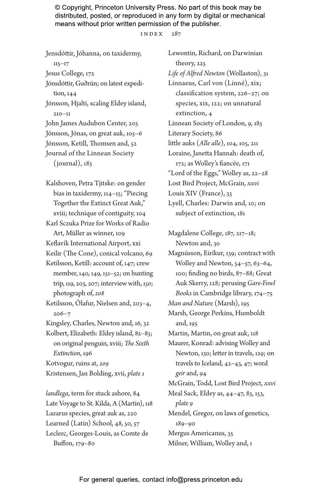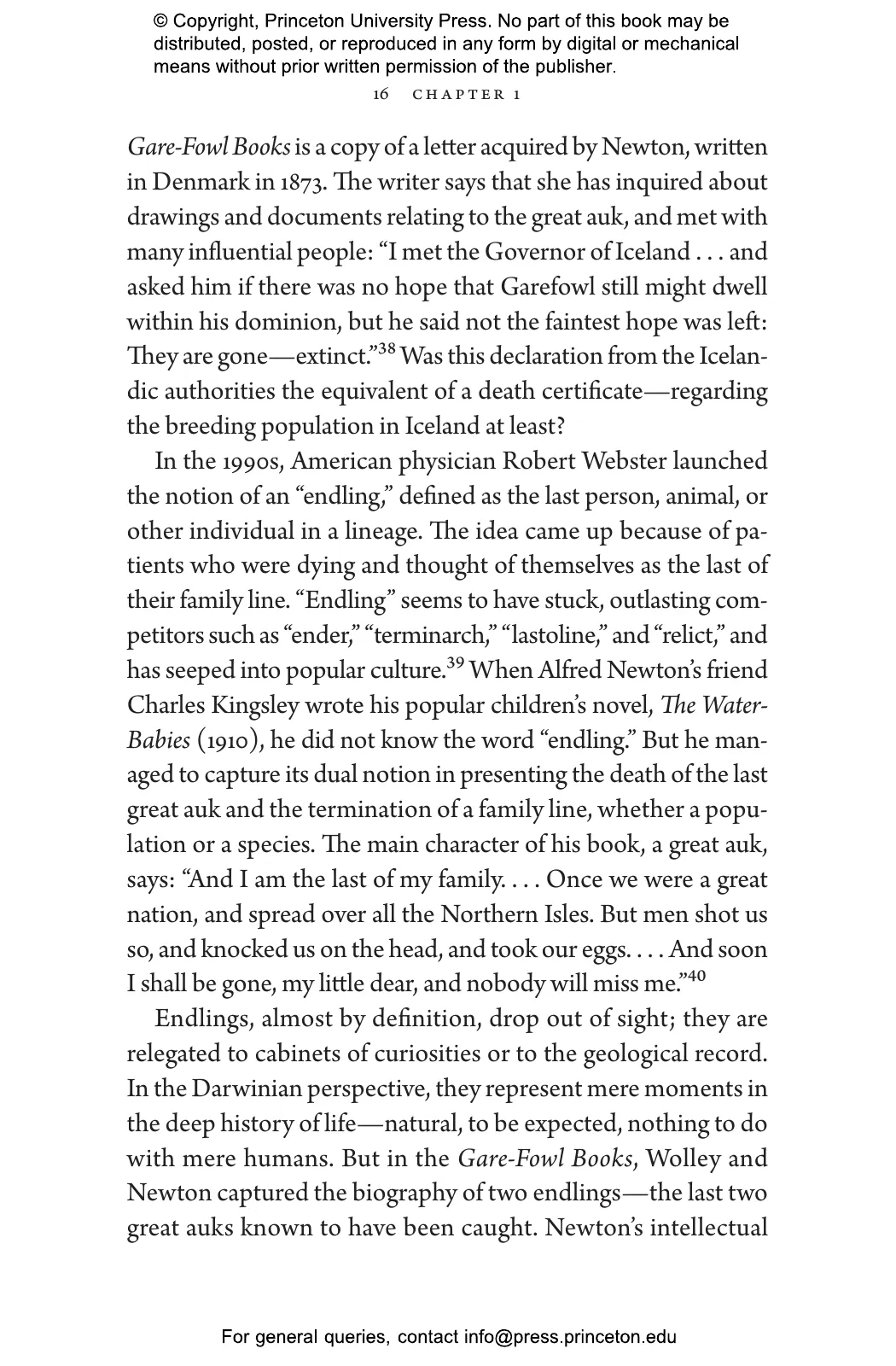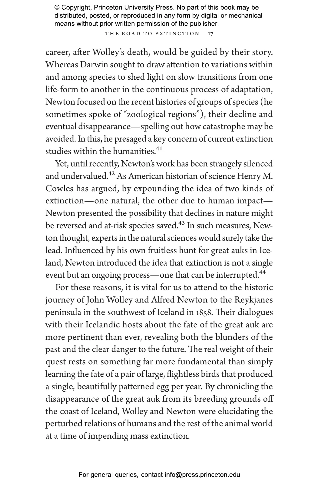 Pálsson vividly recounts how British ornithologists John Wolley and Alfred Newton set out for Iceland to collect specimens only to discover that the great auks were already gone. At the time, the Victorian world viewed extinction as an impossibility or trivialized it as a natural phenomenon. Pálsson chronicles how Wolley and Newton documented the fate of the last birds through interviews with the men who killed them, and how the naturalists’ Icelandic journey opened their eyes to the disappearance of species as a subject of scientific concern—and as something that could be caused by humans.