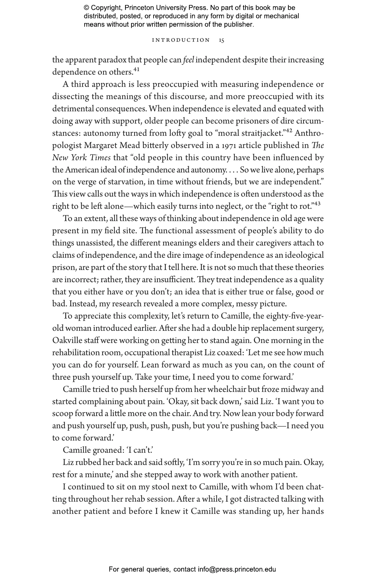 In twenty-first-century America, as people live longer than ever before, it鈥檚 taken for granted that older adults should be active and self-reliant. News stories describe nonagenarians who run marathons, reality shows feature attractive older women competing for the love of a widowed bachelor, and policymakers encourage aging 鈥渋n place鈥 rather than in a nursing home. In Chasing Independence, Guillermina Altomonte turns a critical eye on these expectations and asks what happens when independence becomes the yardstick by which we measure the quality of old age. Drawing on ethnographic observations in a skilled nursing facility in New York City, interviews with older adults and healthcare workers, and historical materials, she shows how independence operates as an unquestioned standard for medical assessments, allocation of services, and even as a way to determine an older person鈥檚 identity and self-worth.