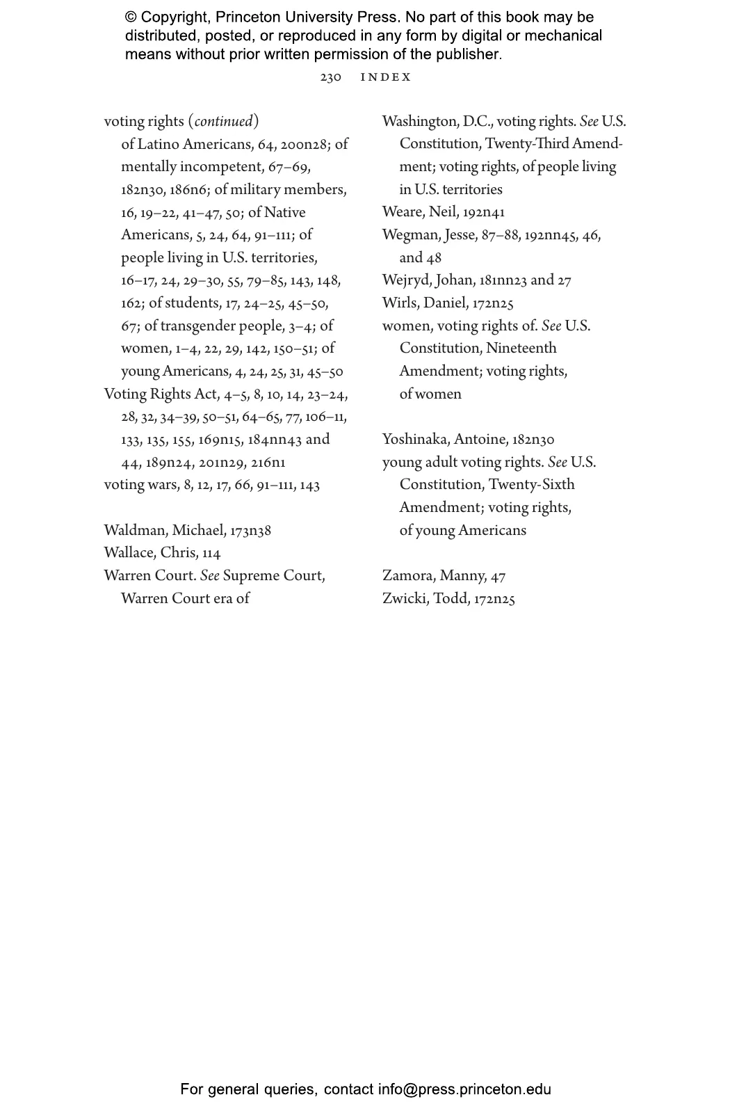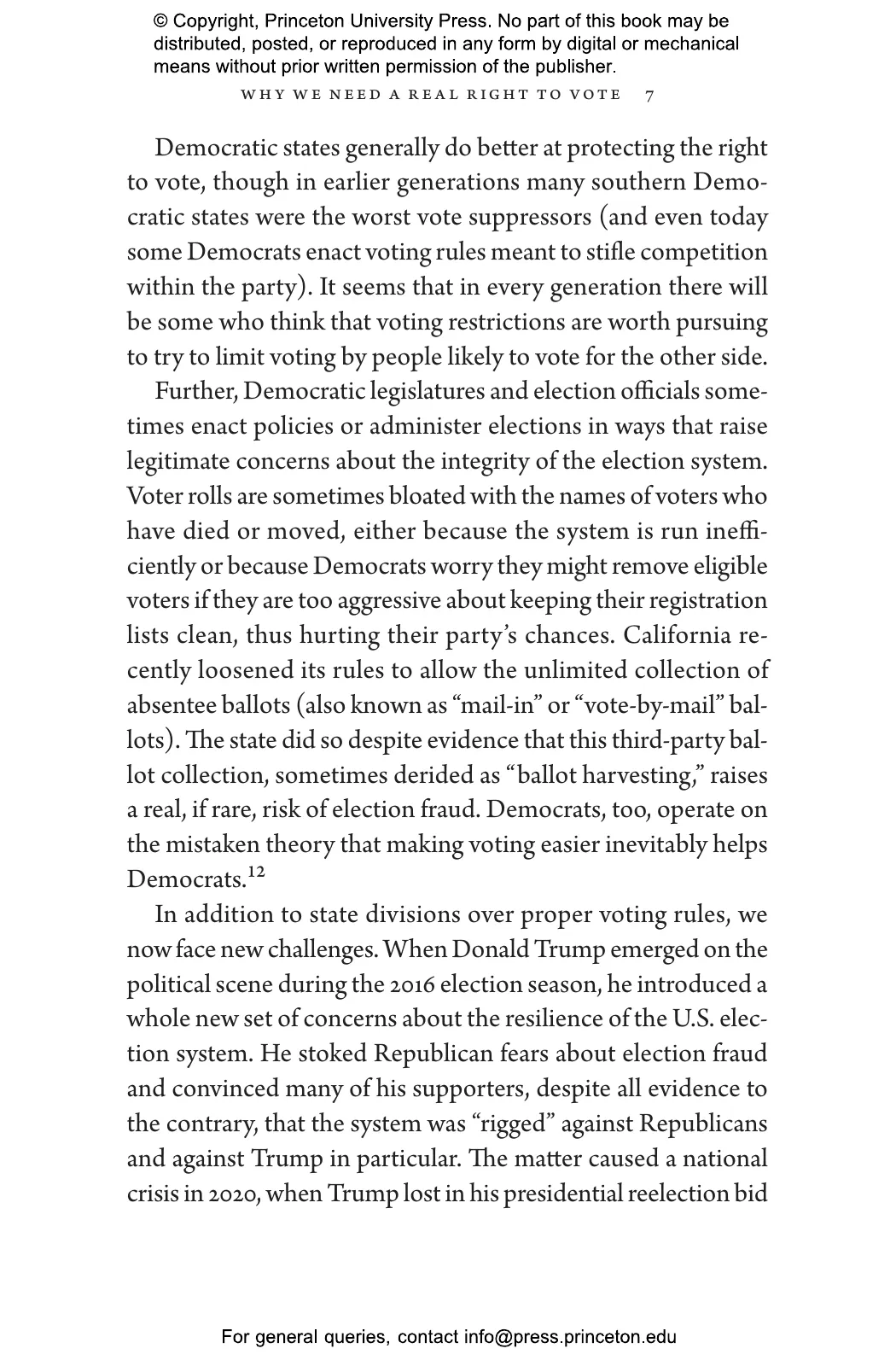 Drawing on troubling stories of state attempts to disenfranchise military voters, women, African Americans, students, former felons, Native Americans, and others, Richard Hasen argues that American democracy can and should do better in assuring that all eligible voters can cast a meaningful vote that will be fairly counted. He shows how a constitutional right to vote can deescalate voting wars between political parties that lead to endless rounds of litigation and undermine voter confidence in elections, and can safeguard democracy against dangerous attempts at election subversion like the one we witnessed in the aftermath of the 2020 presidential election.