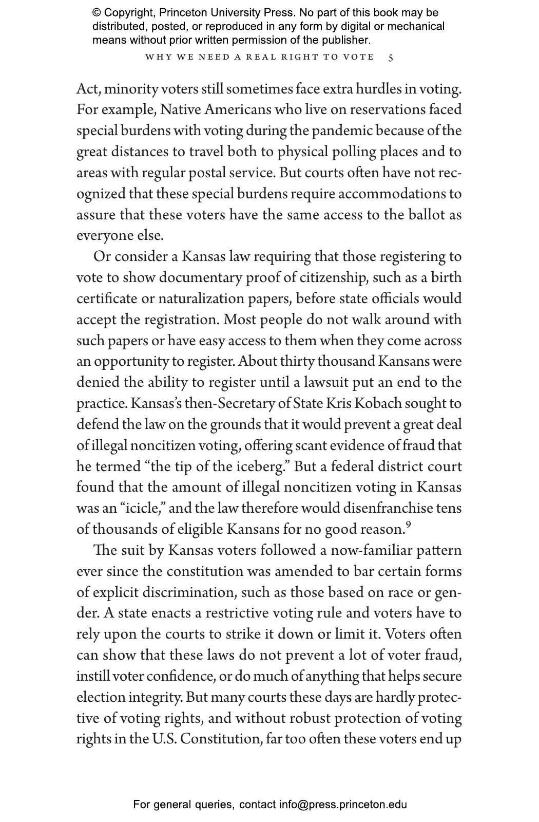 “Richard Hasen compellingly conveys the complexity and urgency of the case for an affirmative right to vote in the Constitution. He has masterfully transformed what has been an idealistic musing into a proposal that demands real consideration and engagement. We should all be heartened that the right to vote has such an informed, inventive, and effective champion.”—Janai Nelson, president and director-counsel of the Legal Defense Fund