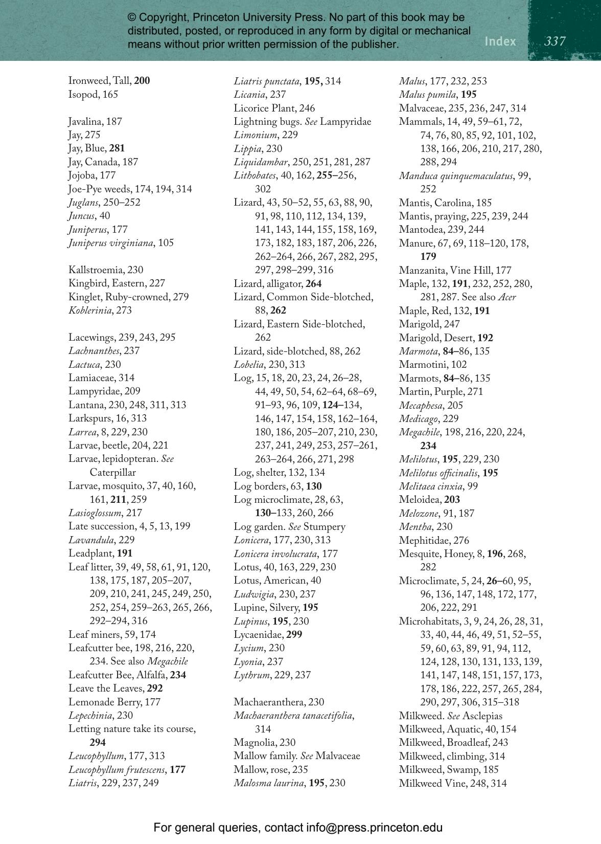 - Includes detailed species profiles for common insects (including bees), amphibians, birds, and reptiles, with an emphasis on key resources to include in your landscape designs