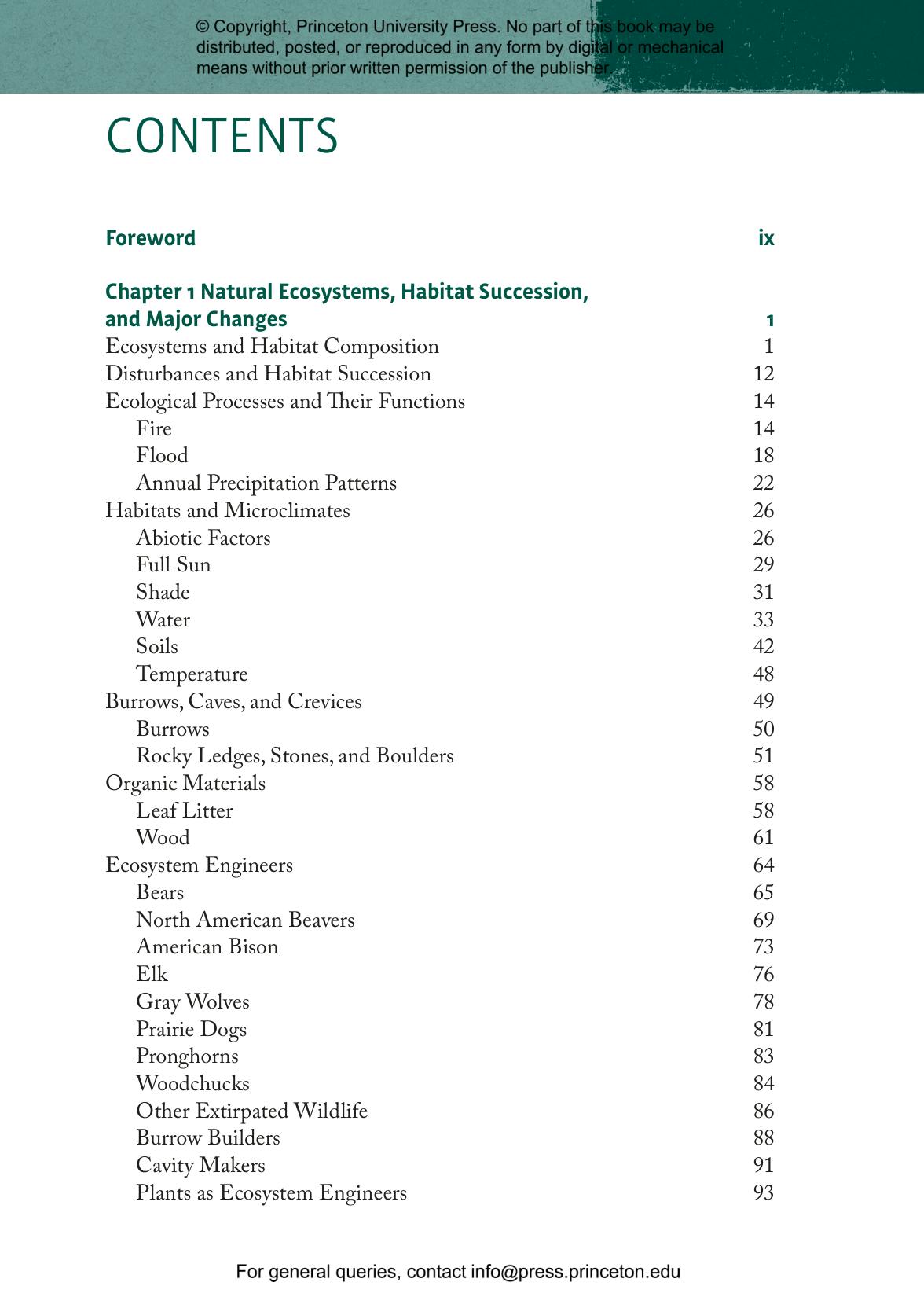- Explains how to replicate roles of absent animals including bison, wolves, and beavers and processes like floods, fires, and ecological succession, which naturally regulate and create habitats