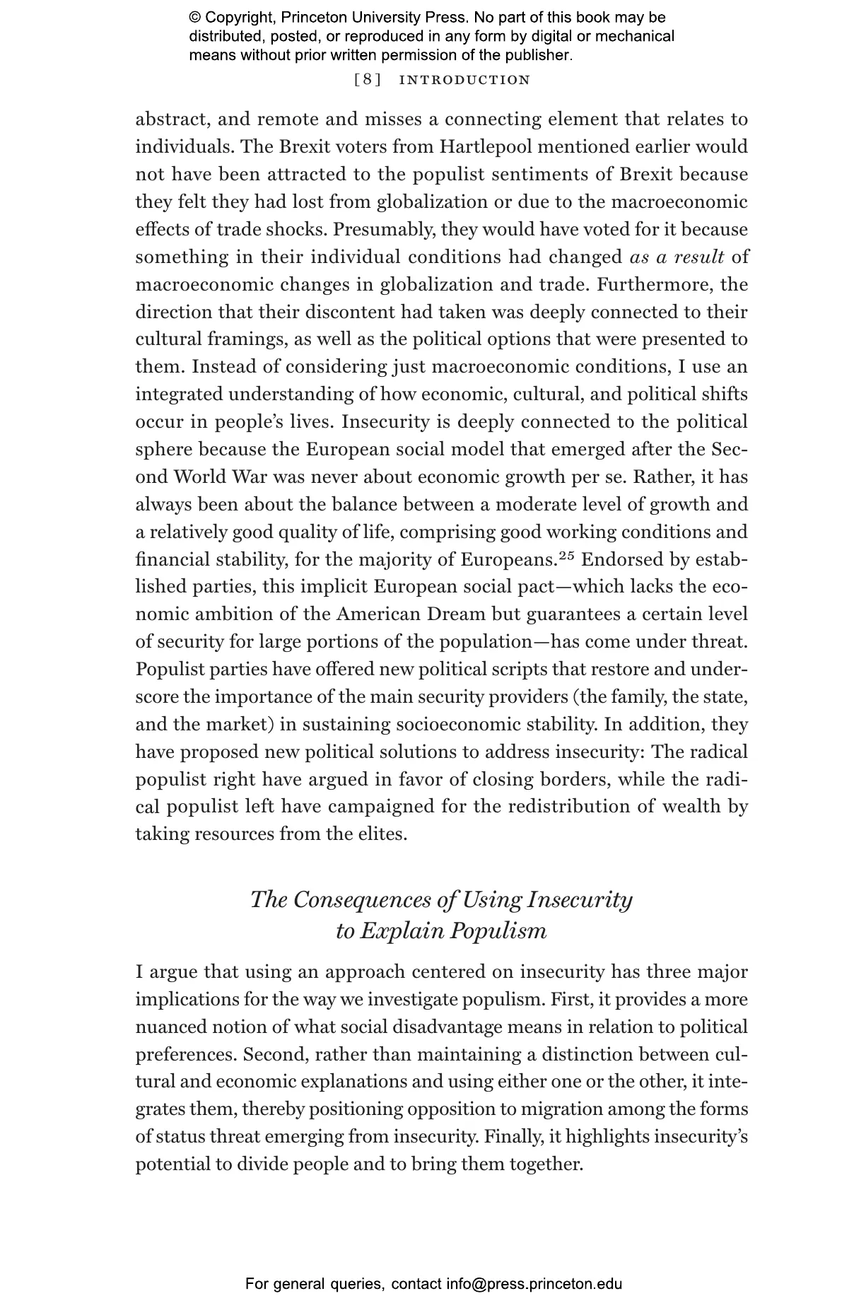 “Insecurity Politics is a much-needed addition to the literature on populism and the contemporary challenges facing democracies. Antonucci’s book provides an empirically grounded and theoretically sophisticated understanding of insecurity, showing that it is a fundamentally socioeconomic phenomenon: grounded in changing economic conditions but encompassing destabilizing social changes as well. By so doing, Insecurity Politics helps us better understand how economic, social, and cultural factors have interacted to create a breeding ground for a politics of discontent and division over the past decades.”—Sheri Berman, Barnard College