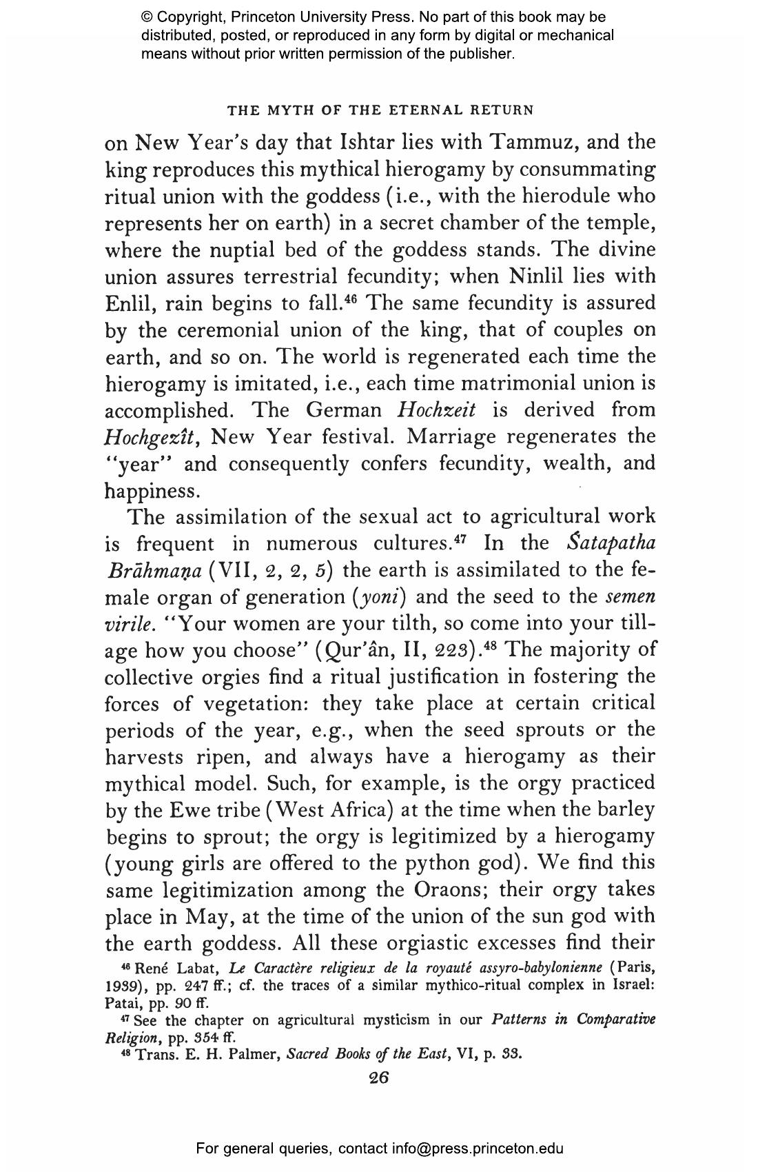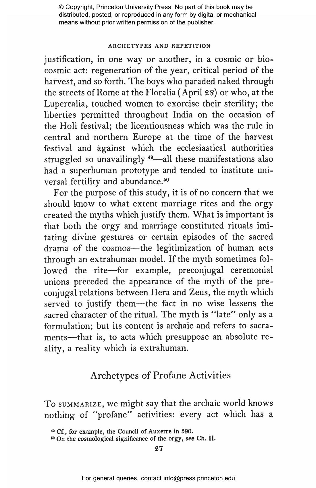 First published in English in 1954, this founding work in the historical study of religions secured the North American reputation of the Romanian 茅migr茅-scholar Mircea Eliade. Referring to an astonishing number of cultures and drawing on scholarship in no fewer than half a dozen European languages, The Myth of the Eternal Return illuminates the religious beliefs and rituals of a wide variety of ancient cultures and argues that understanding them still has the power to enrich our conception of what it means to be human.