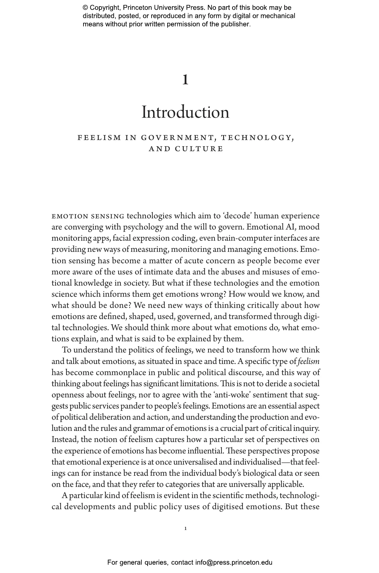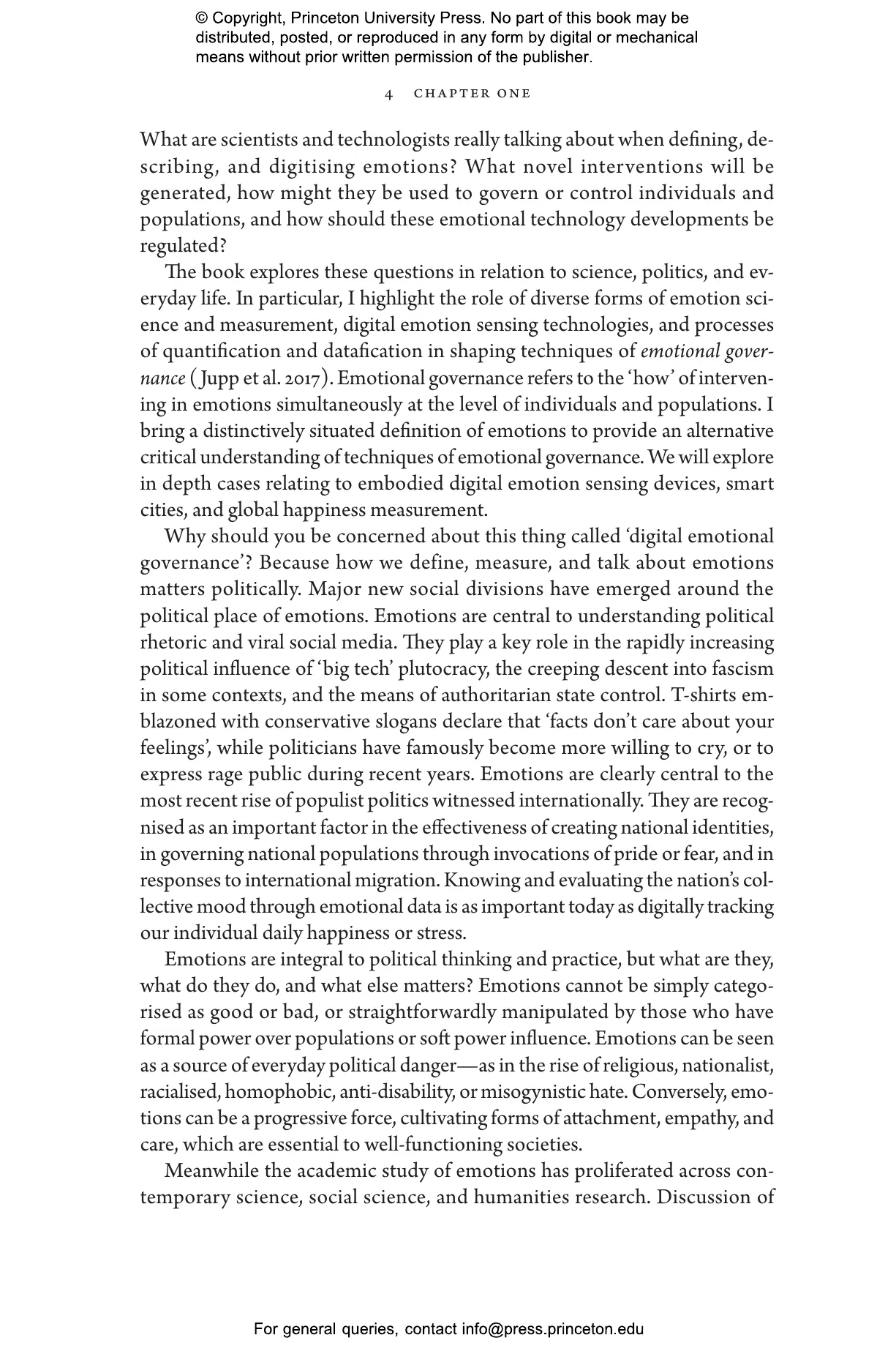 Data from facial emotion recognition, brain-computer interfaces, virtual reality, global emotion surveys and sentiment analysis offer an extraordinary new terrain for scientific exploration. Emotion sensing promises to decode and even to augment and control the very essence of human experience. But what if the science and technology of emotion measurement get emotions wrong? In Governing Global Emotions, Jessica Pykett argues that we must shift our thinking on digital emotional governance and calls for a radical reassessment of the fundamental claims of emotion science.