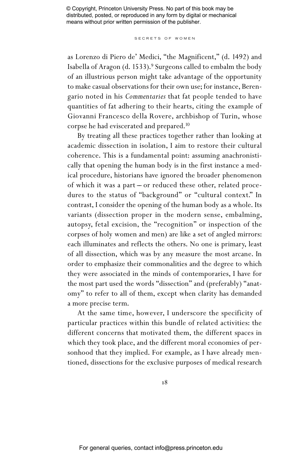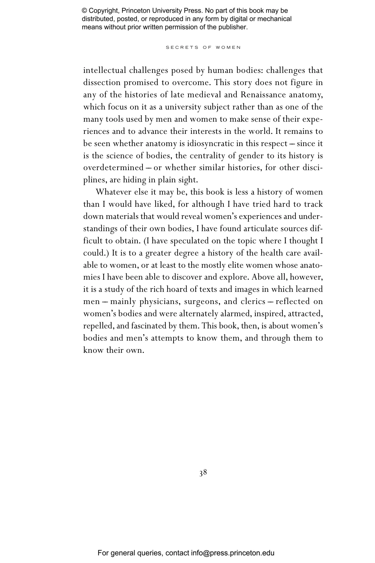 Secrets of Women explodes the myth that medieval religious prohibitions hindered the practice of human dissection in medieval and Renaissance Italy, arguing that female bodies, real and imagined, played a central role in the history of anatomy during that time. The opened corpses of holy women revealed sacred objects, while the opened corpses of wives and mothers yielded crucial information about where babies came from and about the forces that shaped their vulnerable flesh.