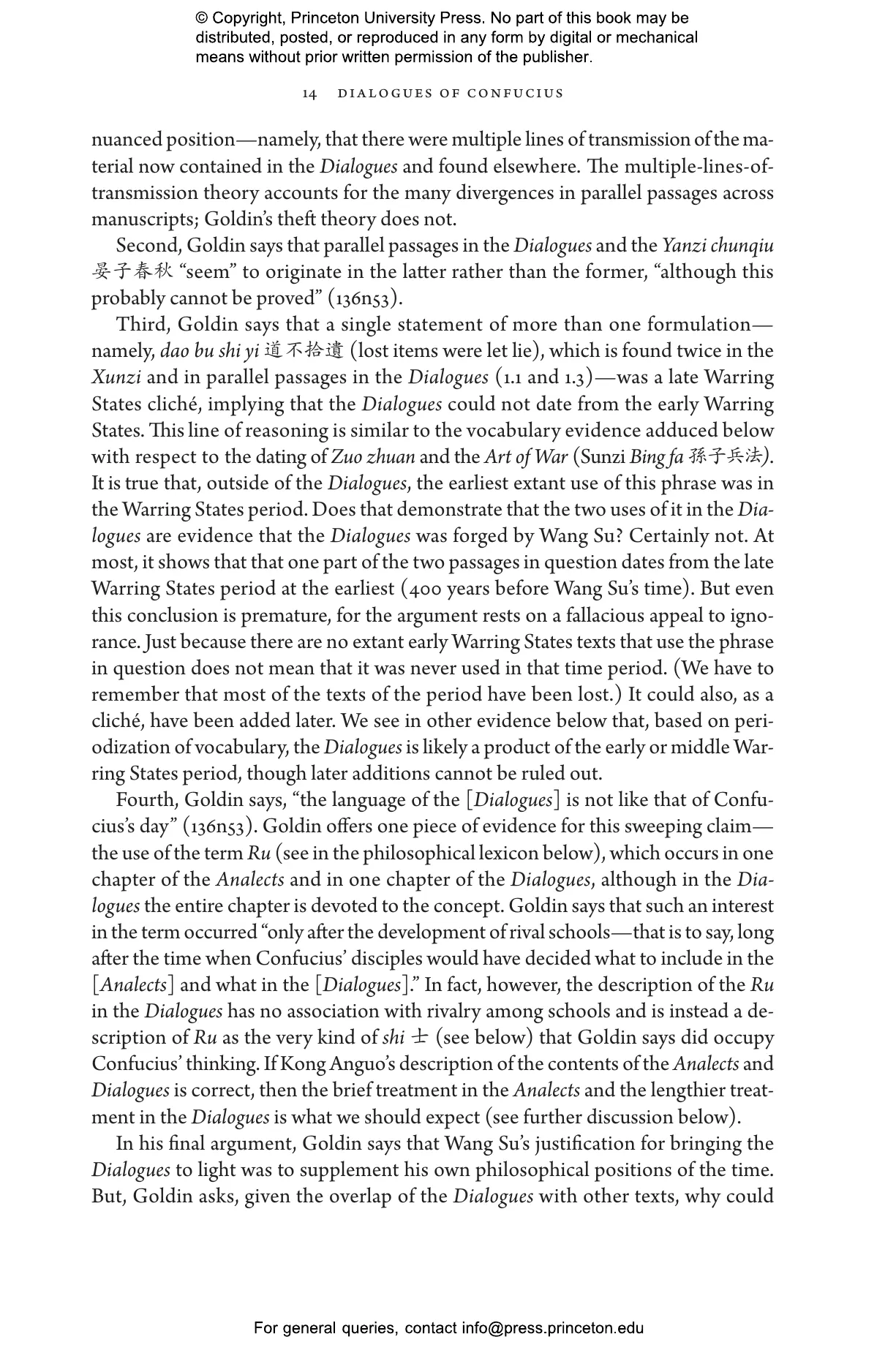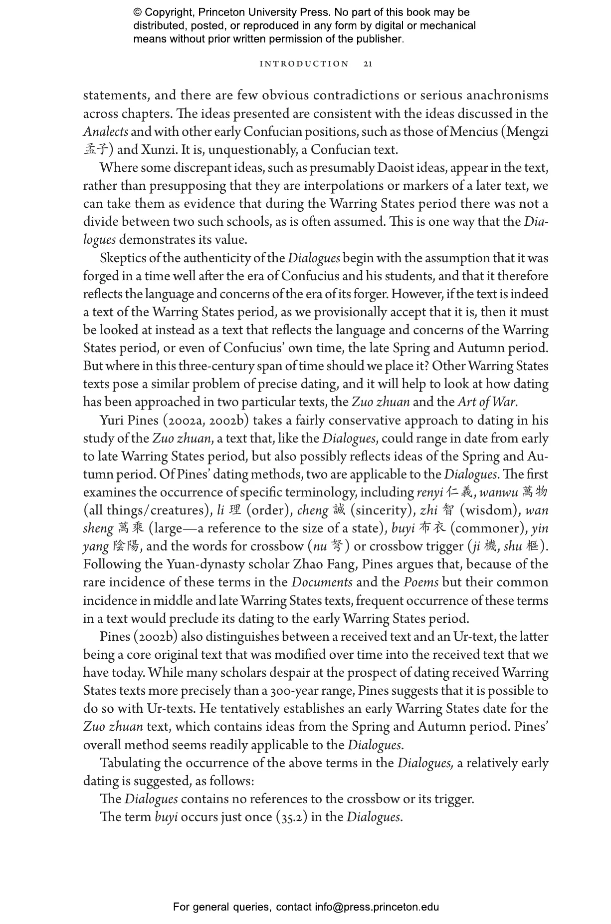 “The publication of this exegesis and definitive translation of the Dialogues of Confucius by comparative philosophers Brian Bruya and Li Wenwen occasions nothing less than a thorough rethinking of our Confucius ‘man and his philosophy’ sources. Their compilation and translation of a critical text together with a glossary of key philosophical terms is a turn in global scholarship that opens up new and exciting avenues for research in classical Confucian philosophy. First among these contributions perhaps is that, through a capacious literary survey and a close analysis of past scholarship on the Dialogues, they construct a nuanced and compelling argument for elevating this document to complement the Analects and serve the next generation as a previously understudied extension in our resources for the life and thinking of China’s greatest philosopher.”—Roger T. Ames, cotranslator of The Analects of Confucius: A Philosophical Translation