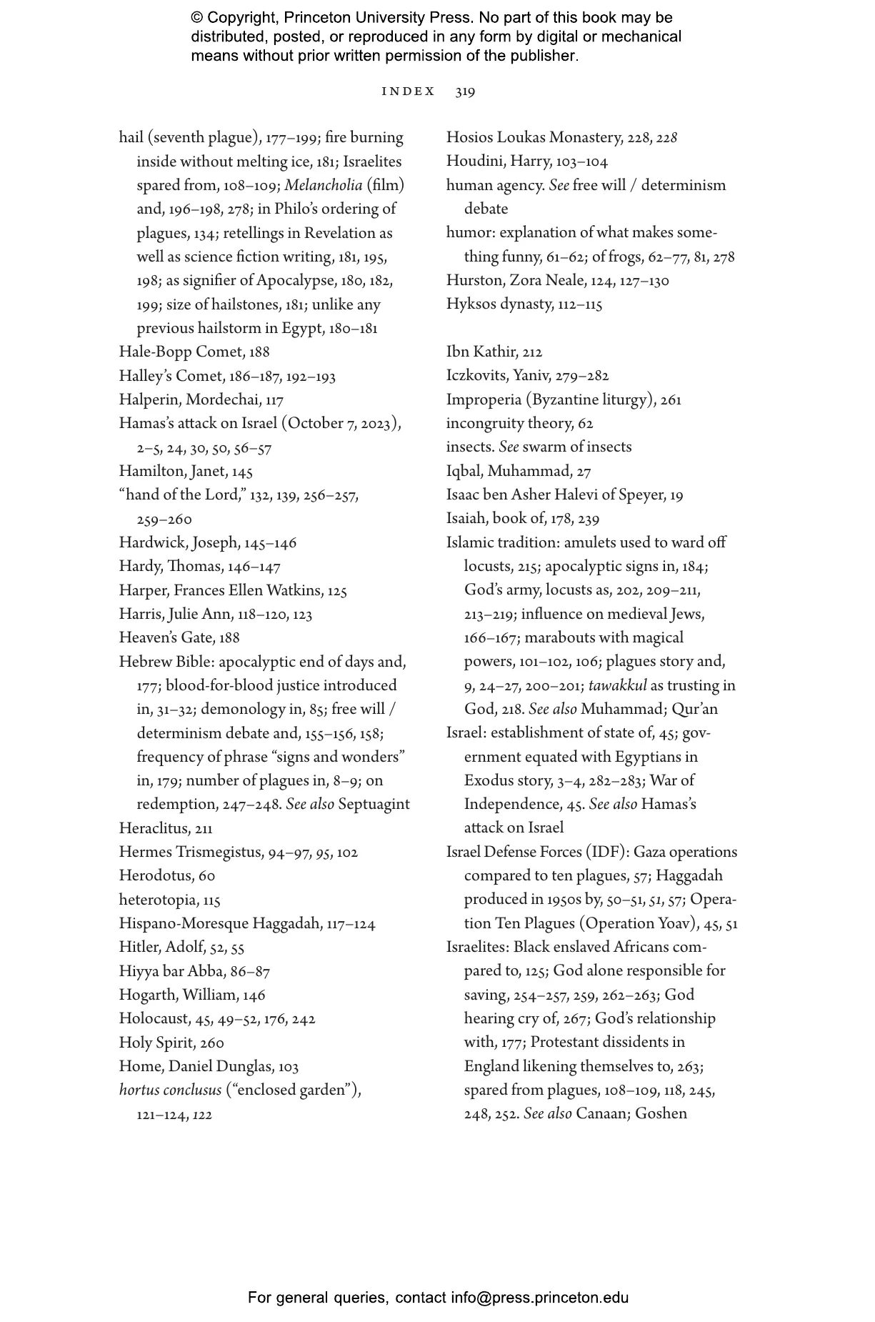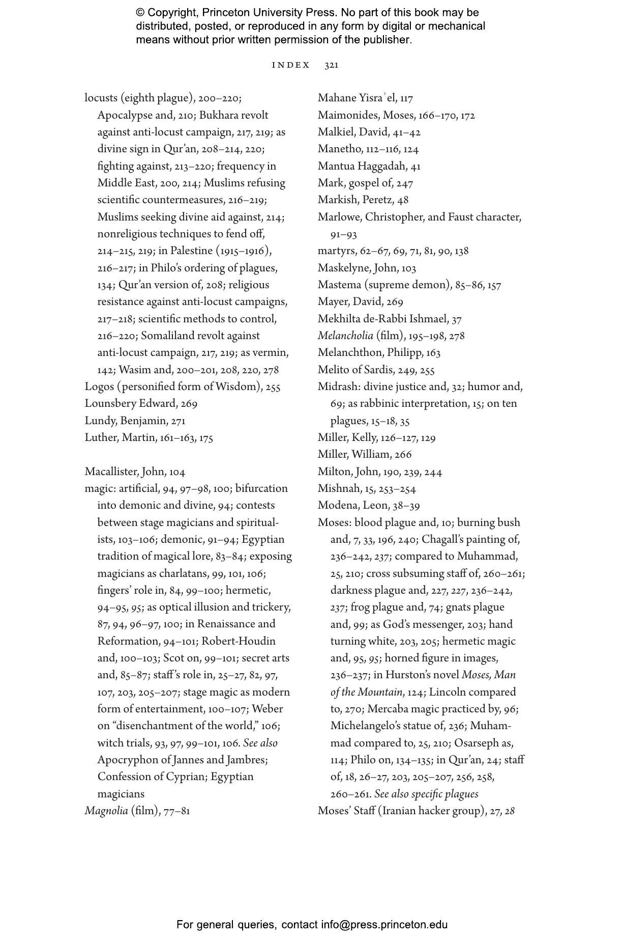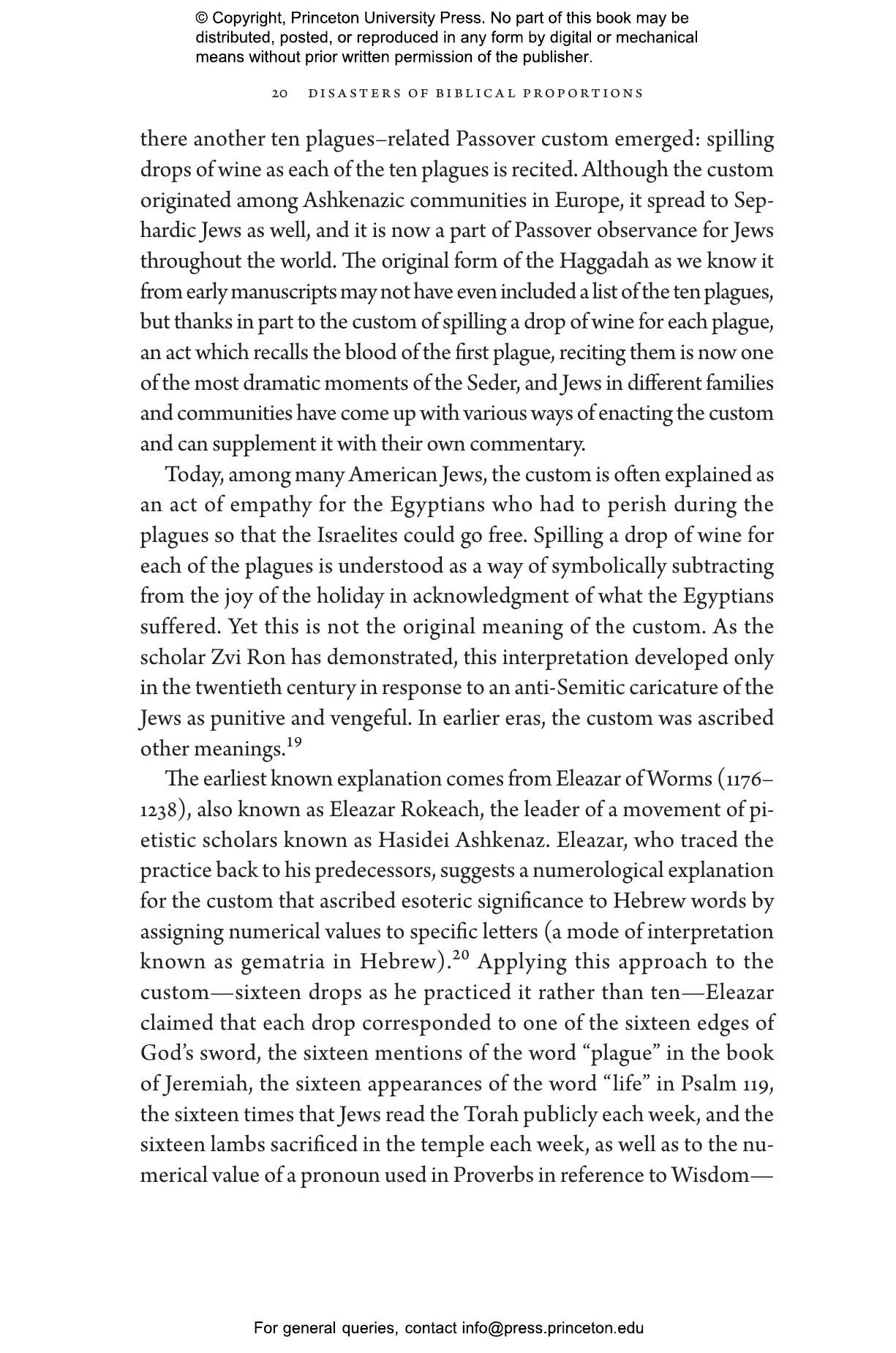 “A bracing read whose pages encompass themes as varied as animal rights and meteorology, science fiction and the art of storytelling, this imaginatively argued and generously illustrated account showcases the ways in which the ten plagues figure as critical flashpoints in understanding human nature. Thanks to its novel and abundant insights, you won’t think of the biblical narrative in quite the same way ever again.”—Jenna Weissman Joselit, author of Set in Stone: America’s Fascination with the Ten Commandments