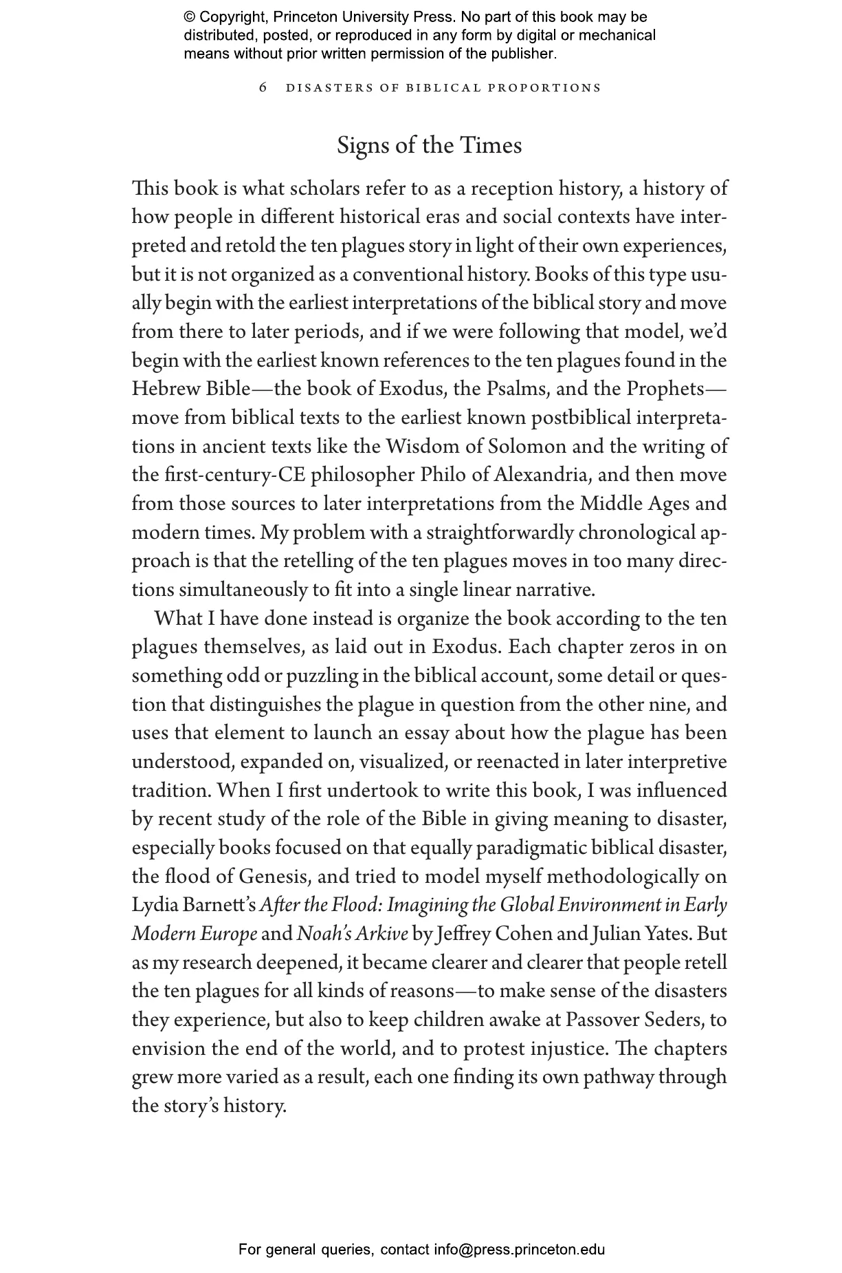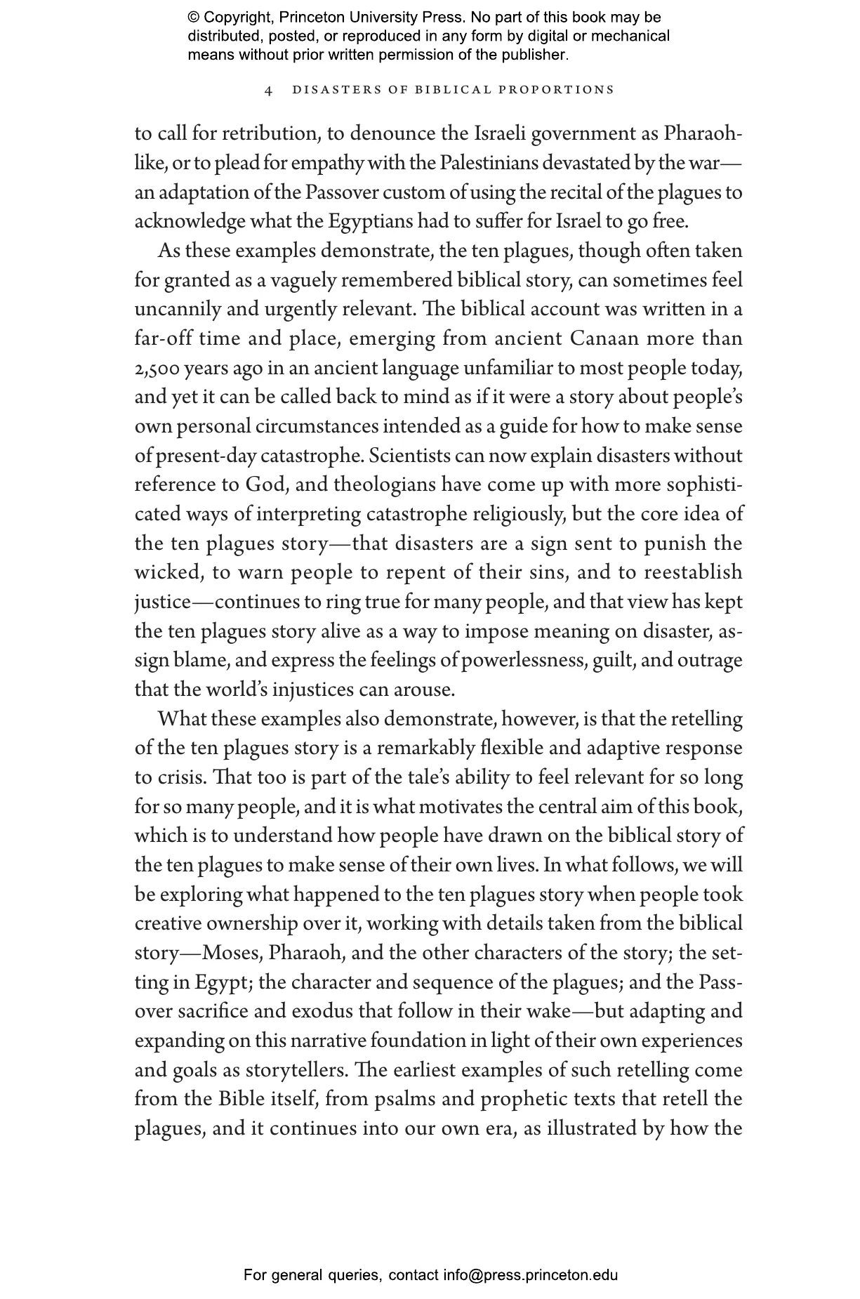 “From the histories of Jewish, Christian, and Islamic interpretation to medieval and modern philosophical debates about free will and determinism to modern film, opera, and art, Steven Weitzman offers a compelling portrait of how the biblical story of the ten plagues has been used to form and transform cultures and respond to historical injustices. Deeply learned yet beautifully written and accessible, Disasters of Biblical Proportions will be of interest to anyone perplexed by the ways in which natural disasters can suddenly disrupt and change our lives.”—Leora Batnitzky, author of How Judaism Became a Religion: An Introduction to Modern Jewish Thought